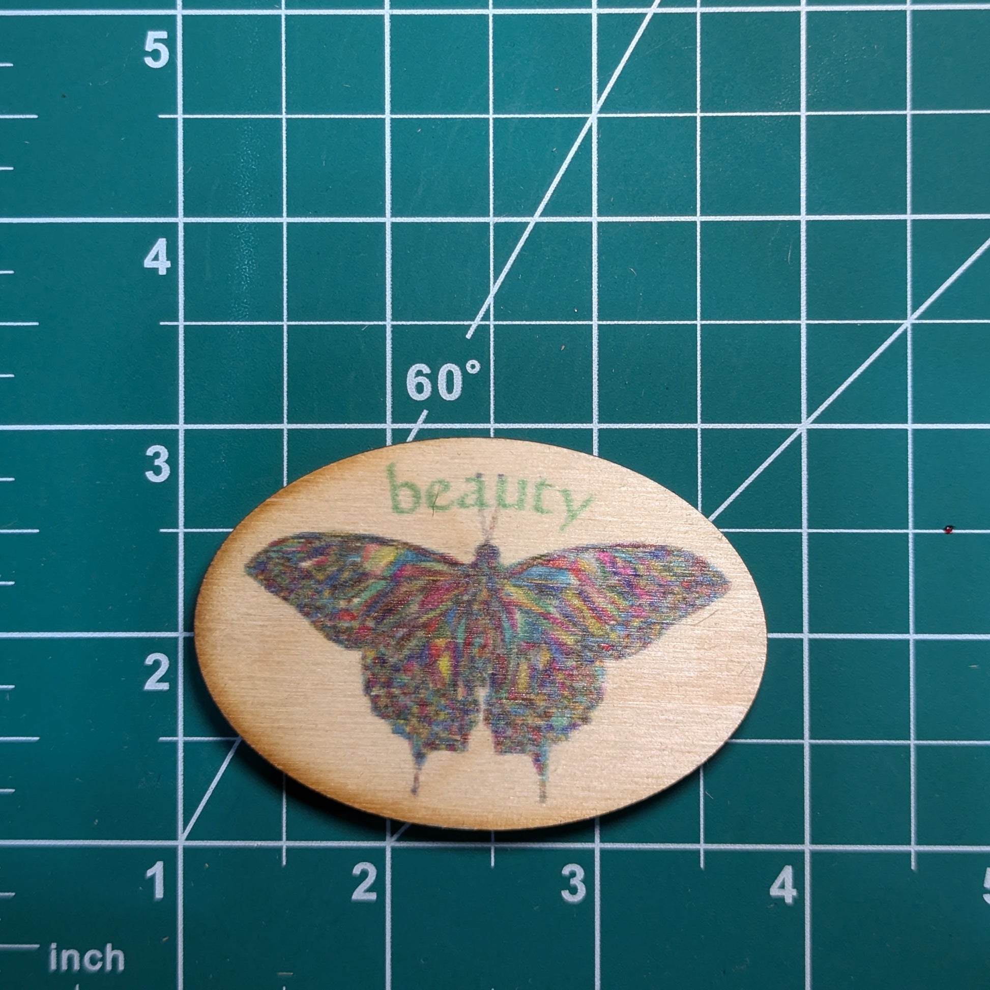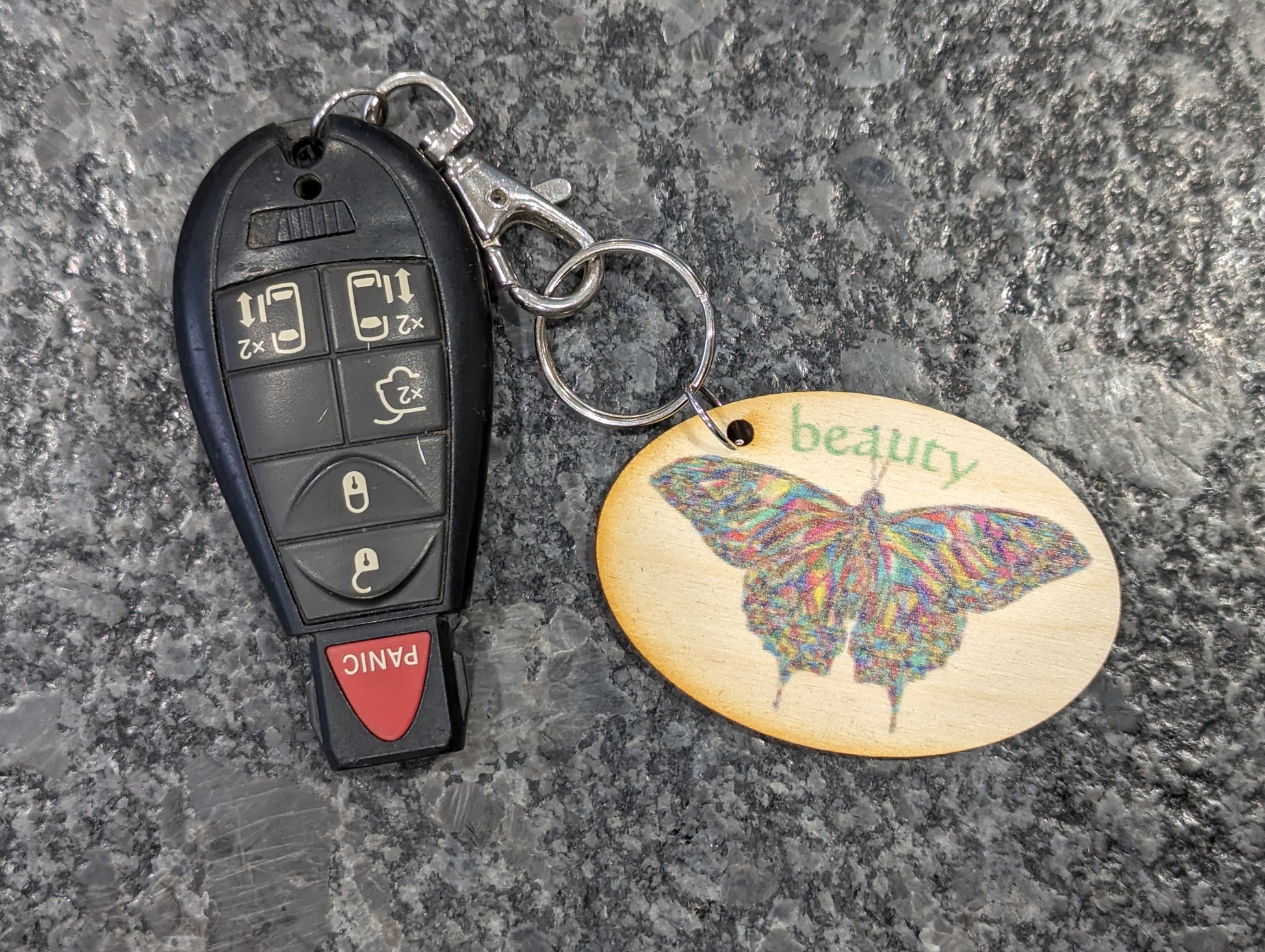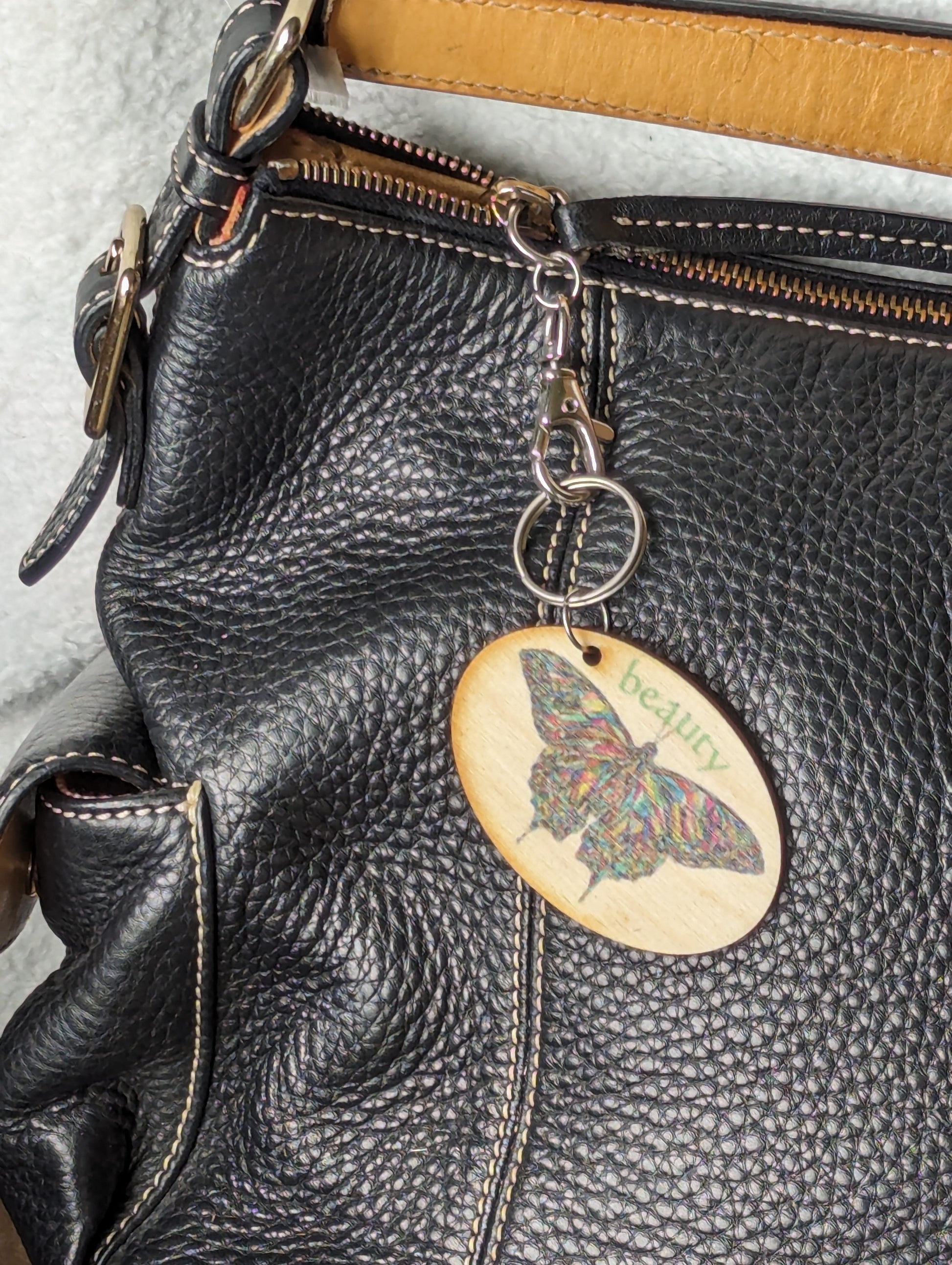 Colorful Butterfly Great Gift Keychain Oval Shape Birchwood Magnet Key Refrigerator Filing Cabinet USA Made Beauty Psychedelic Butterfly