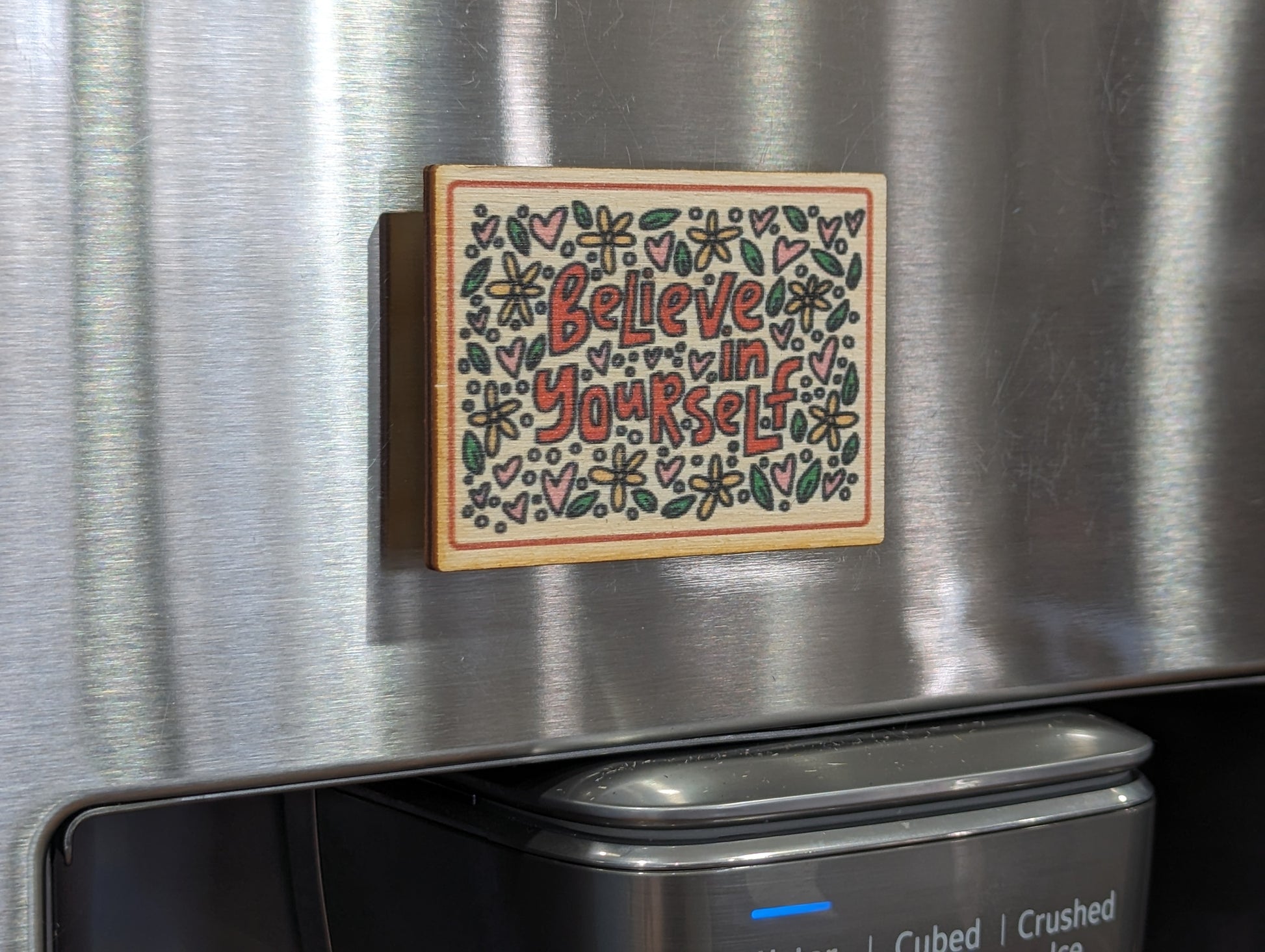 Colorful Fun Birchwood Keychain Thoughtful Unique Flowered Magnet Gift USA Made Refrigerator Key Workspace Filing Cabinet Friend Believe In Yourself