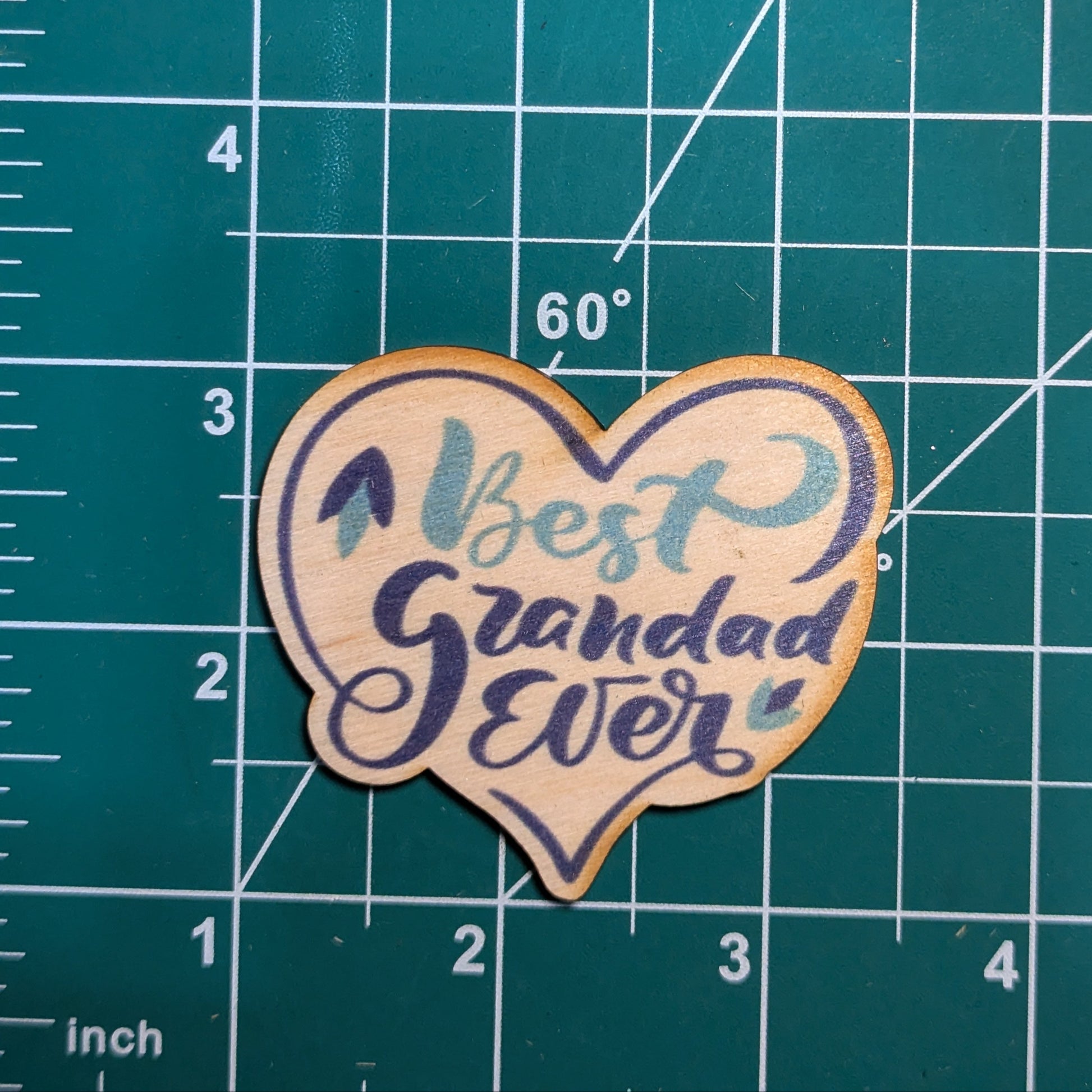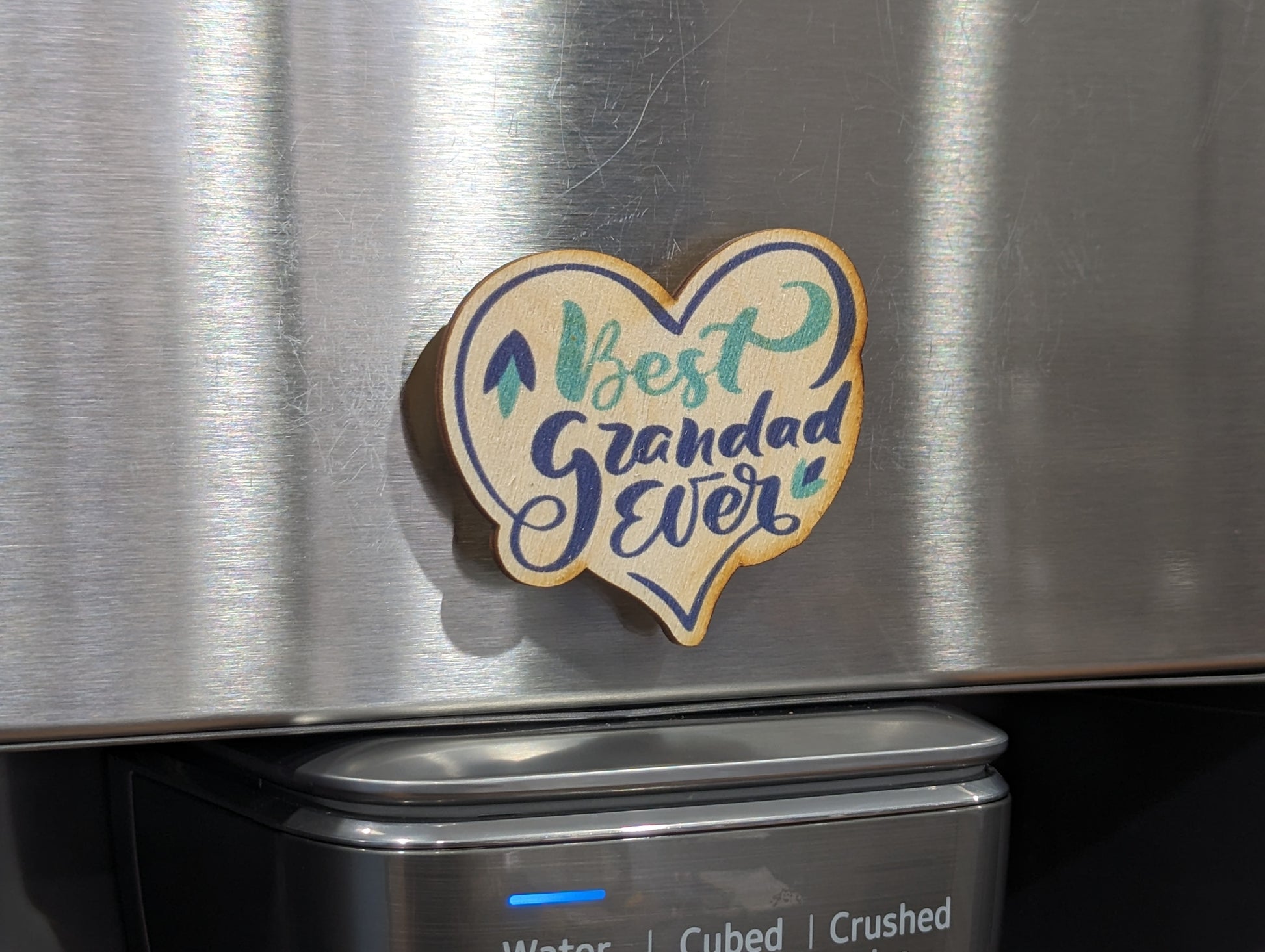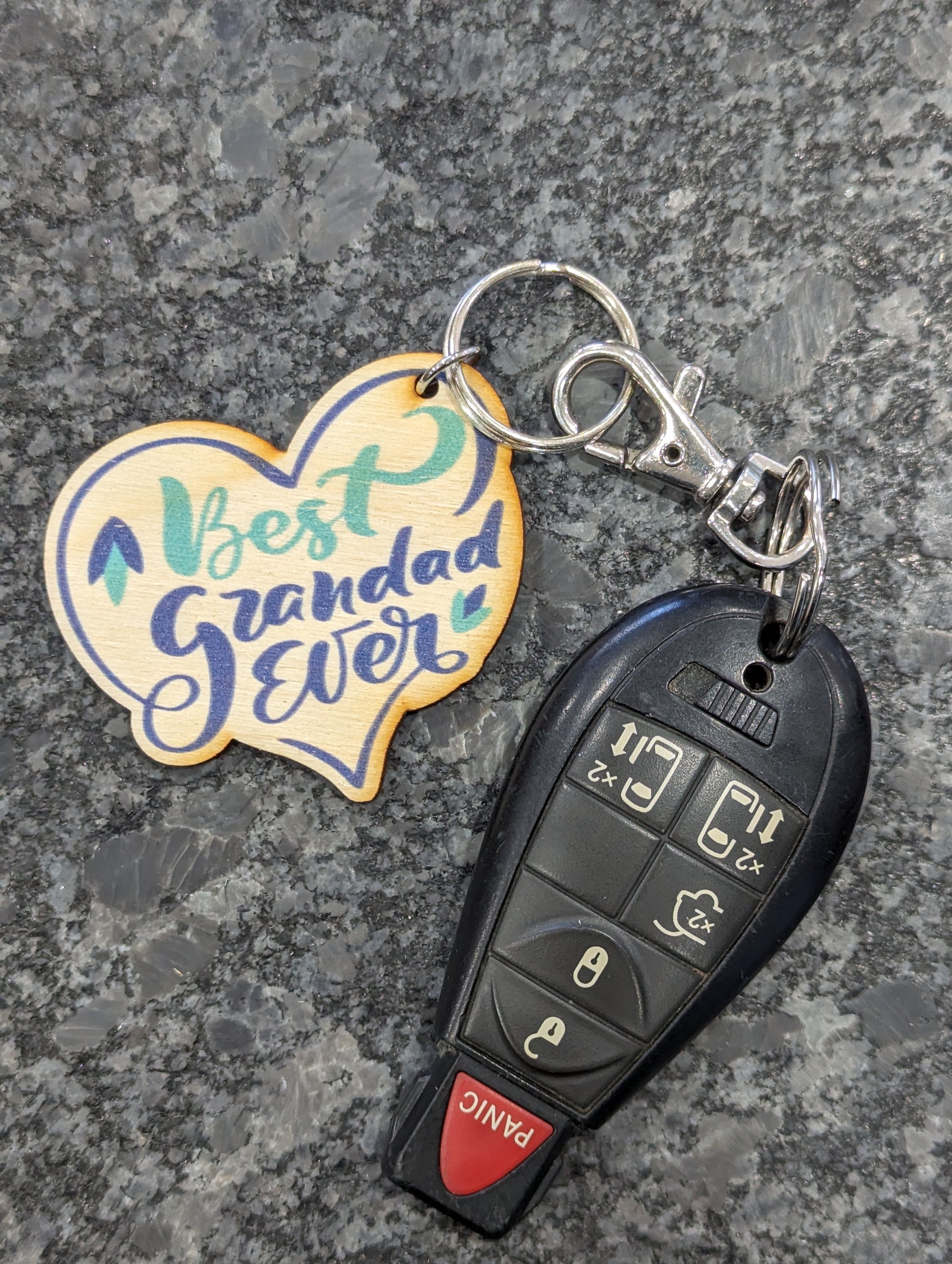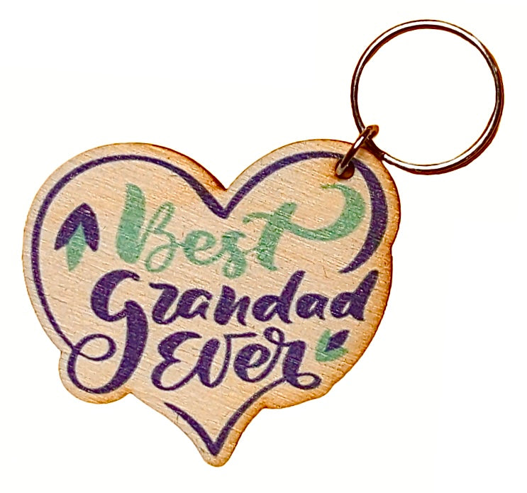 Adorable Granddad Gift Keychain Color Printed Birchwood Blue Heart Magnet Key Refrigerator Workspace USA Made Best Grandad Ever