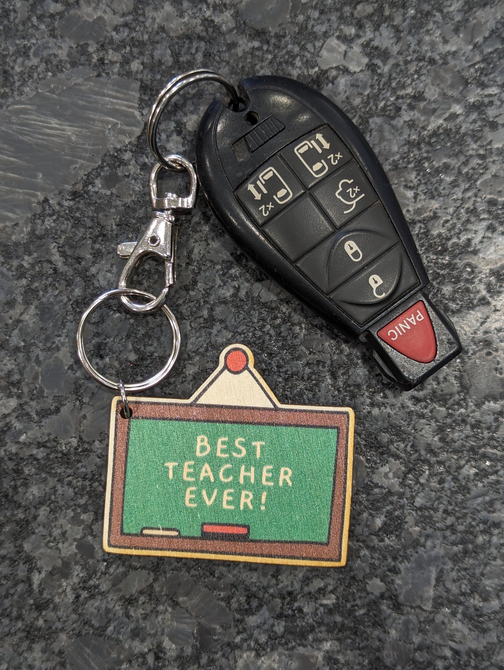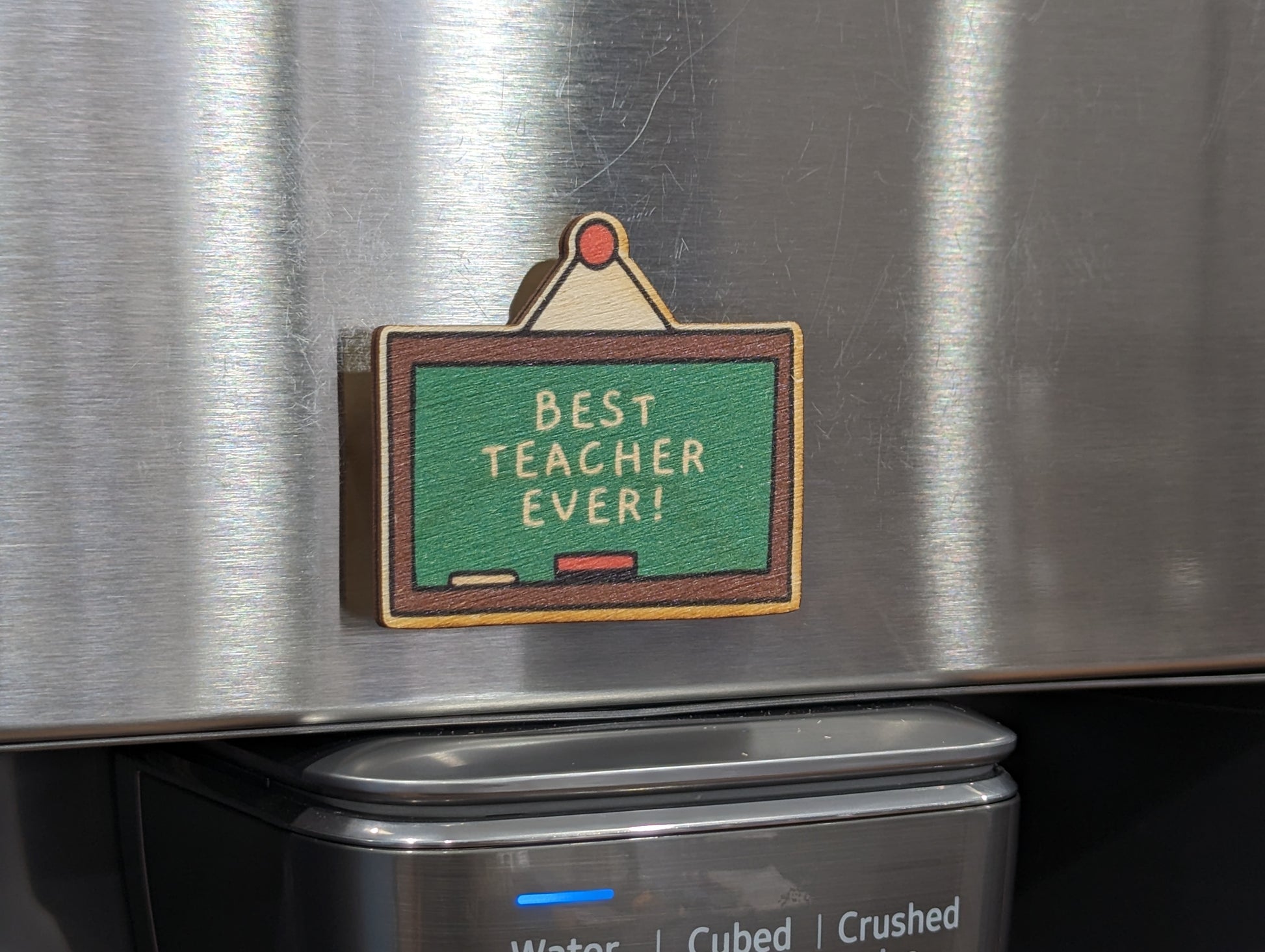 Super Cute Colorful Printed Birchwood Keychain Keys Gift Teacher Kitchen Magnet Refrigerator Workspace USA Made Best Teacher Ever Chalkboard