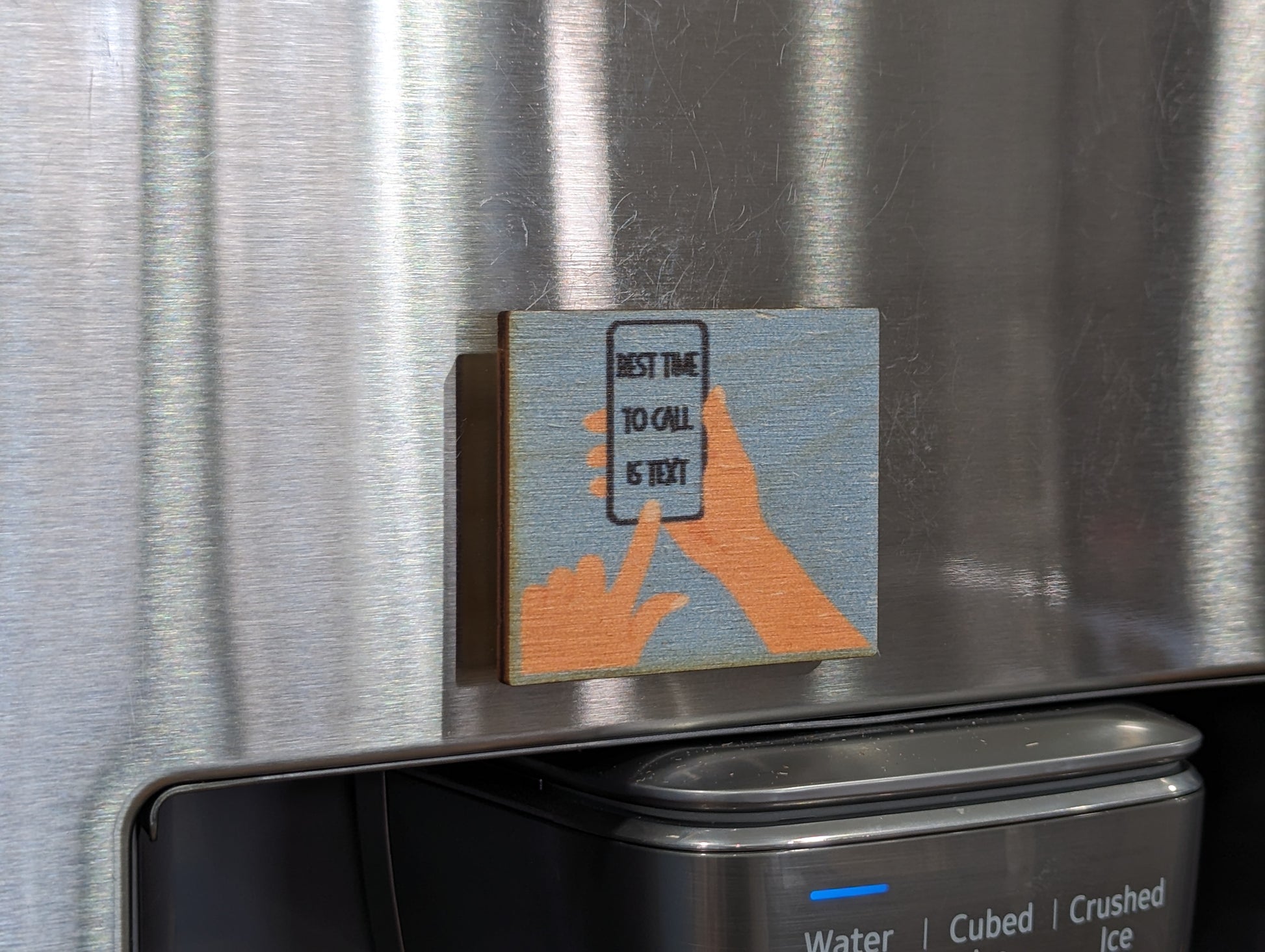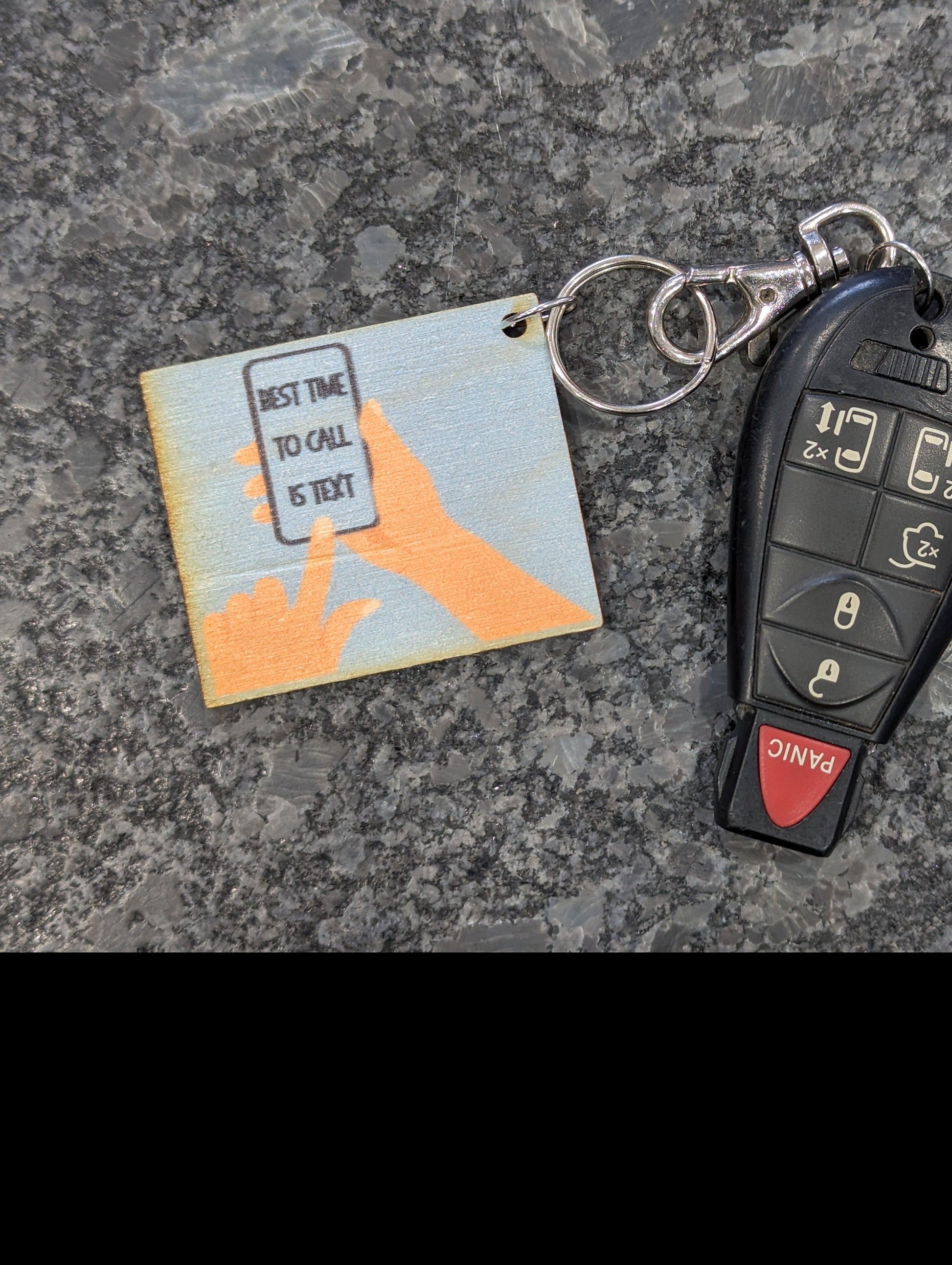 Quirky Unique Humorous Friend Gift Keychain Colorful Birchwood Printed Magnet Workspace Filing Cabinet Refrigerator Key USA Made Best Time To Call Is Text