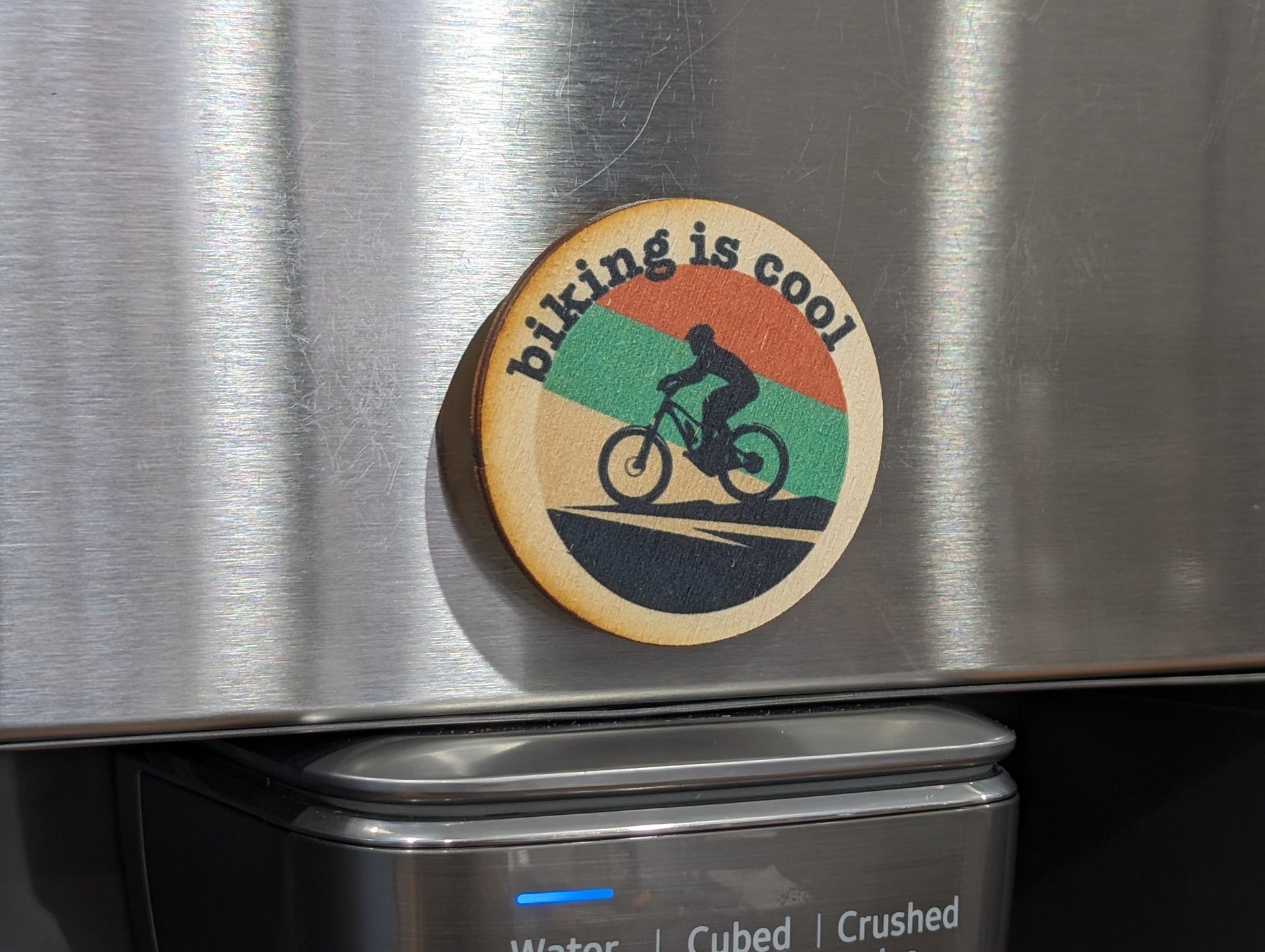 Awesome Color Printed Birchwood Keychain Keys Gift Kitchen Magnet Refrigerator Friend Workspace Fun Hiking Outdoors USA Biking Is Cool
