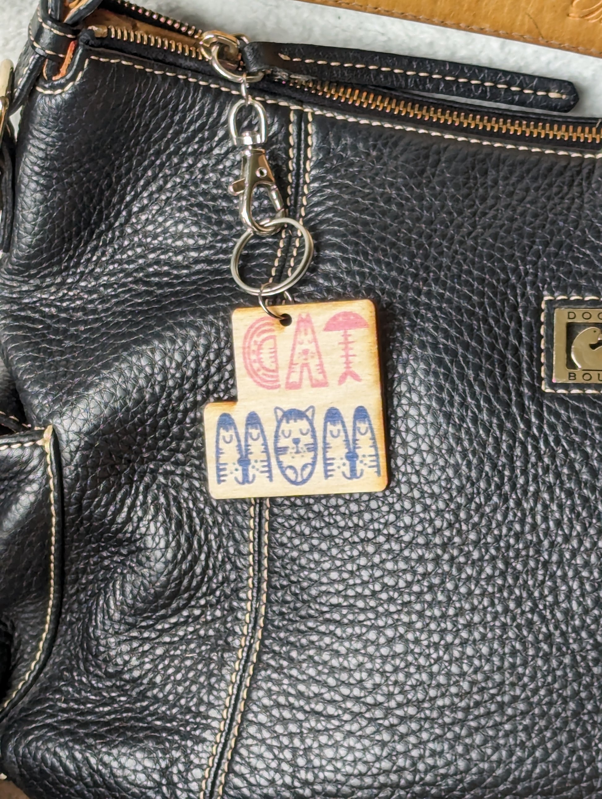 Colorful Hilarious Gift Keychain Pet Fun Printed Birchwood Magnet Fish Bones Key Refrigerator Filing Cabinet USA Made Cat Mom