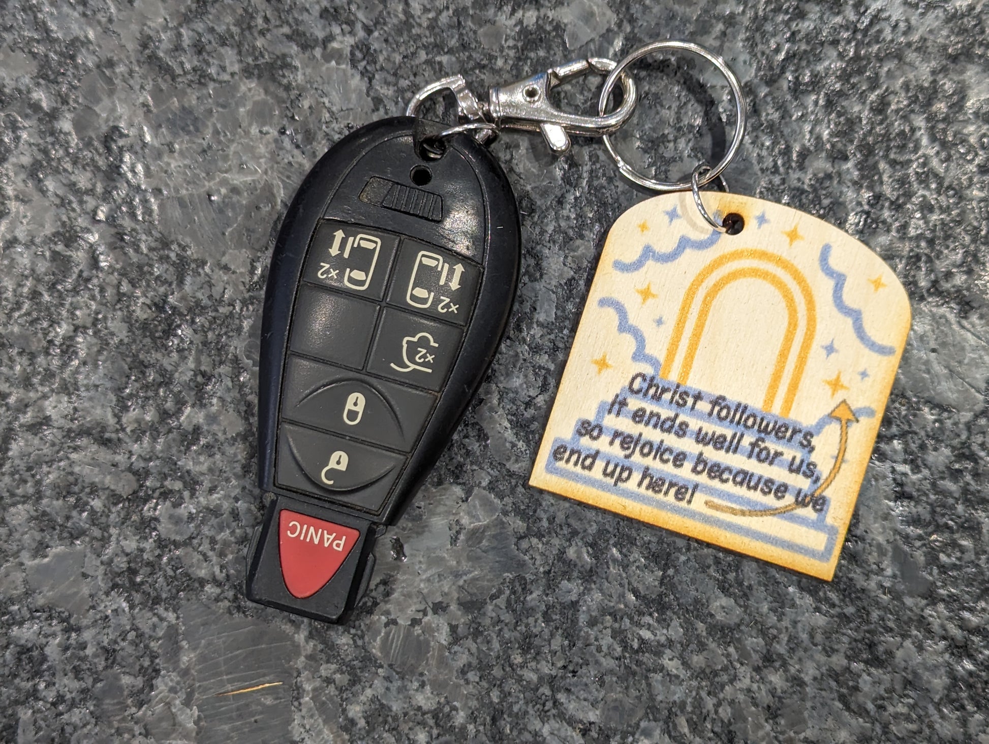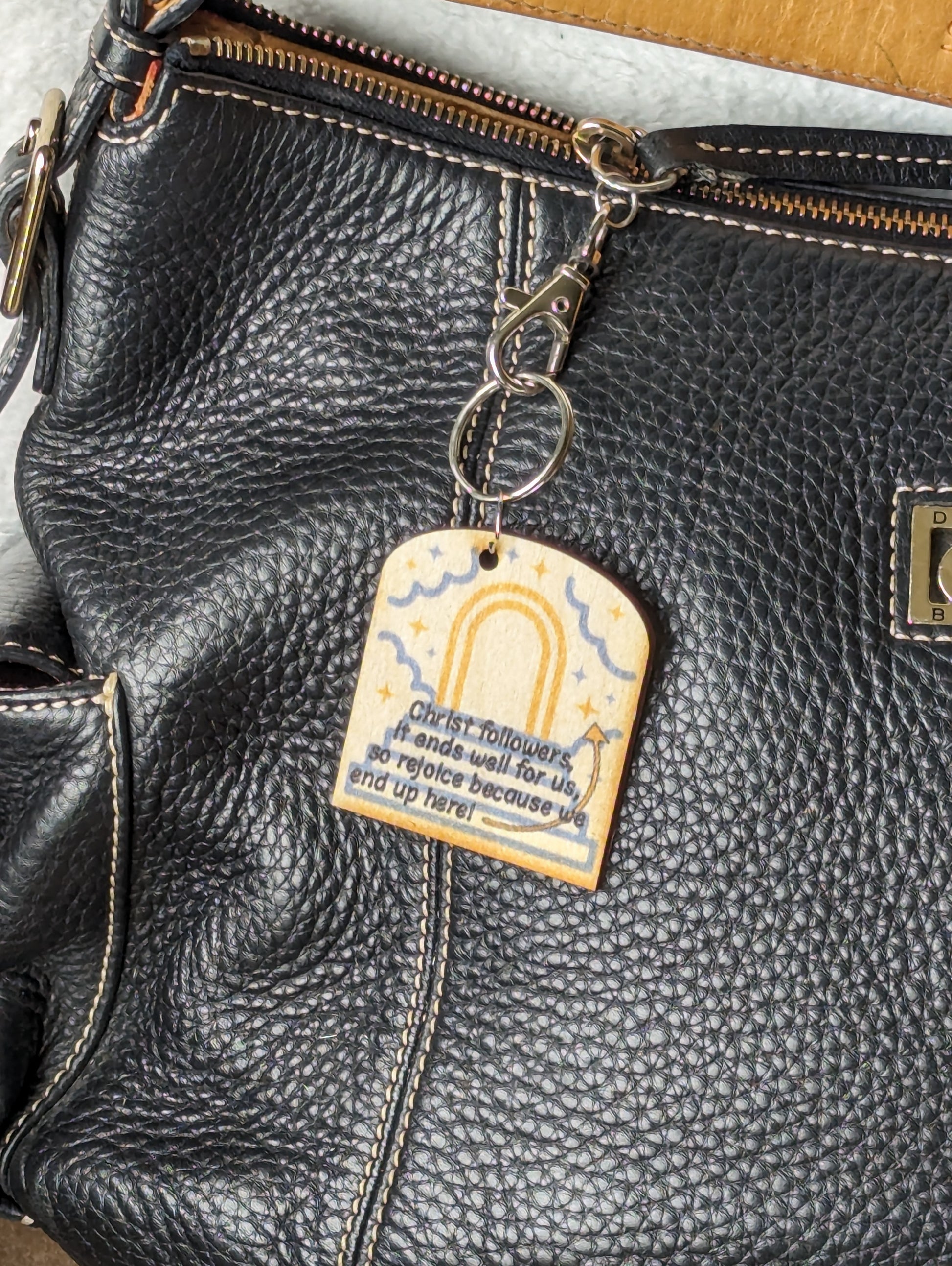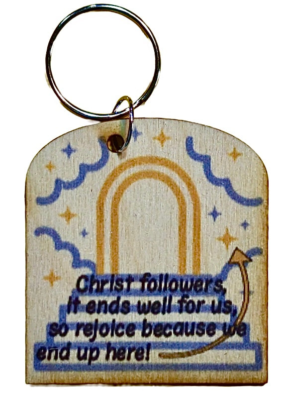 Inspirational Reminder Keychain Printed Birchwood Colorful Gift Jesus Magnet Heaven Church Filing Cabinet Refrigerator Key USA Made Christ Followers Rejoice