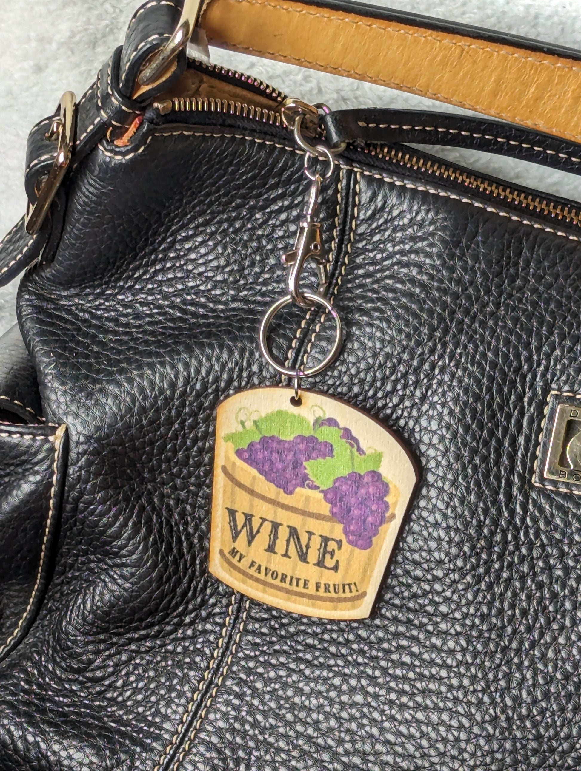 Charming Colorful Gift Kitchen Magnet Printed Birchwood Cute Wine Barrel Keychain Purple Grapes Mom Refrigerator Keys Adorable Friend Gift
