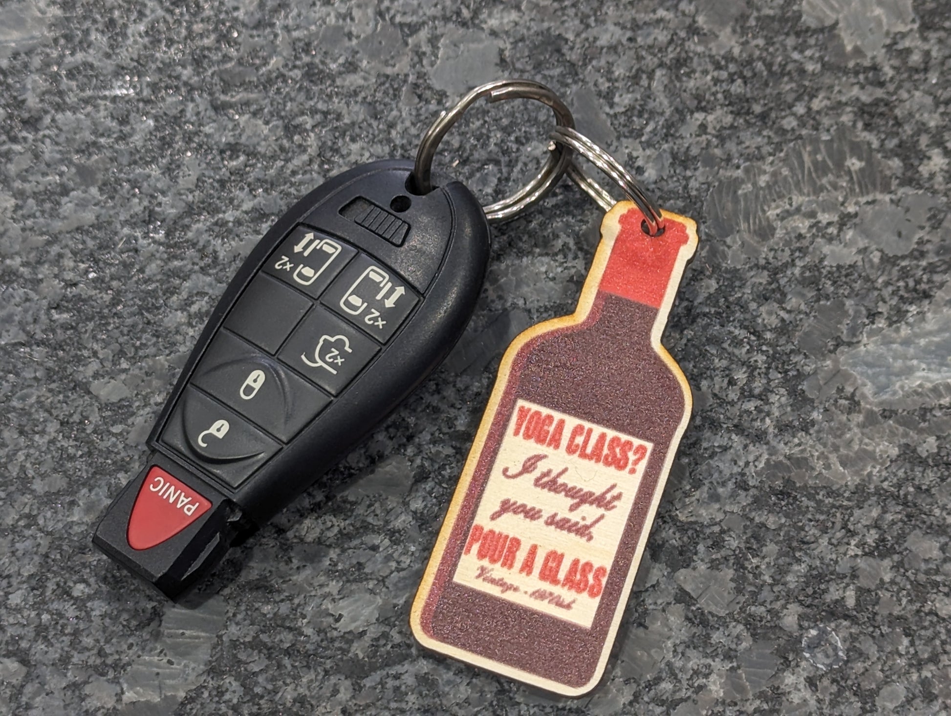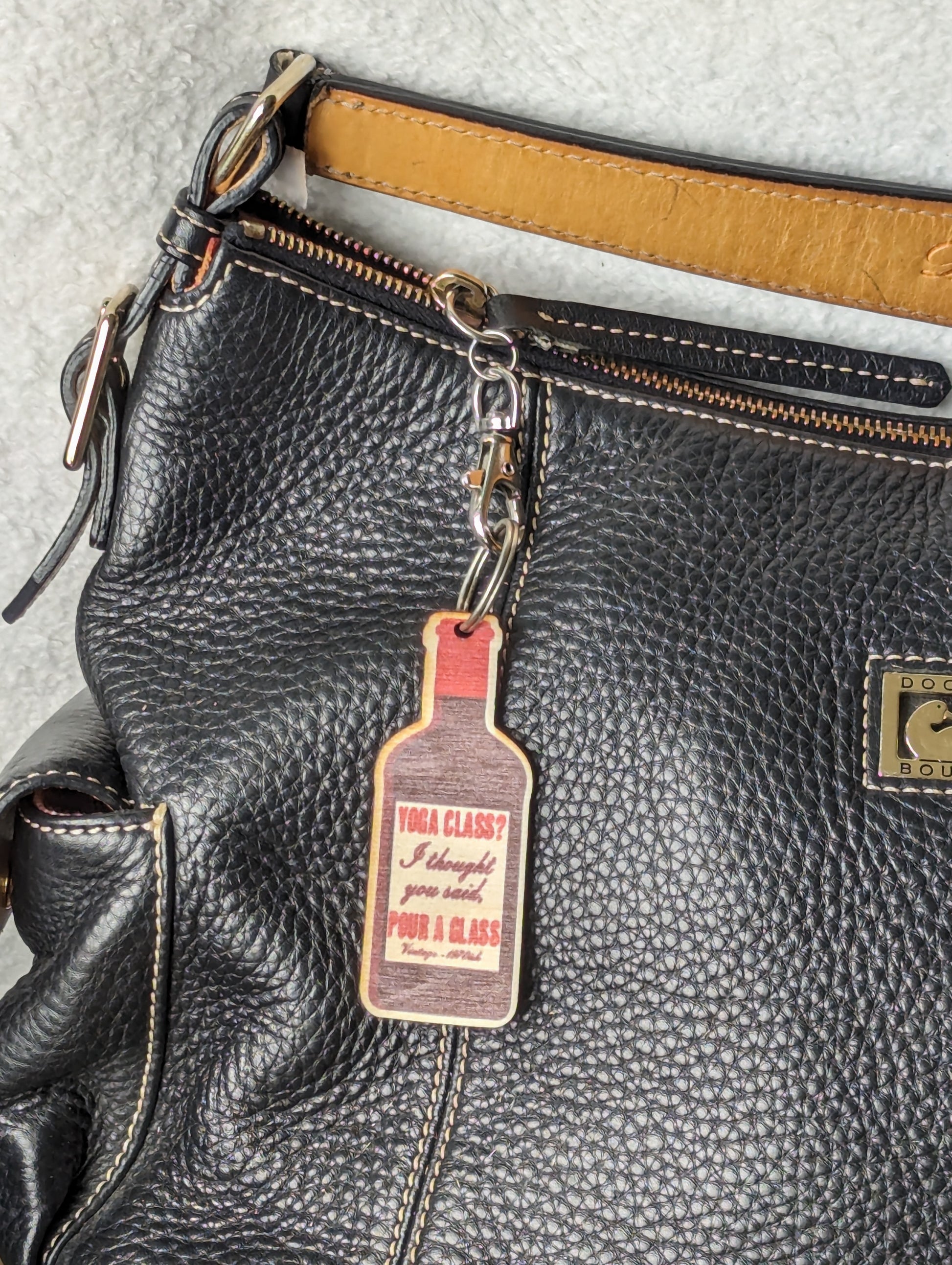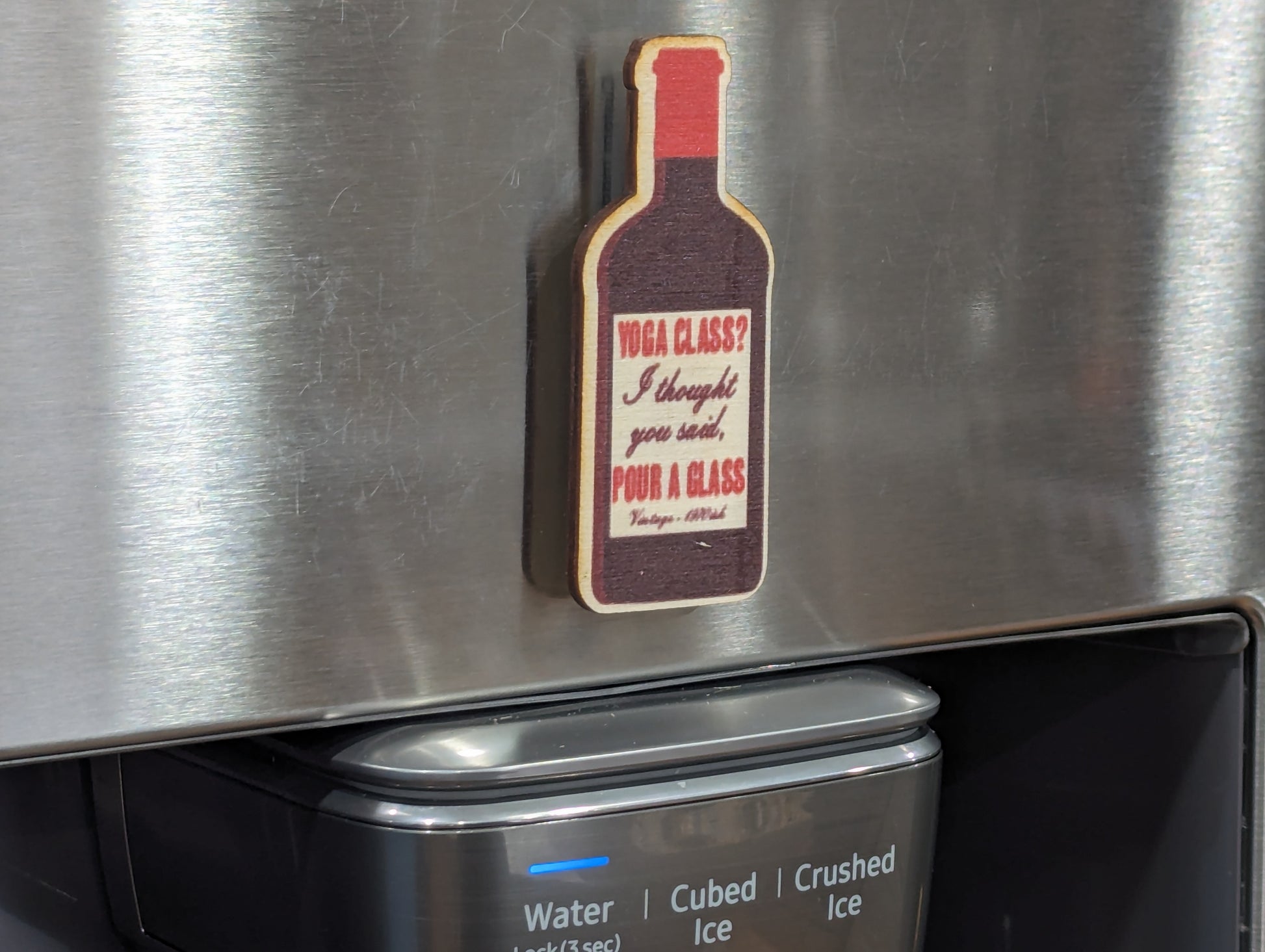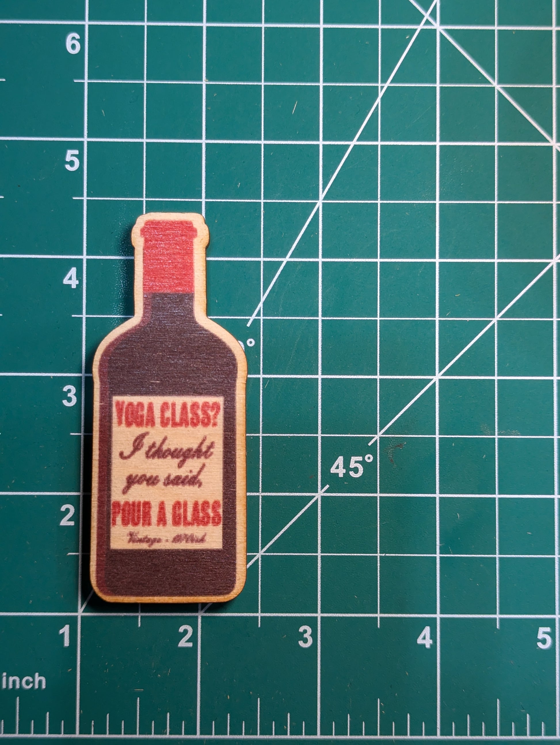 Hilarious Wine Merlot Shape Keychain Friend Gift Printed Birchwood Magnet Refrigerator Filing Cabinet USA Made Yoga Class I Thought You Said Pour A Glass