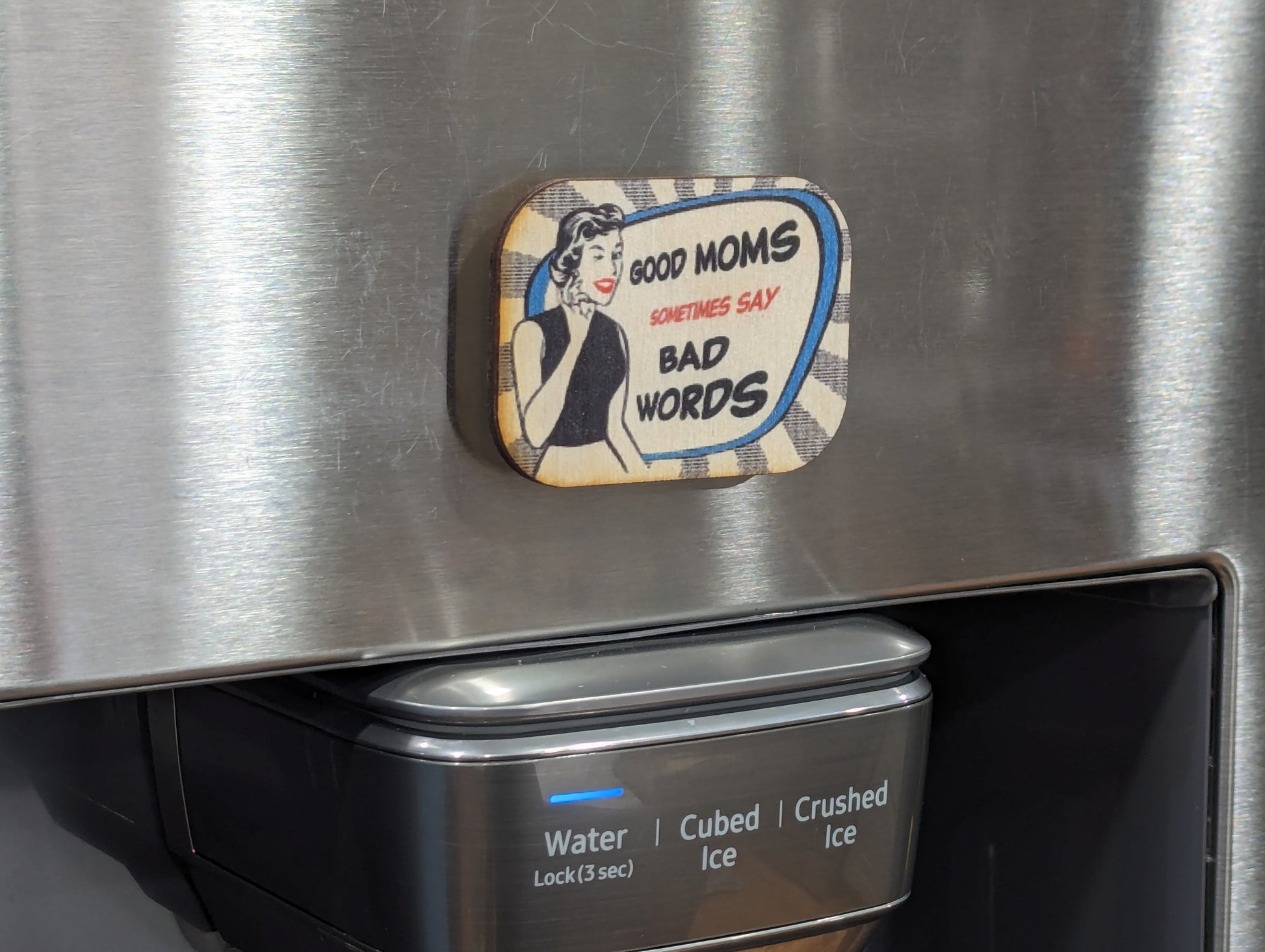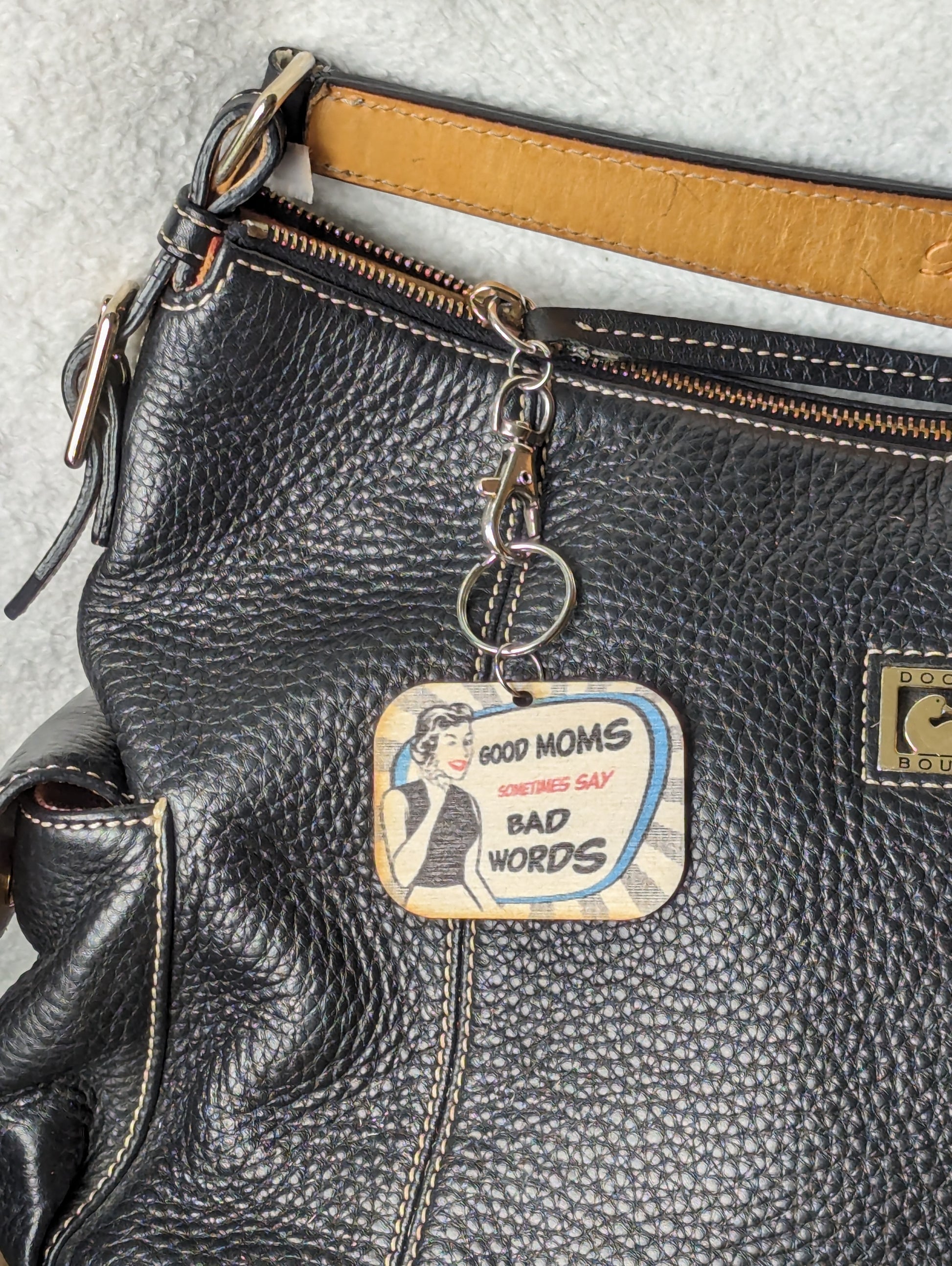50s Retro Style Blue Rectangle Keychain Keys Humorous Gift Mom Mother's Day Kitchen Refrigerator Magnet Color Printed Birchwood Good Bad