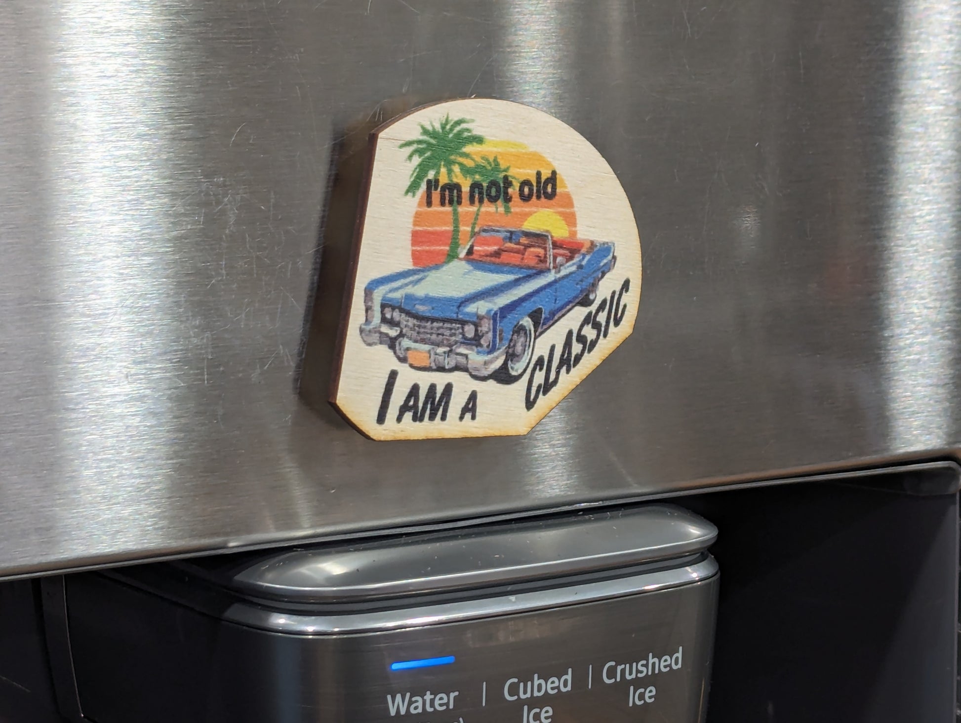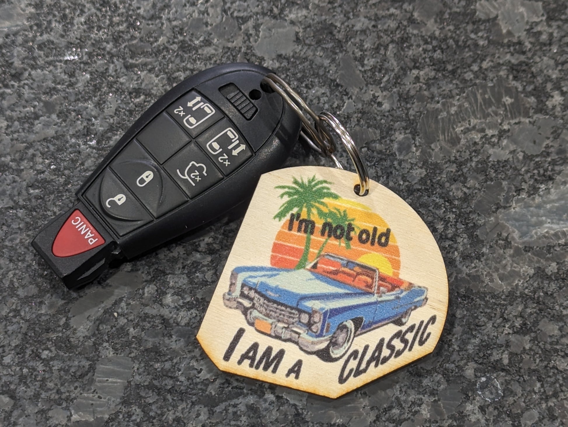 Beautiful Color Printed Birchwood Keychain Classic Car Tool Chest Refrigerator Magnet Cute Gift Grandpa Unique Shape Fun I'm Not Old Classic