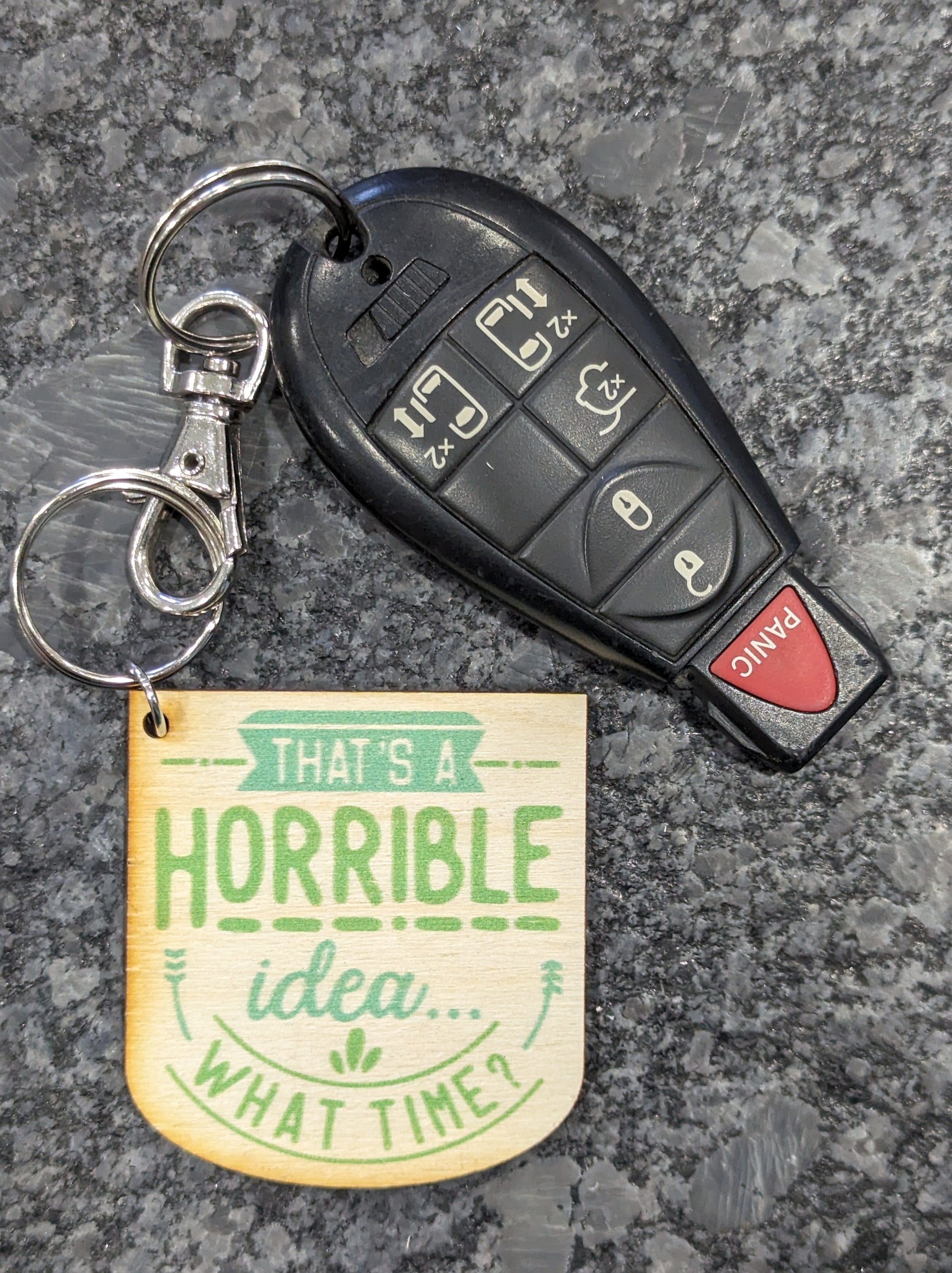 Hilarious Super Cute Colorful Birchwood Keychain Keys Gift Kitchen Magnet Refrigerator Office Filing Cabinet Admin USA Made Horrible Idea When