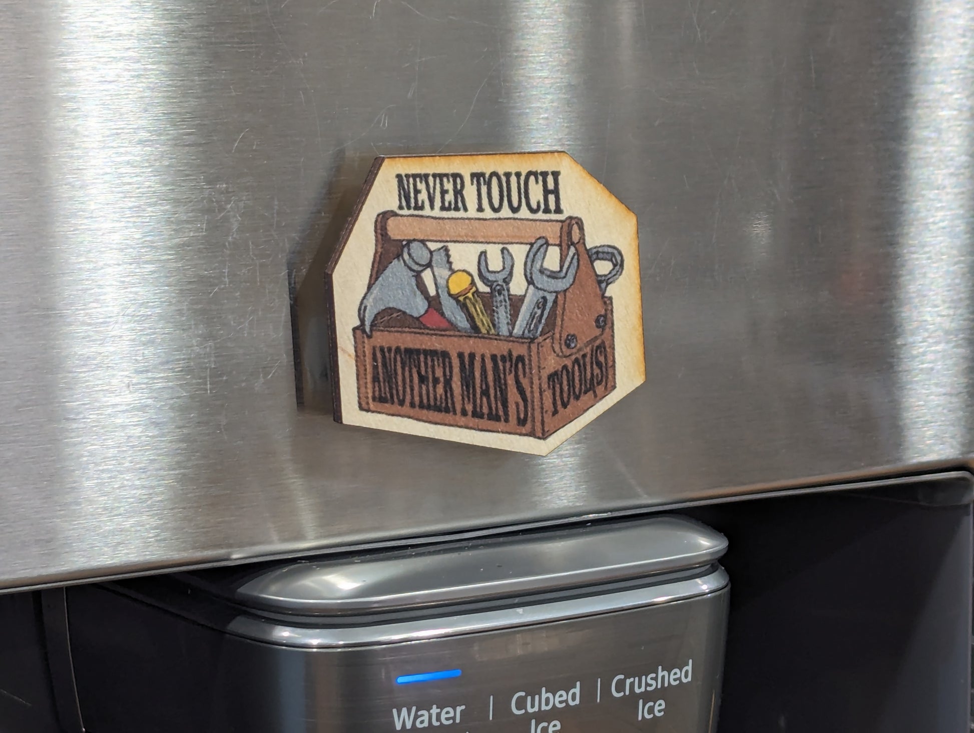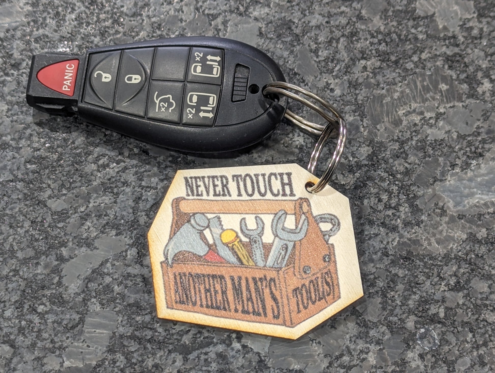 Adorable Colorful Birchwood Dad Keychain Keys Gift Kitchen Magnet Refrigerator Office Filing Cabinet Thank You USA Made Father's Day Never Touch Another Man's Tools