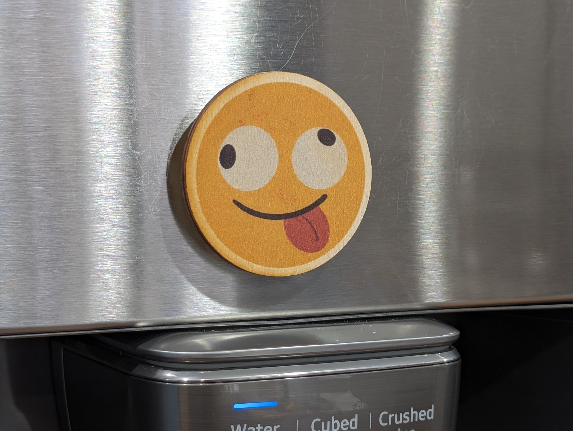 Super Cute Yellow Backpack Gift Keychain Colorful Birchwood Fun Friend Magnet Key Refrigerator Workspace USA Made Crazy Eyes Smiley Face Emoji
