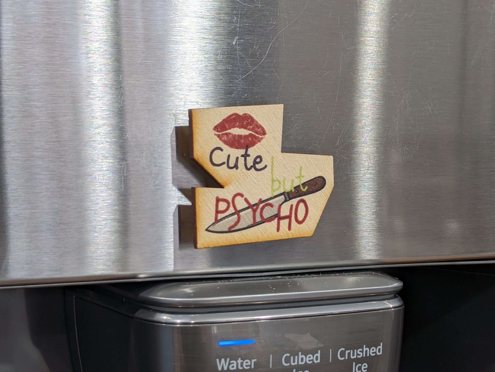 Humorous Sarcastic Color Printed Birchwood Keychain Unique Shape Fun Backpack Gift Friend Kitchen Magnet Refrigerator USA Made Cute But Psycho