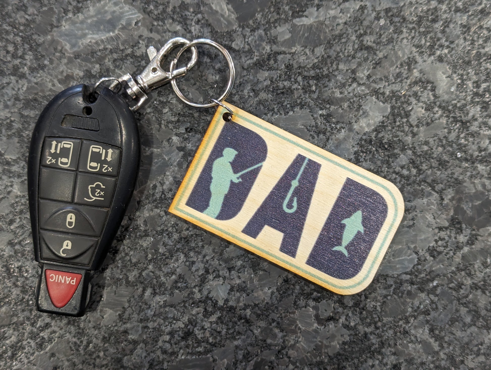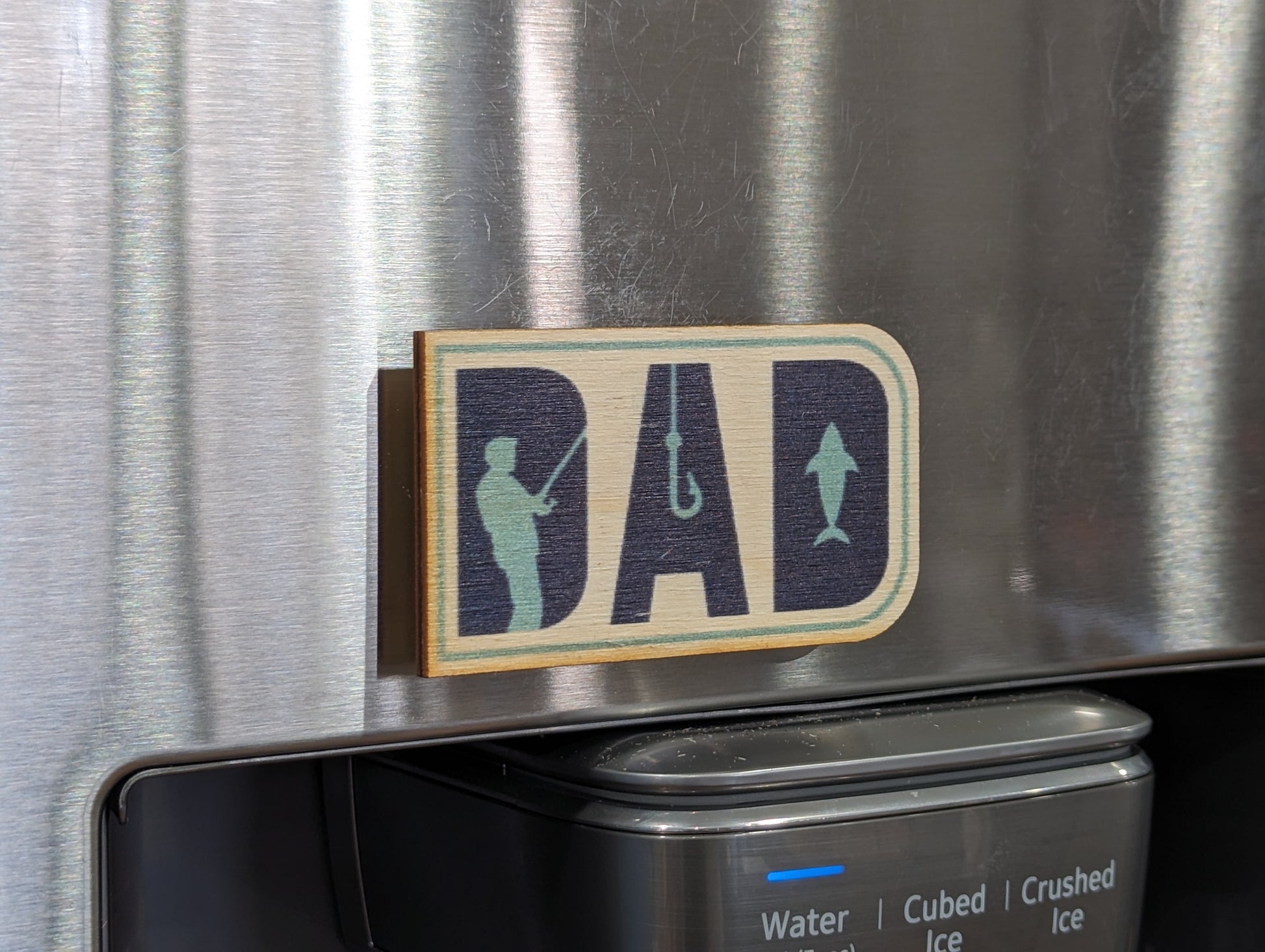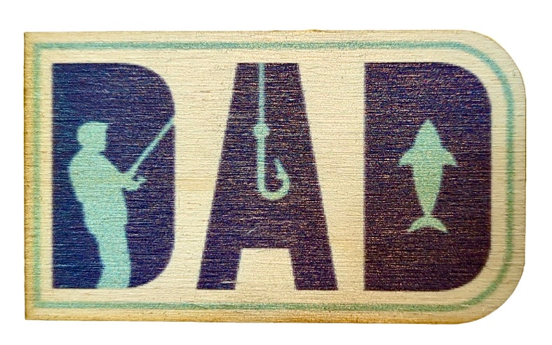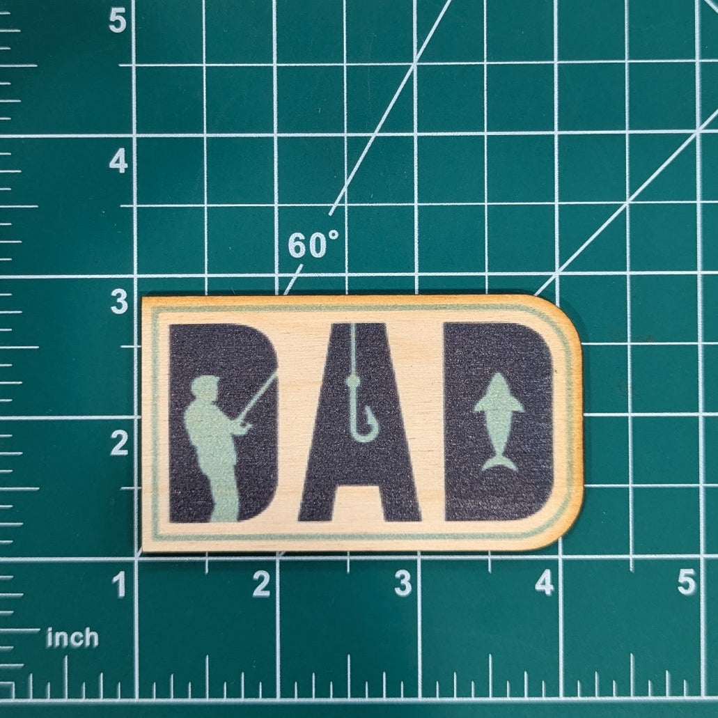 Colorful Dad Fishing Gift Keychain Printed Birchwood Humorous Magnet Office Filing Cabinet Refrigerator USA Made Dad Fishing