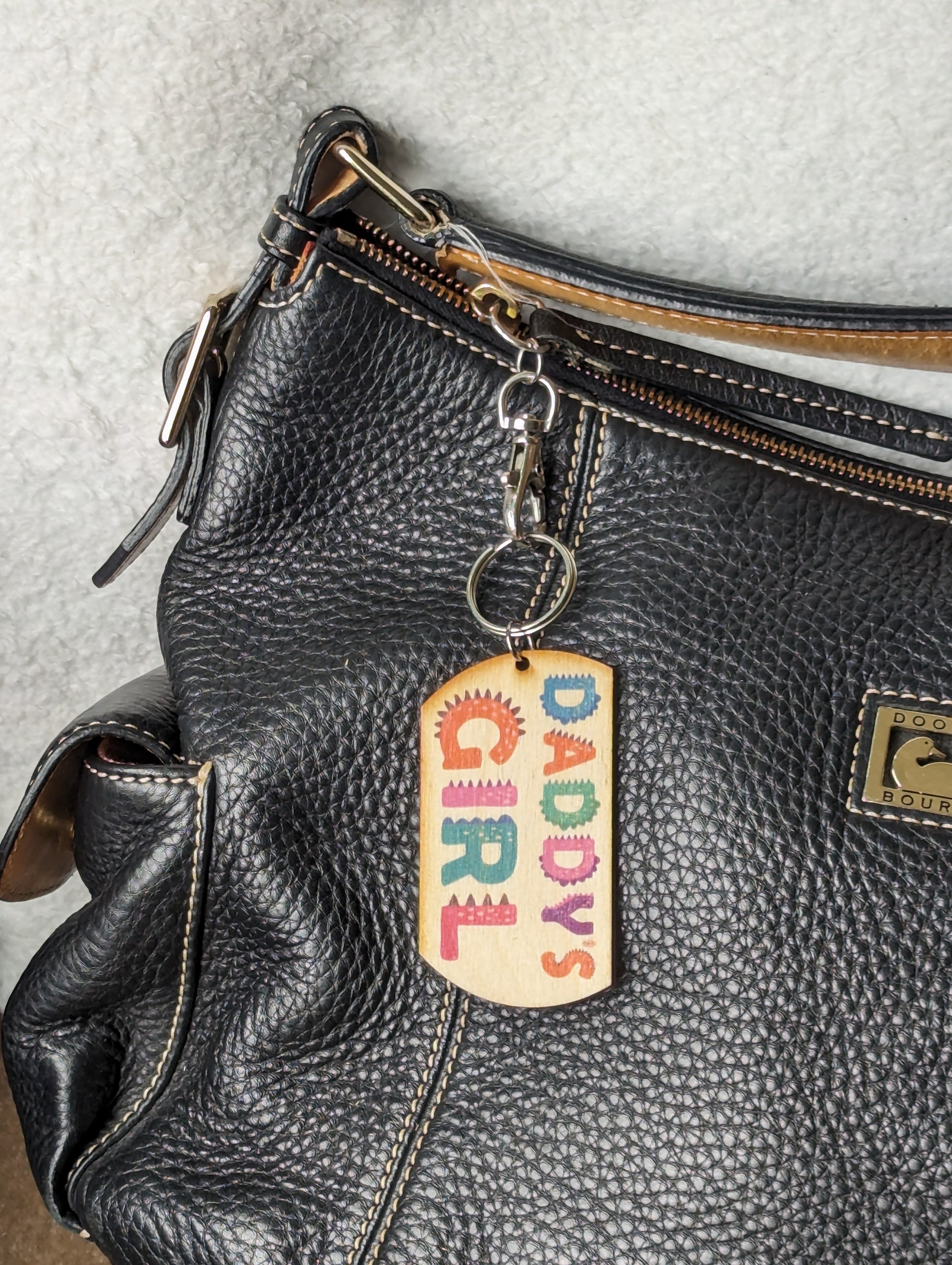 Adorable Colorful Quirky Printed Birchwood Keychain Keys Gift Kitchen Magnet Refrigerator Friend Backpack Fun USA Made Daddy's Girl Teeth Font