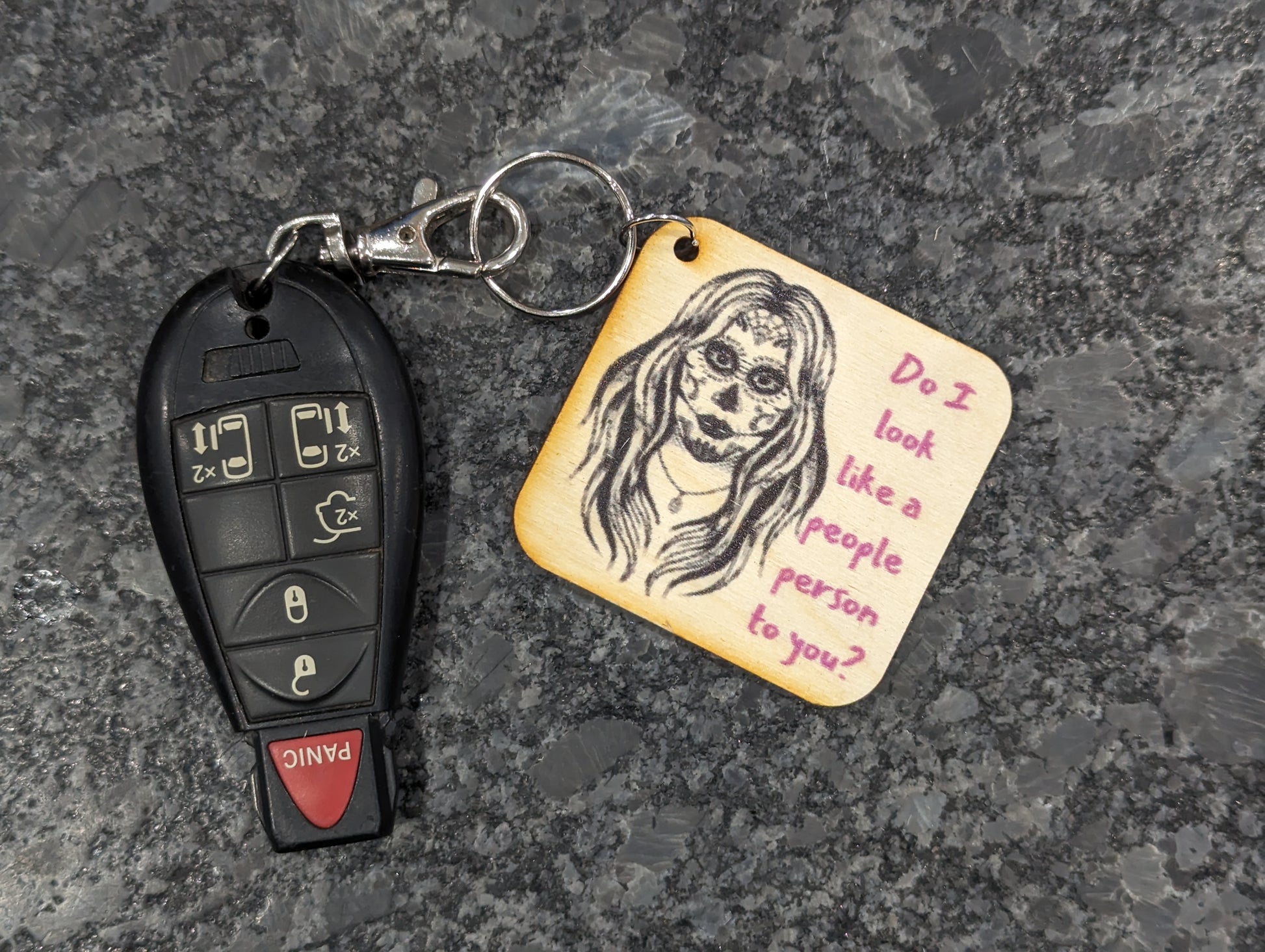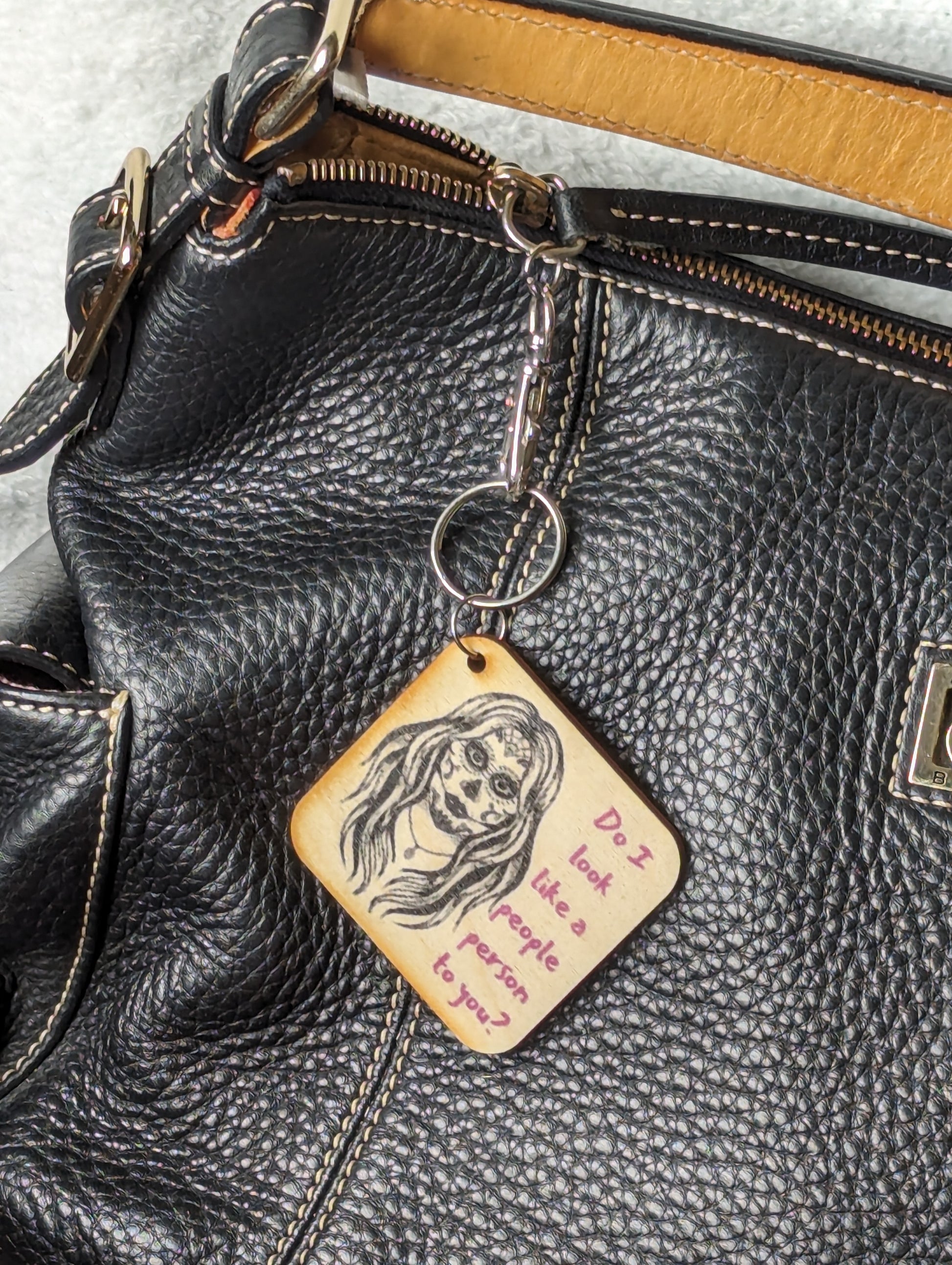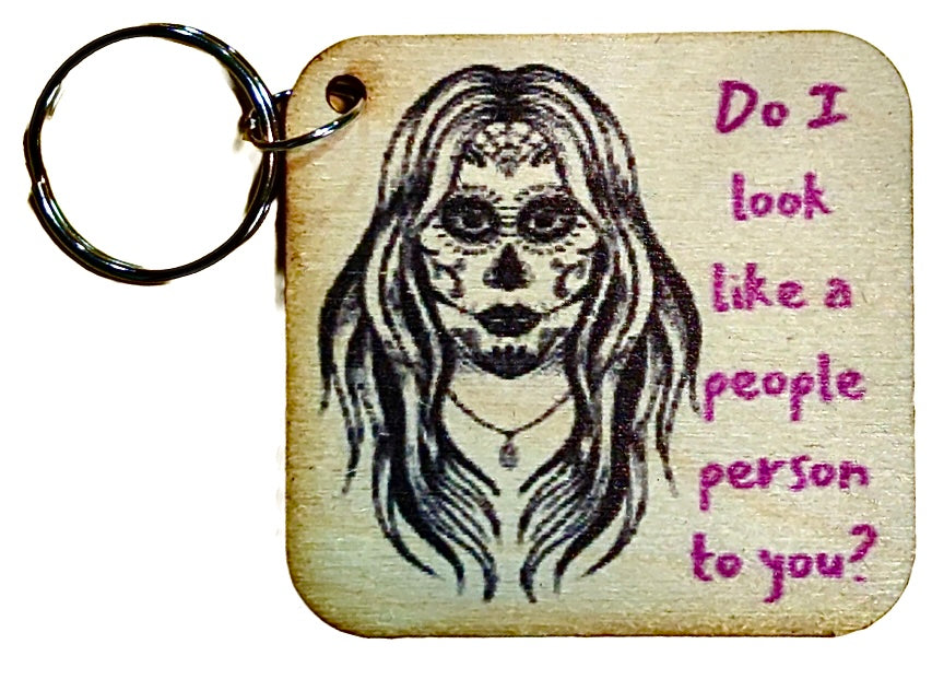 Unique Colorful Keychain Birchwood Humorous Magnet Filing Cabinet Refrigerator Keys Friend Gift USA Made Do I look Like A People Person To You