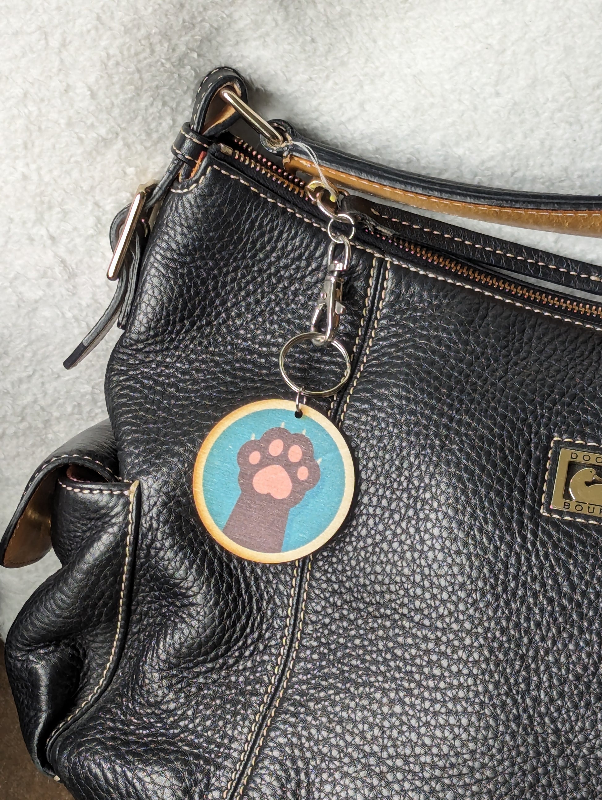 Fun Colorful Gift Novelty Keychain Round Paw Refrigerator Magnet Unique Thoughtful USA Made Cute Cat Mom Dad Paw Blue Background