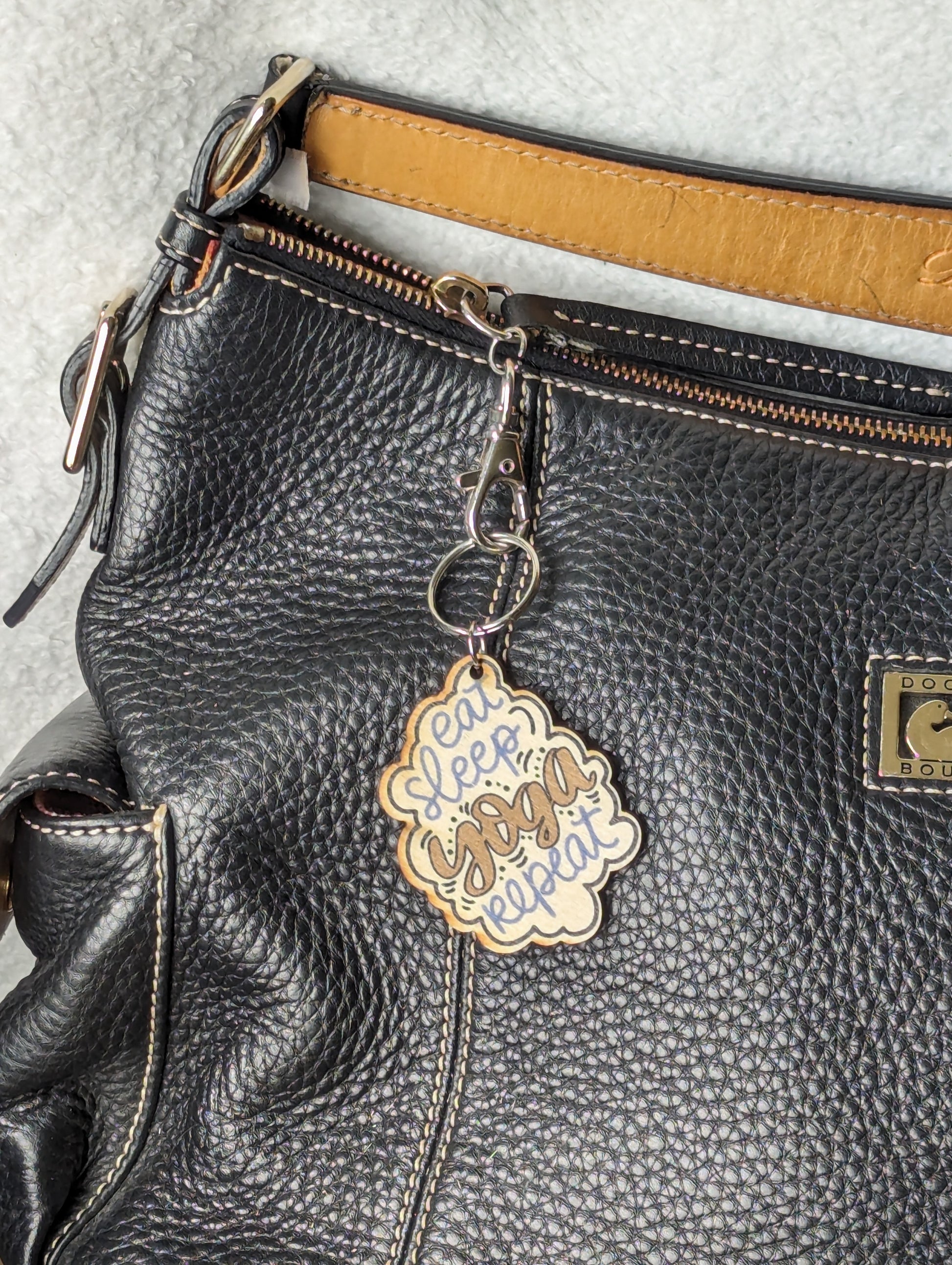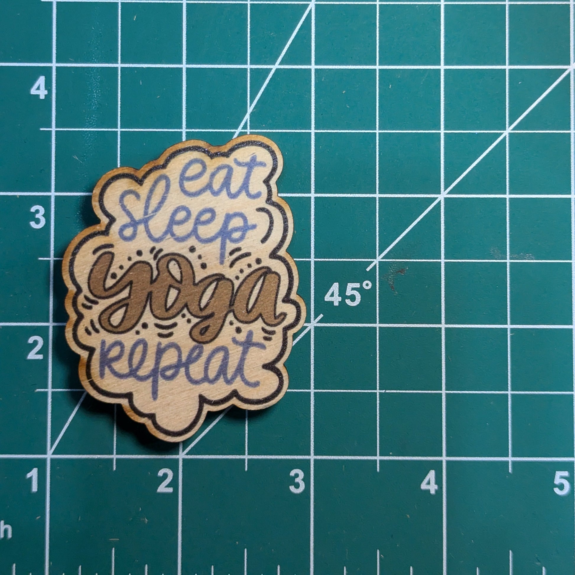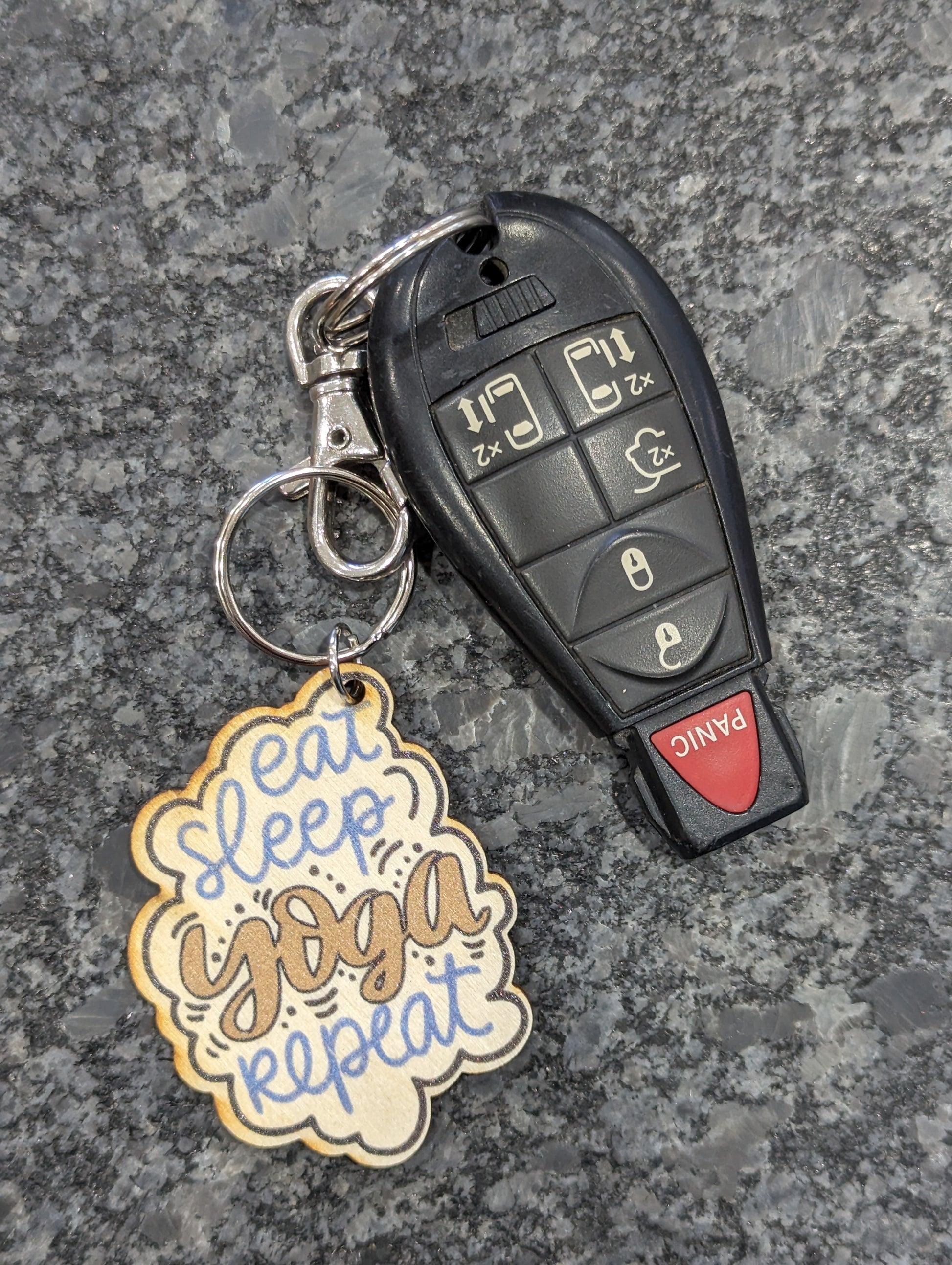 Quirky Unique Gift Keychain Yoga Blue Gold Birchwood Kitchen Magnet Refrigerator Office Filing Cabinet Thank You USA Made Eat Sleep Yoga Repeat