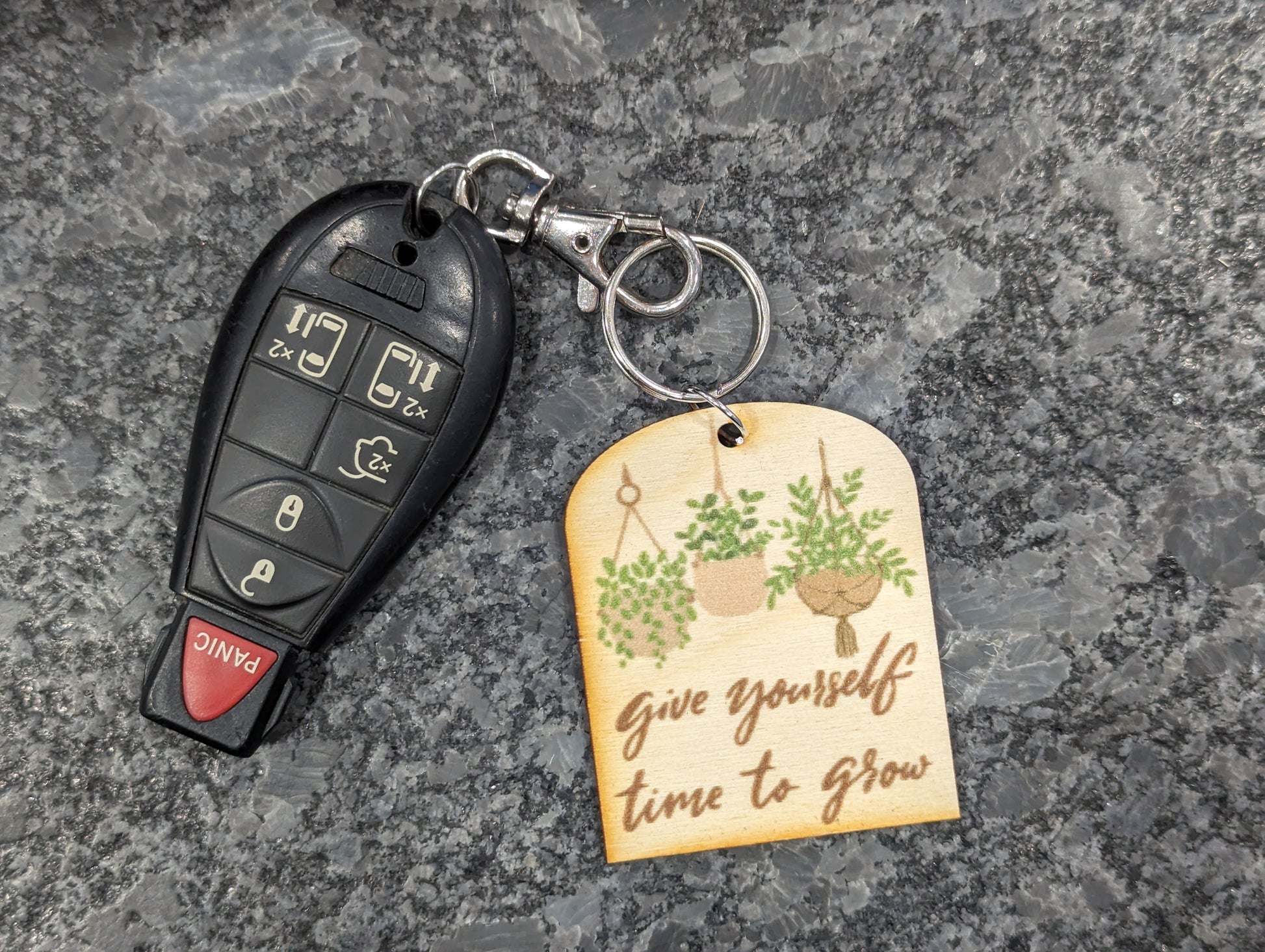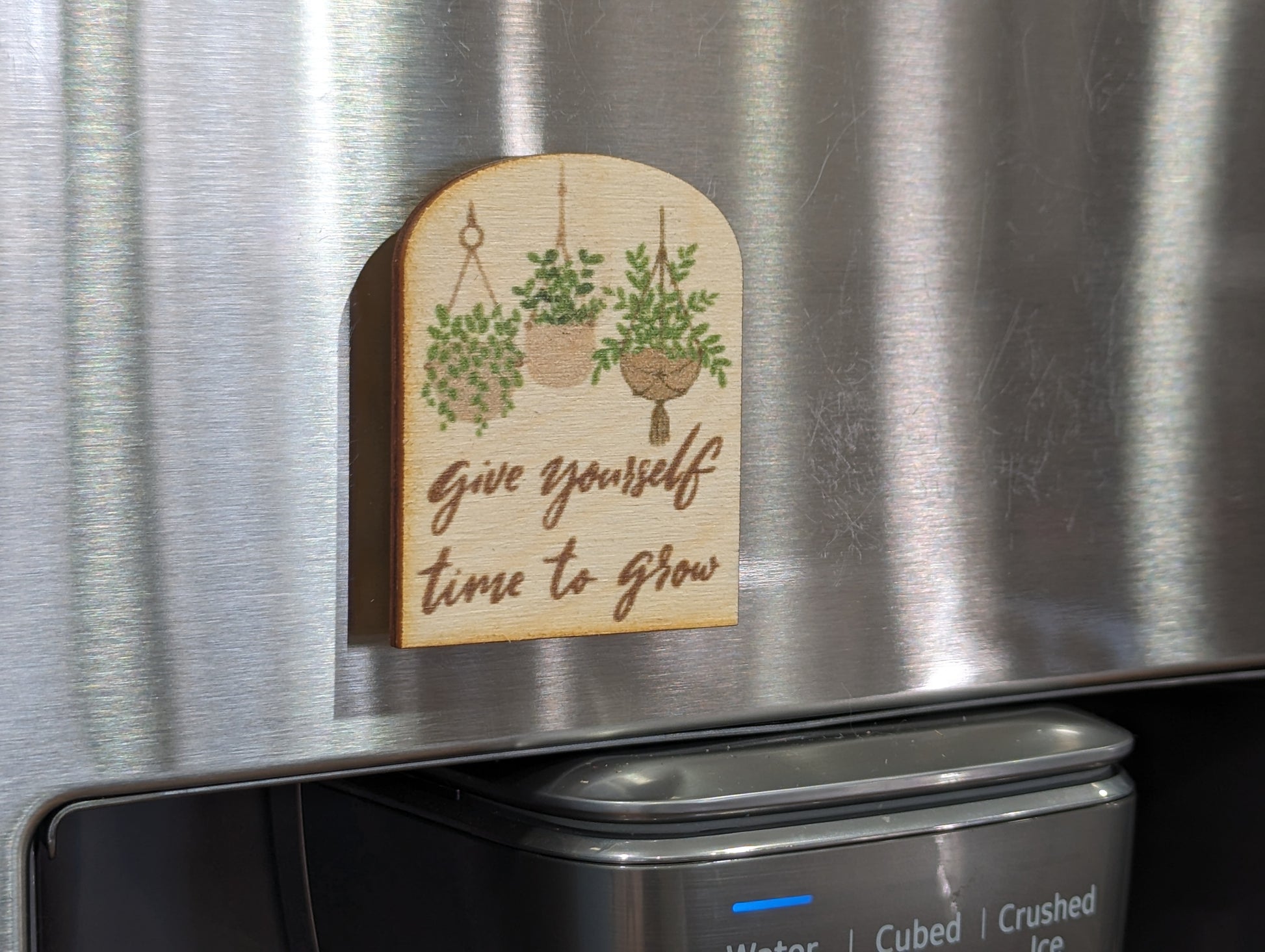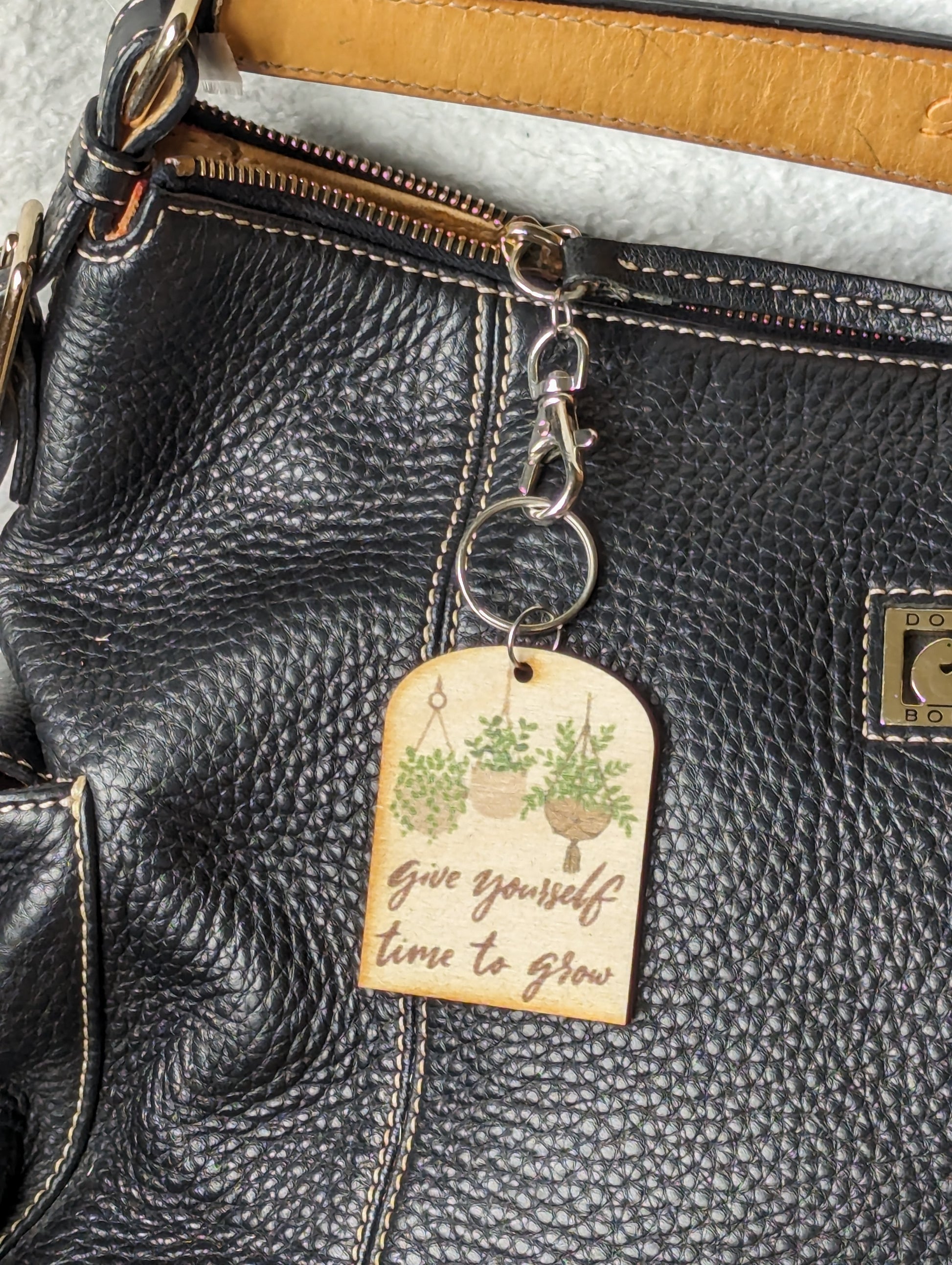 Wonderful Inspirational Friend Gift Keychain Unique Shape Colorful Plant Fun Birchwood Magnet Key Refrigerator Office Filing Cabinet USA Made Give Yourself Time To Grow