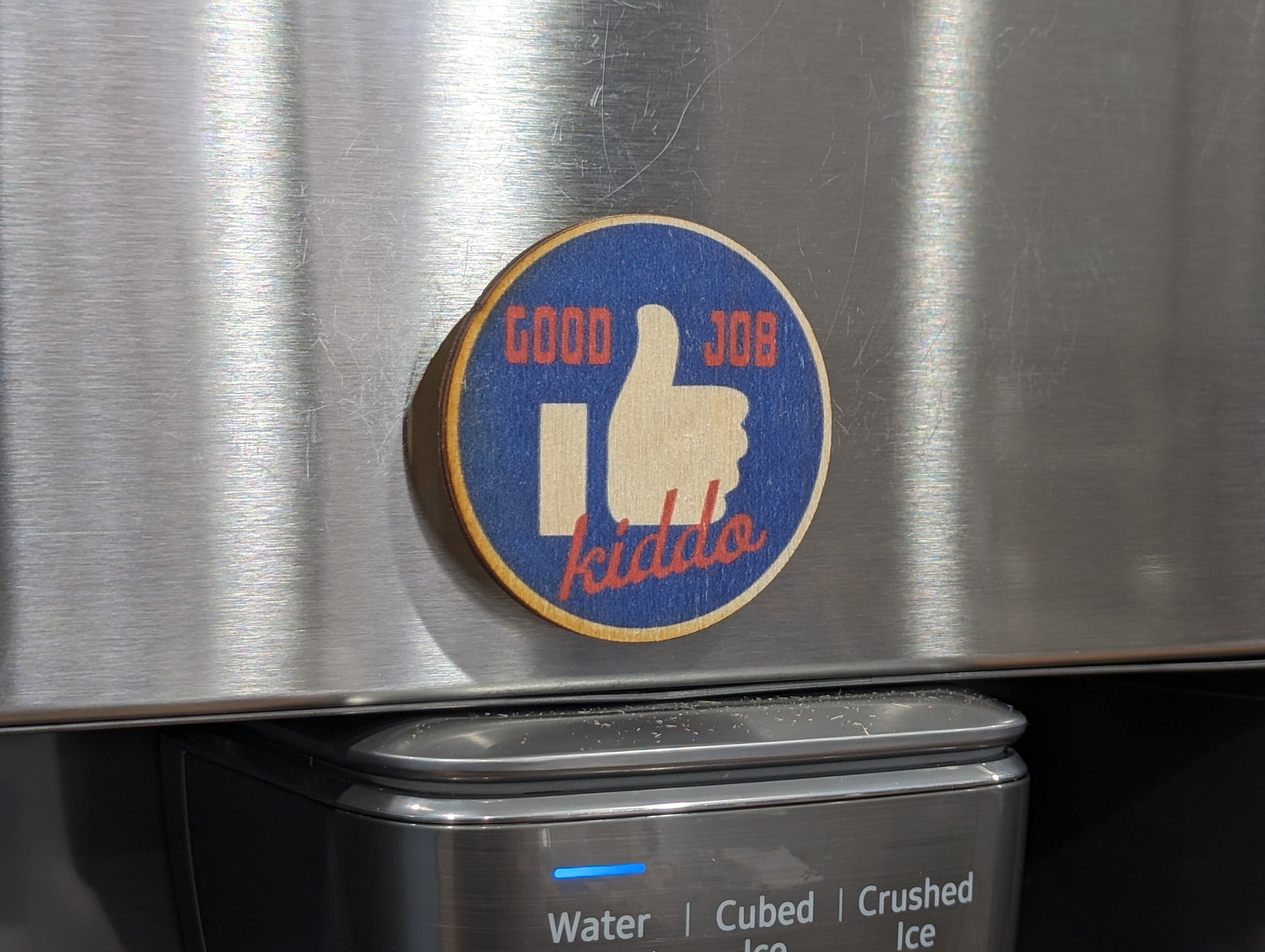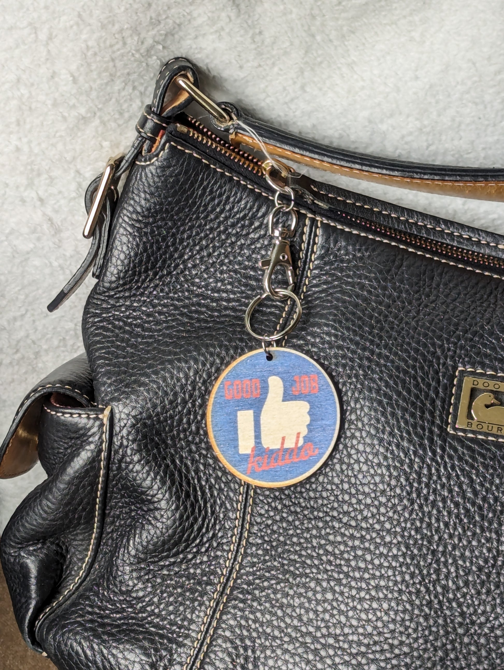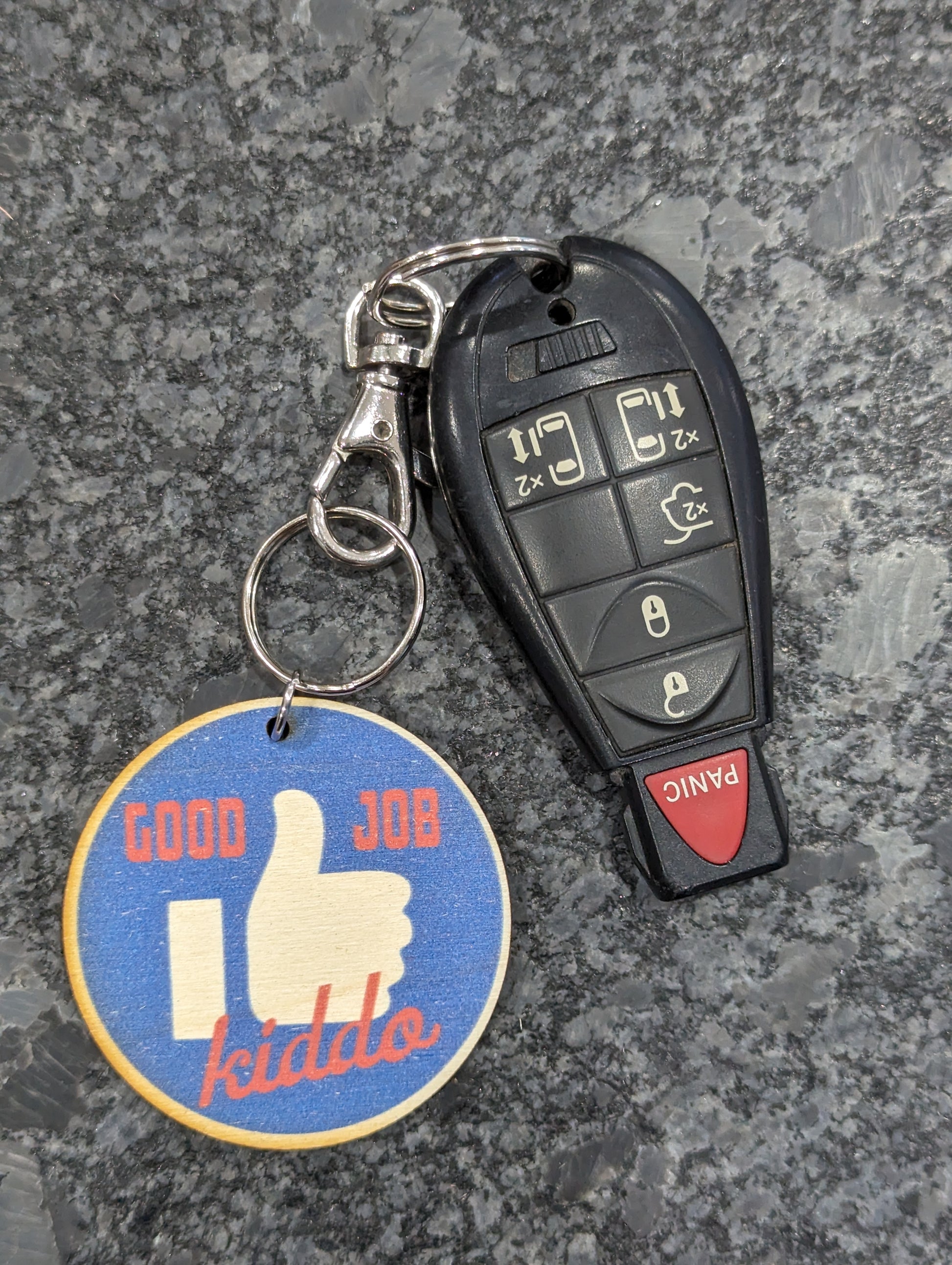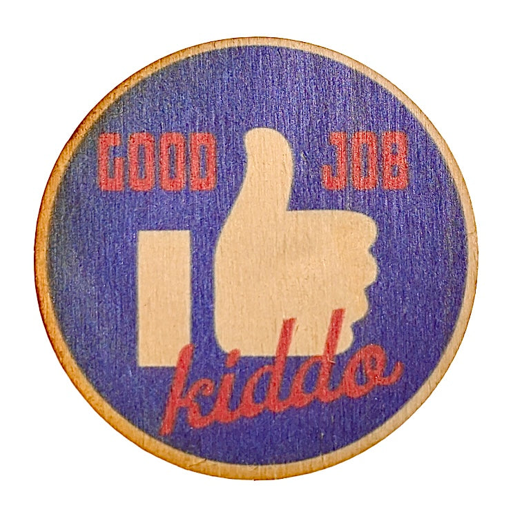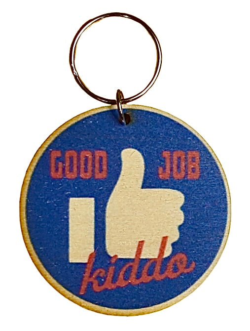 Cute Color Printed Birchwood Keychain Keys Gift Kitchen Magnet Refrigerator Kid Child Desk Fun Backpack USA Made Good Job Kiddo