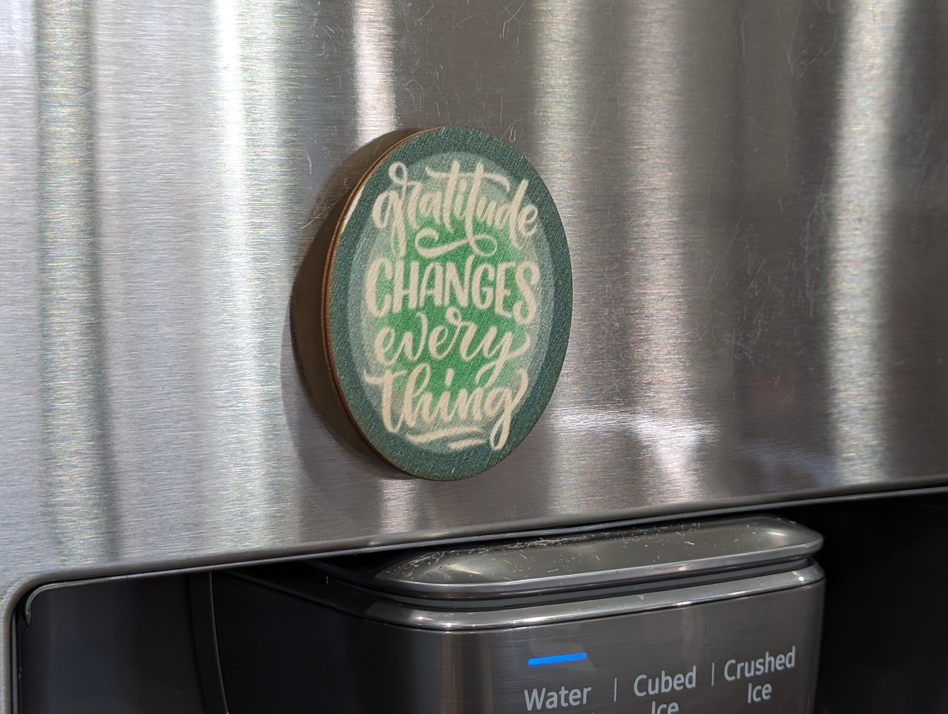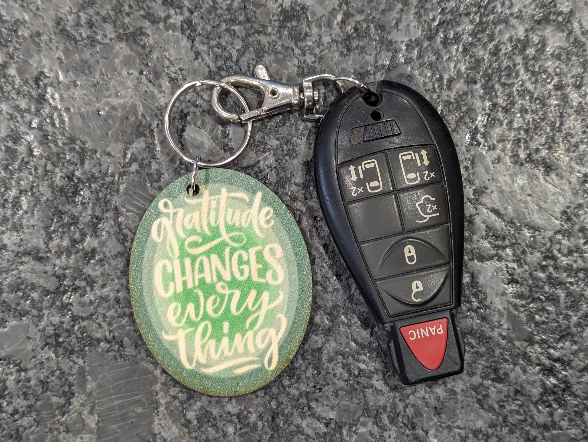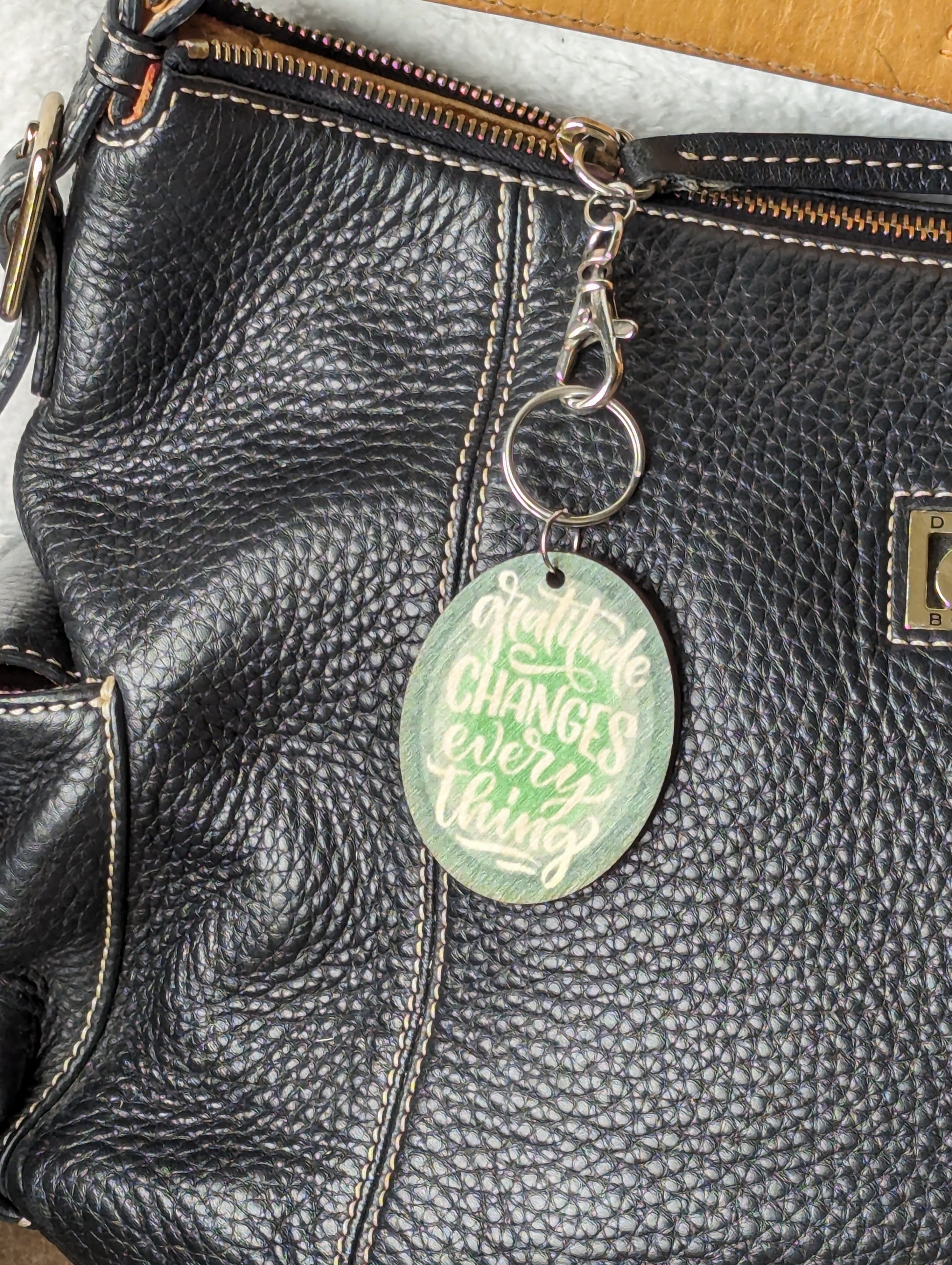 Inspirational Gift Keychain Oval Green Birchwood Magnet Key Refrigerator Filing Cabinet USA Made Gratitude Changes Everything