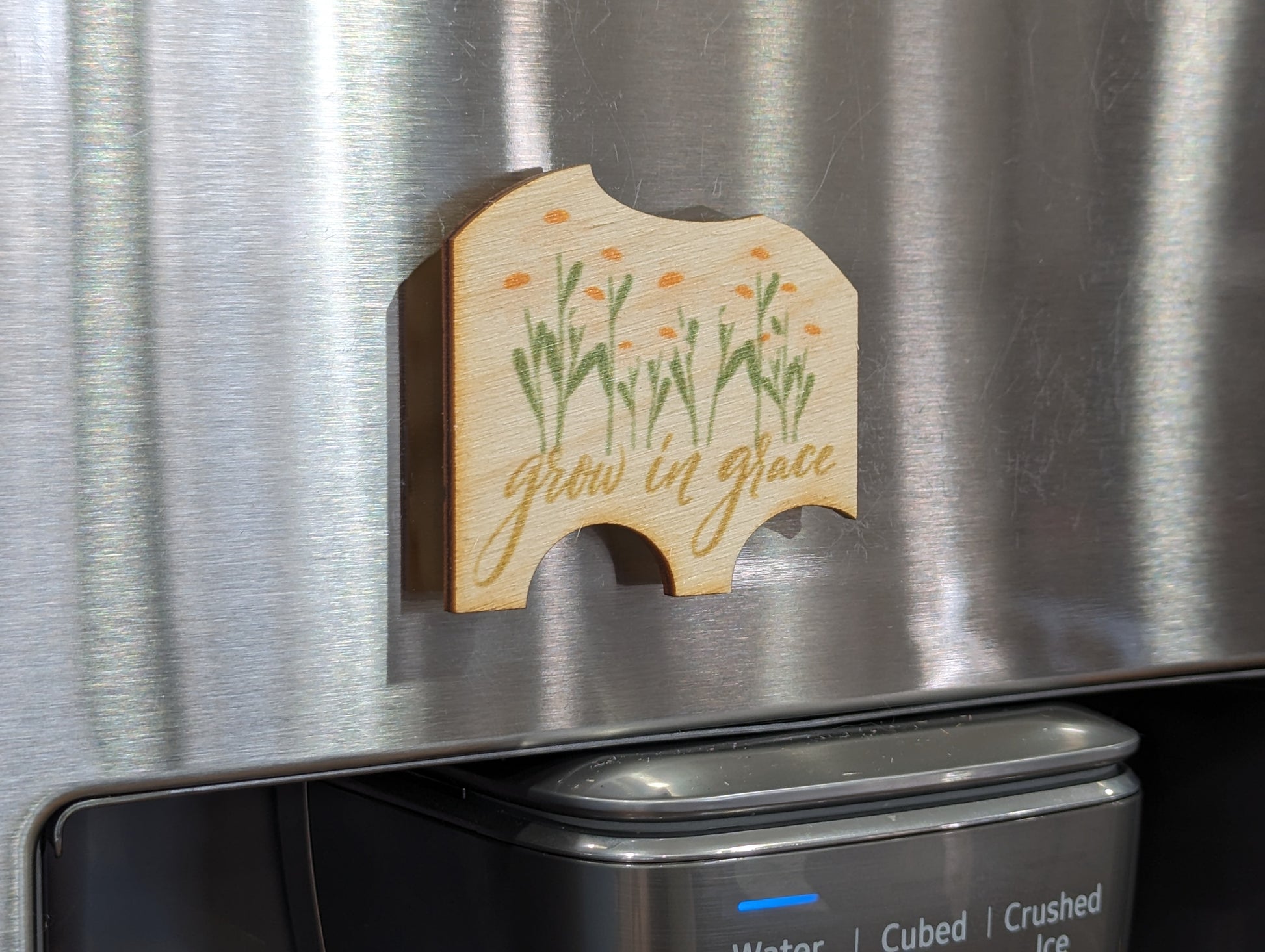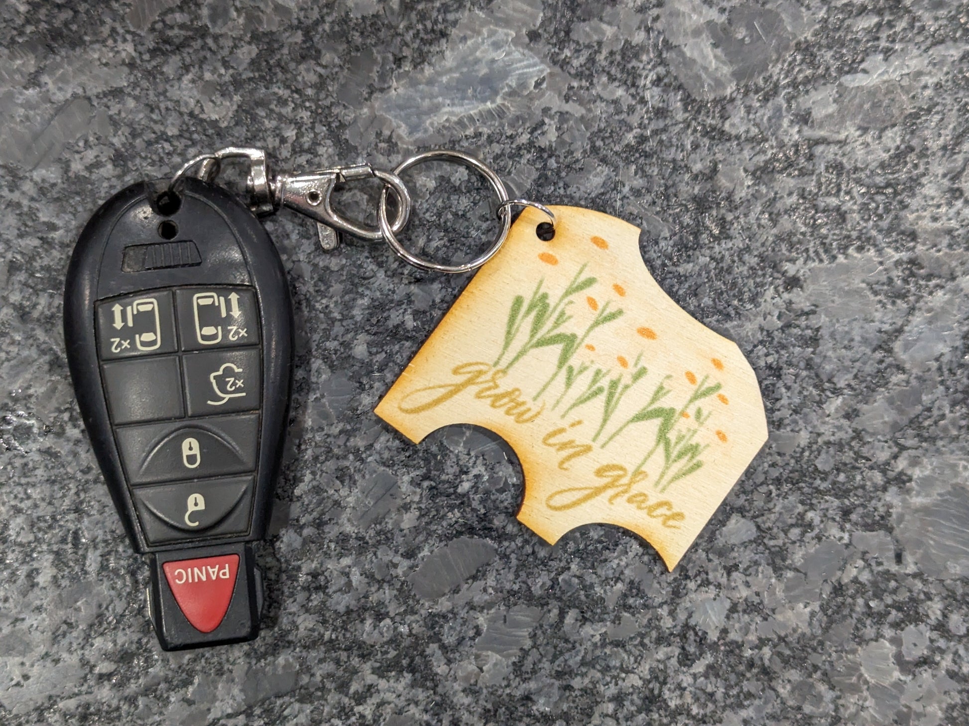 Beautiful Gift Keychain Colorful Flowers Printed Birchwood inspirational Magnet Workspace Filing Cabinet Refrigerator Key Friend USA Made Grow In Grace