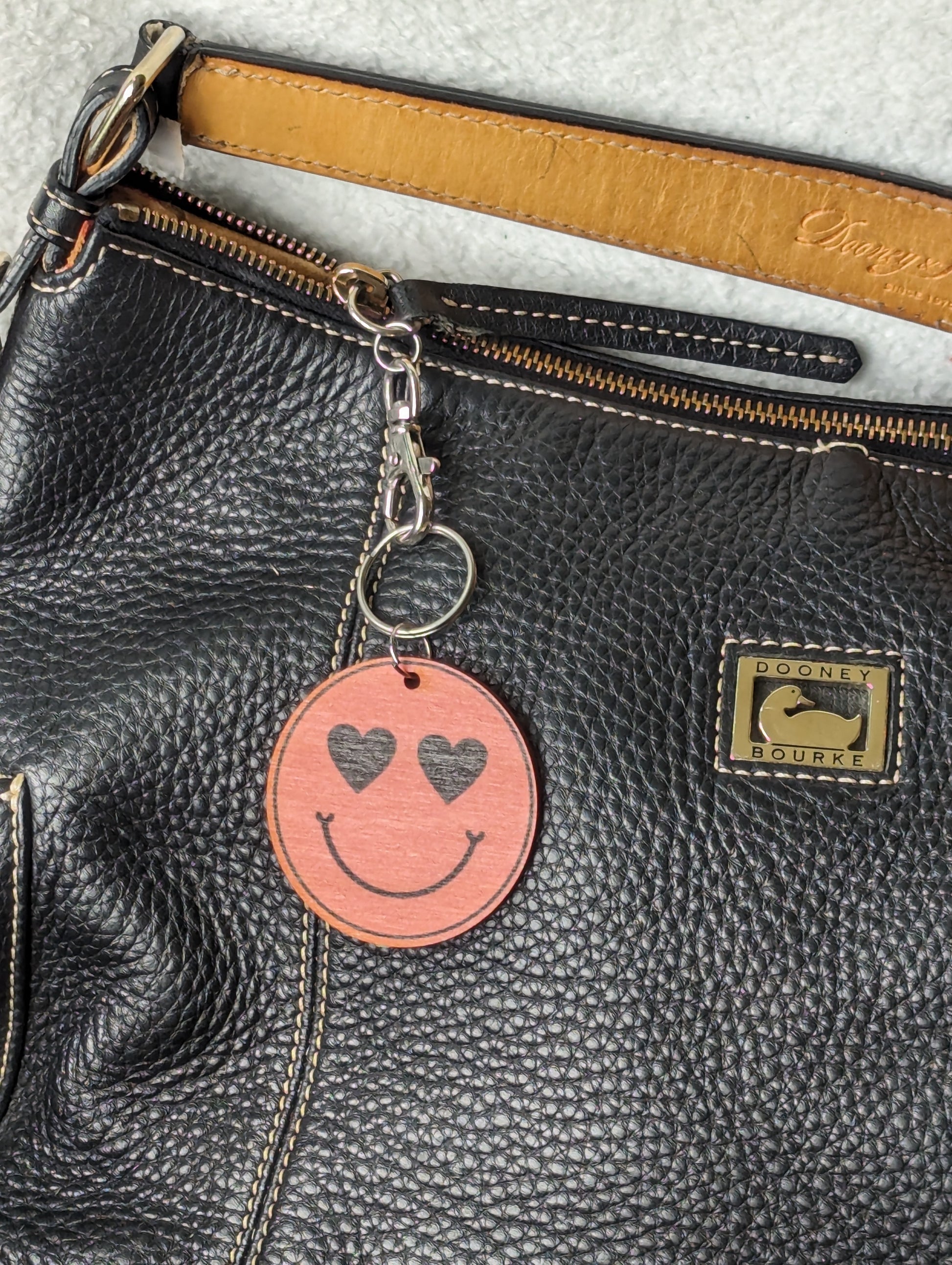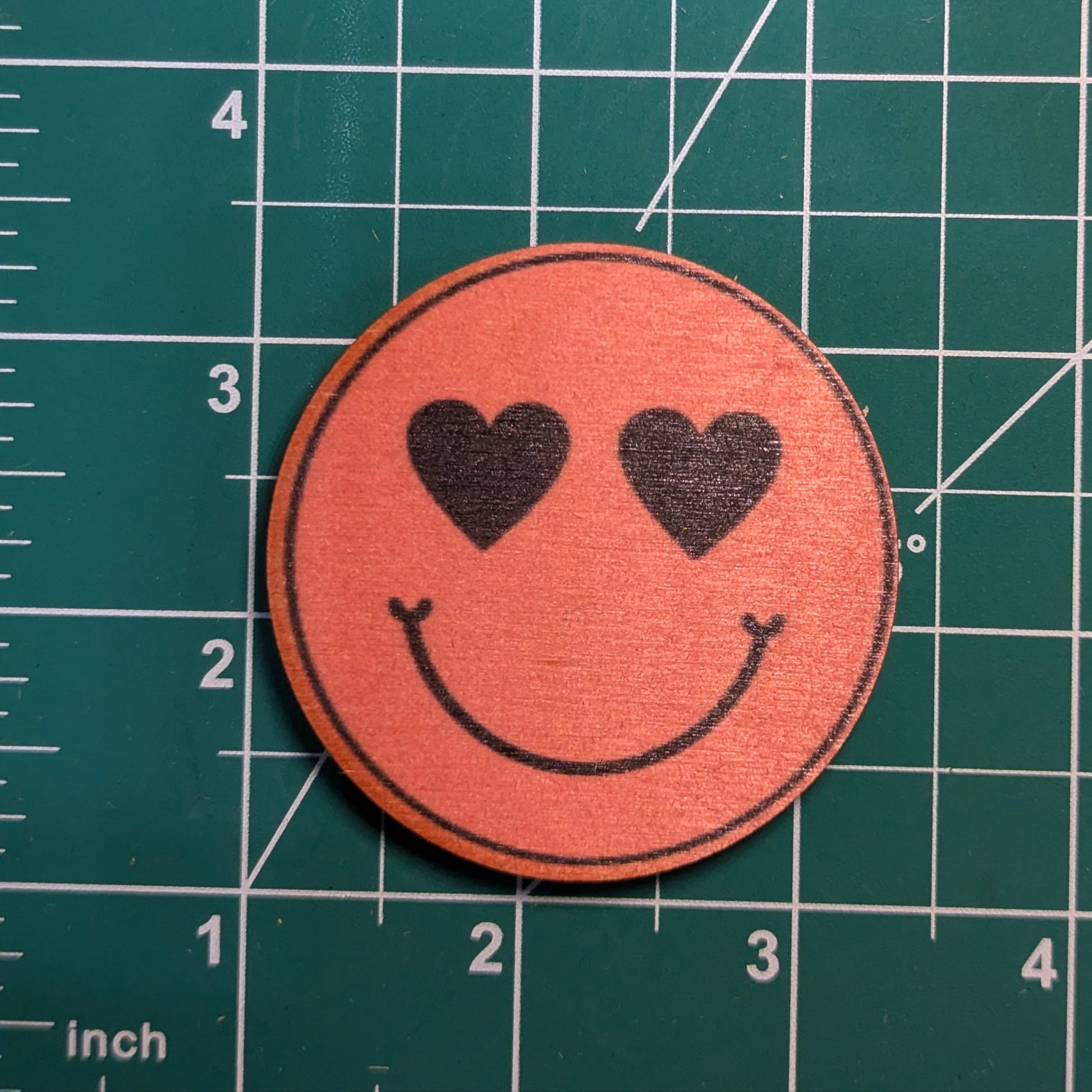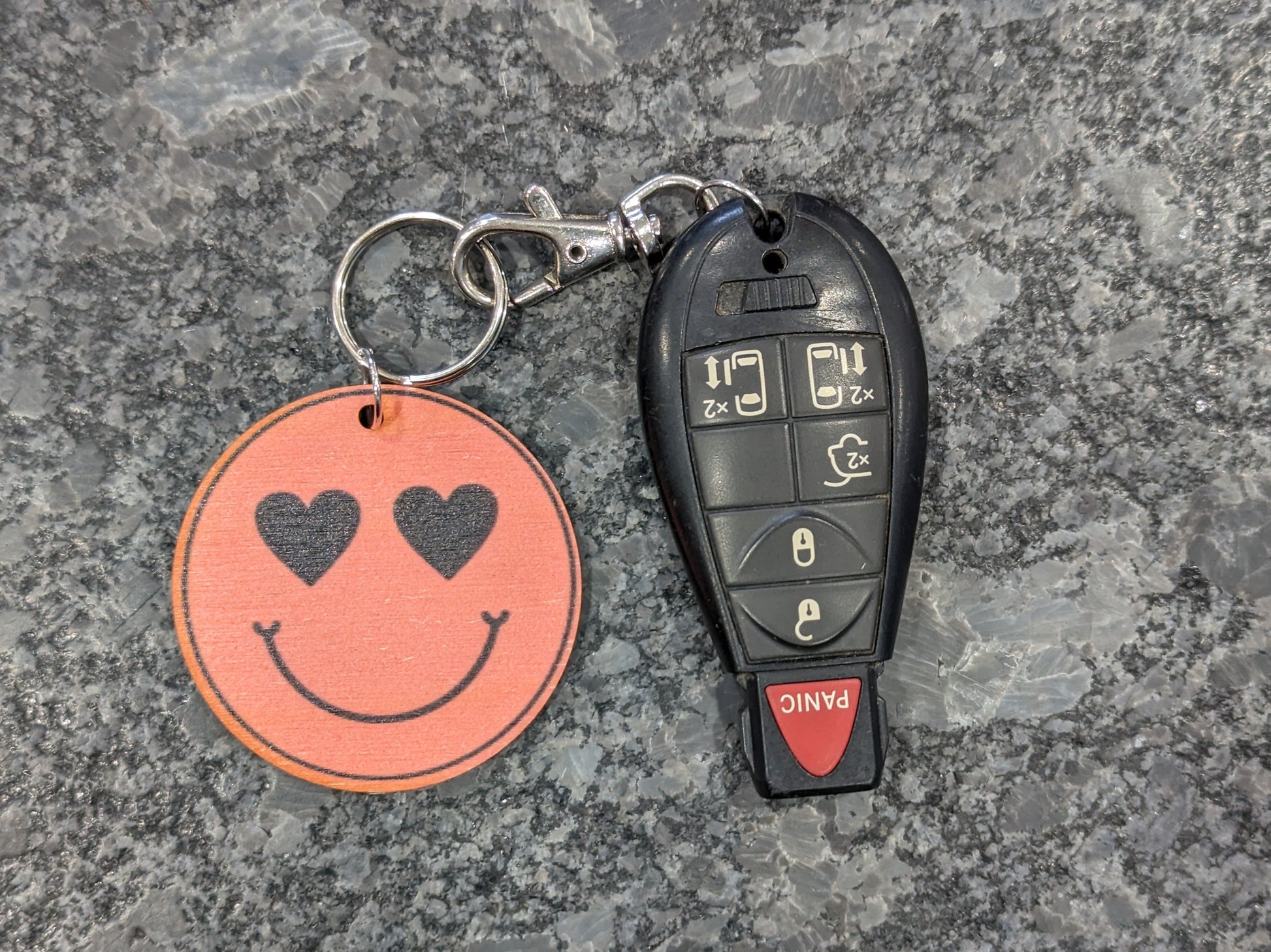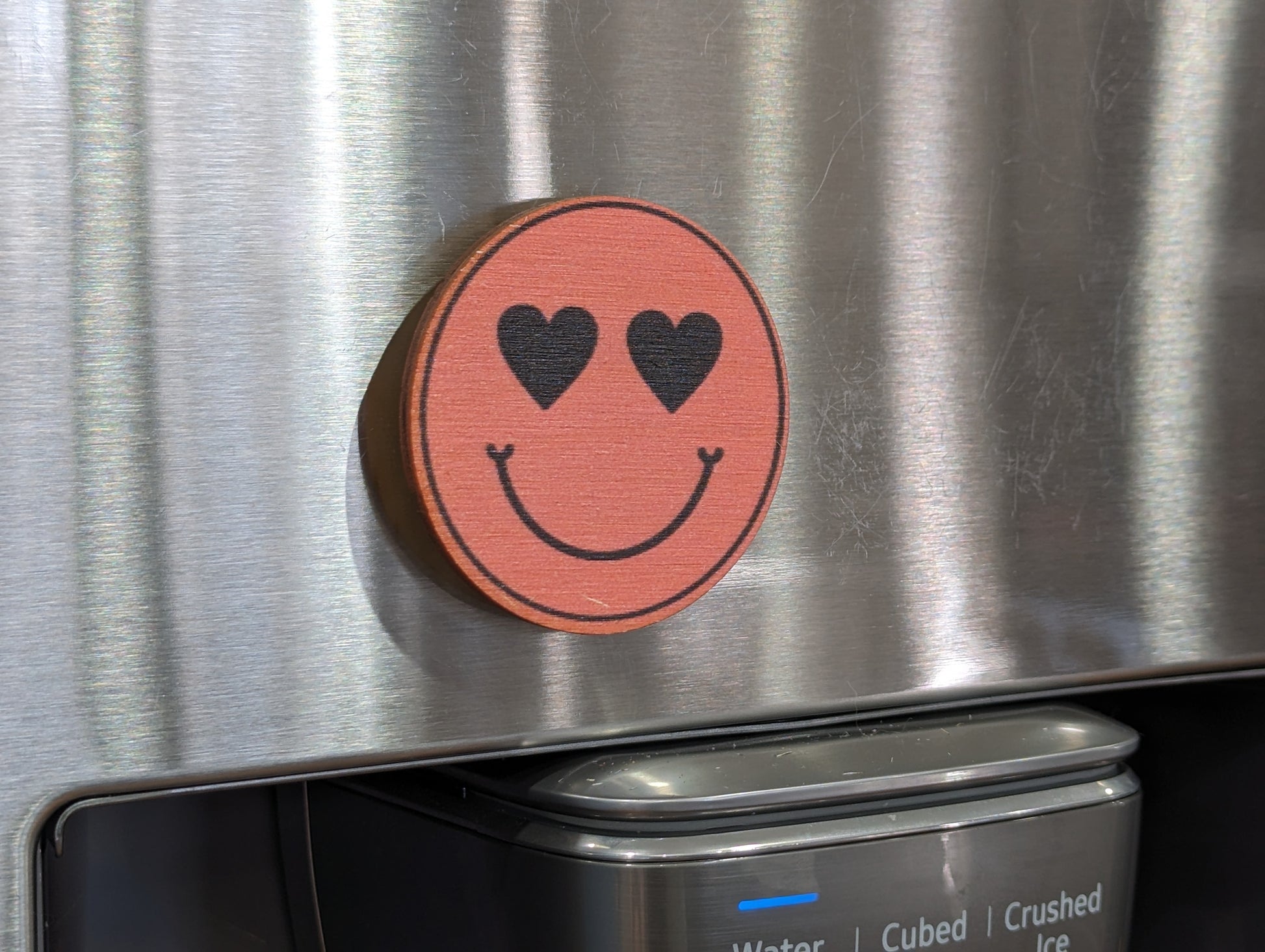 per Cute Round Gift Keychain Colorful Birchwood Fun Friend Magnet Key Refrigerator Filing Cabinet Adorable USA Made Heart Eyes Emoji