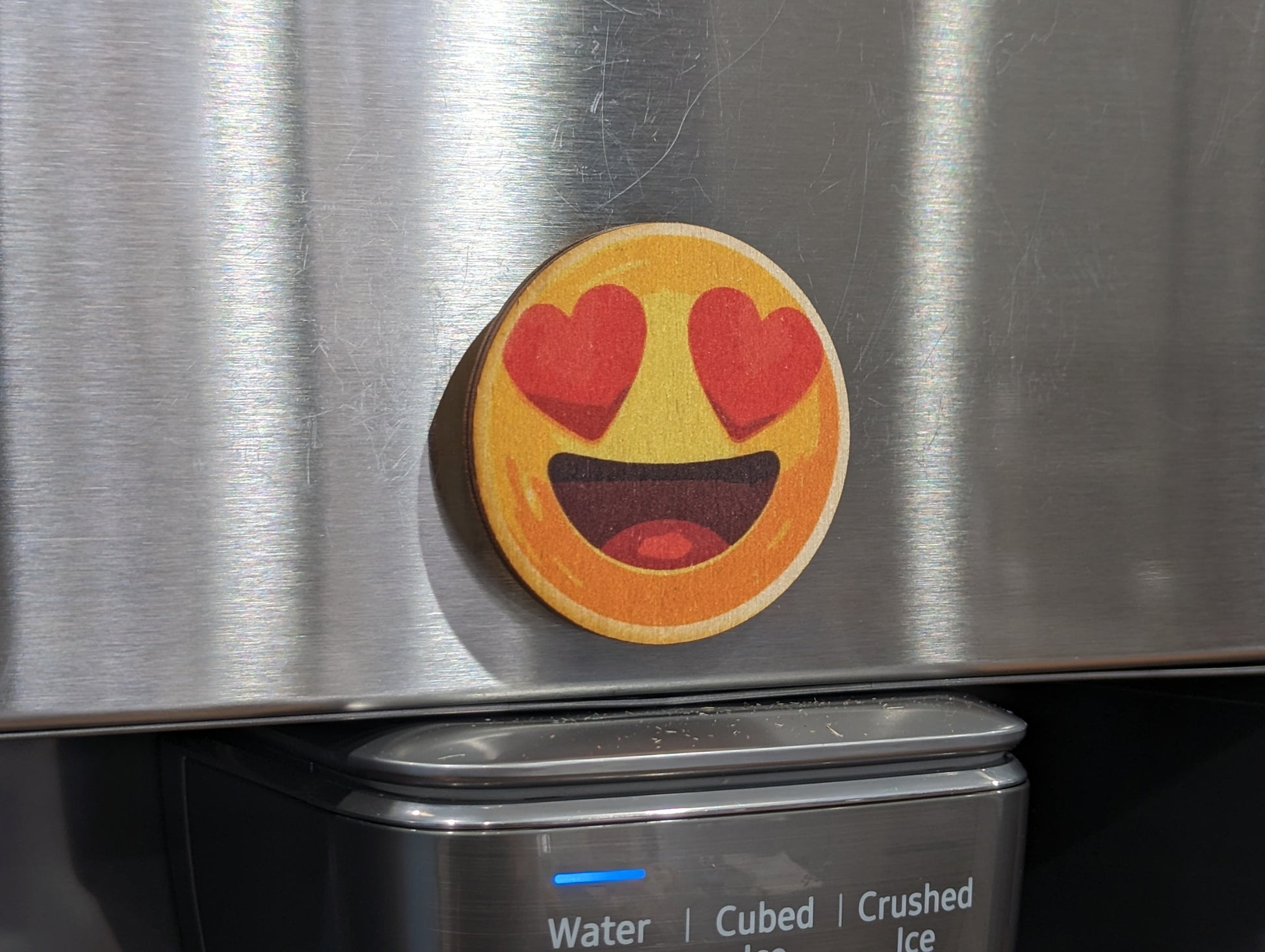 Super Cute Yellow Backpack Gift Keychain Colorful Birchwood Fun Friend Magnet Key Refrigerator Workspace USA Made Yellow Heart Eyes Emoji