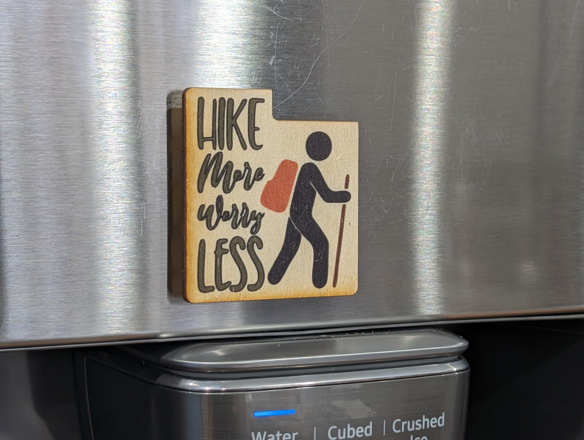 Awesome Color Printed Birchwood Keychain Keys Gift Kitchen Magnet Refrigerator Friend Workspace Fun Hiking USA Made Hike More Worry Less