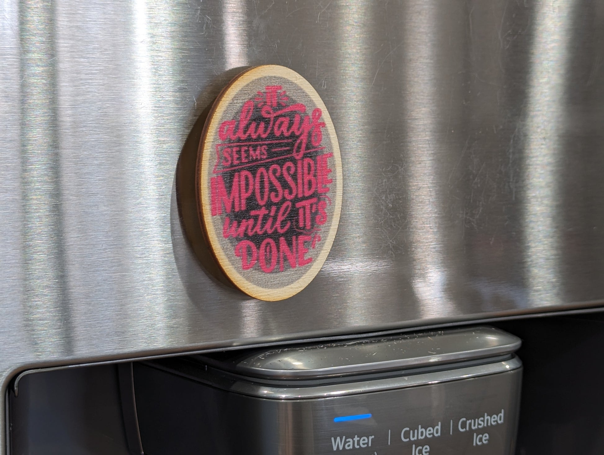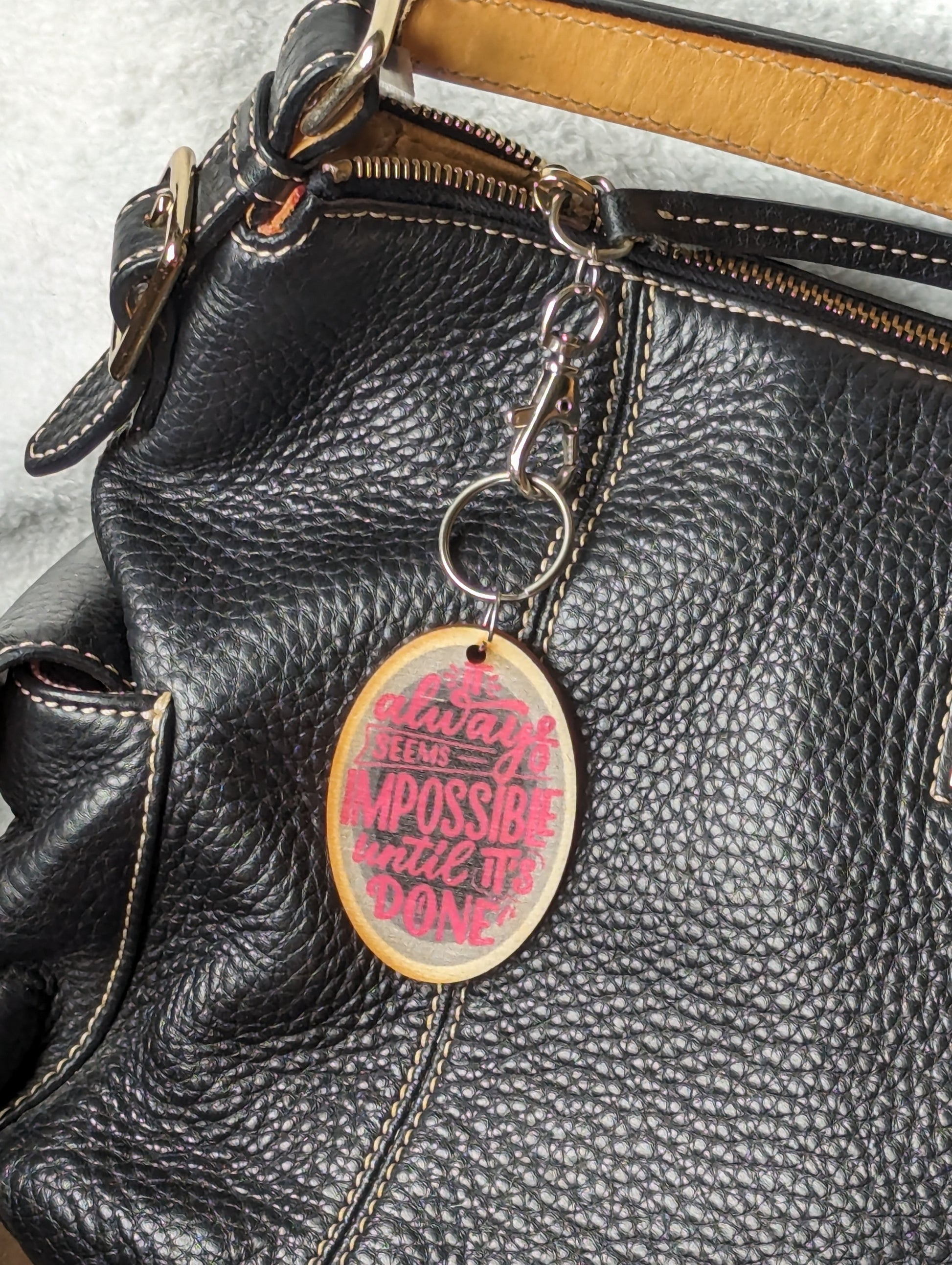 Cute Pink Gray Keychain Birchwood Creative Magnet Inspirational Reminder Filing Cabinet Refrigerator Keys Gift USA Made It Always Seems Impossible Until It's Done