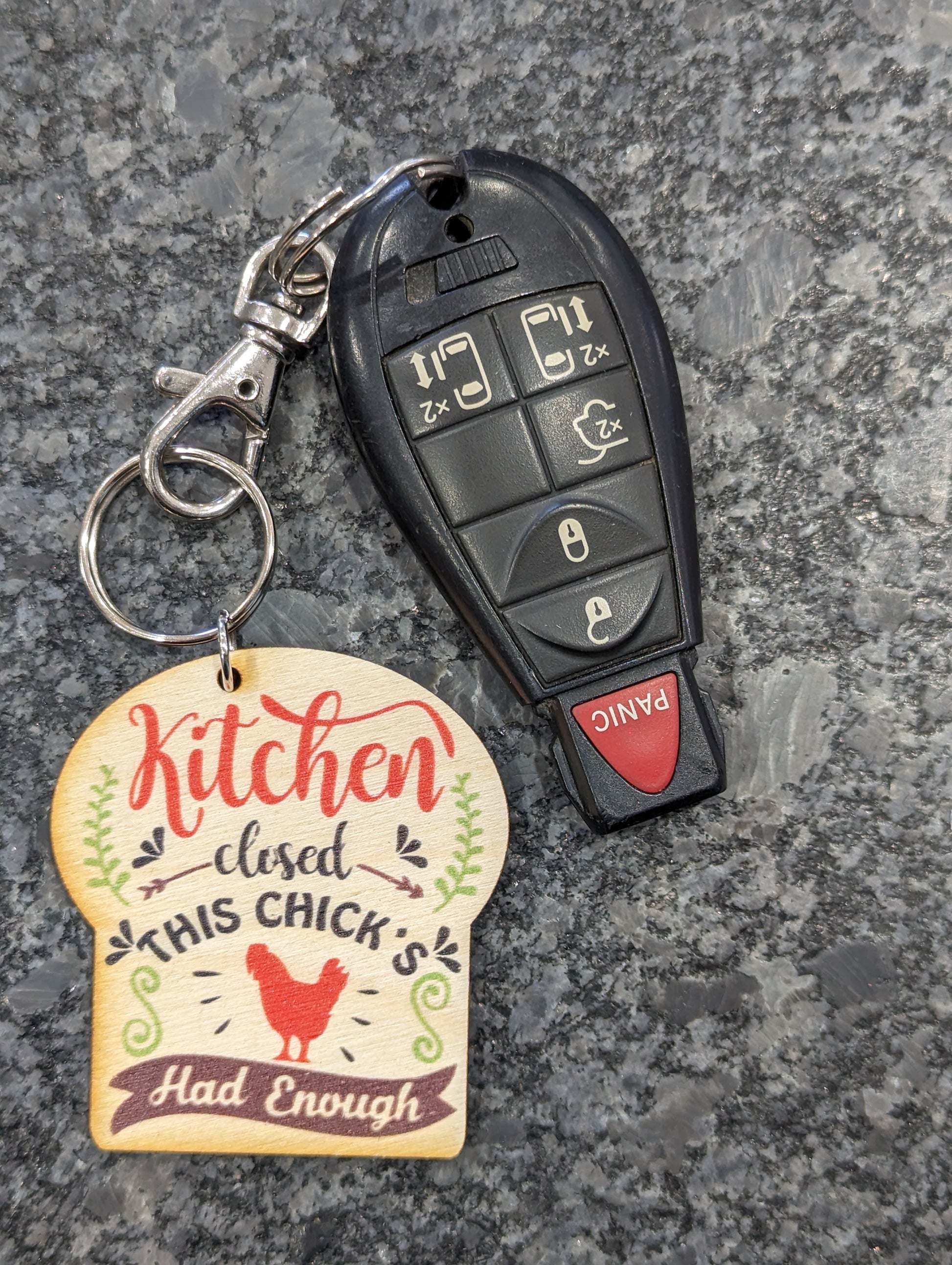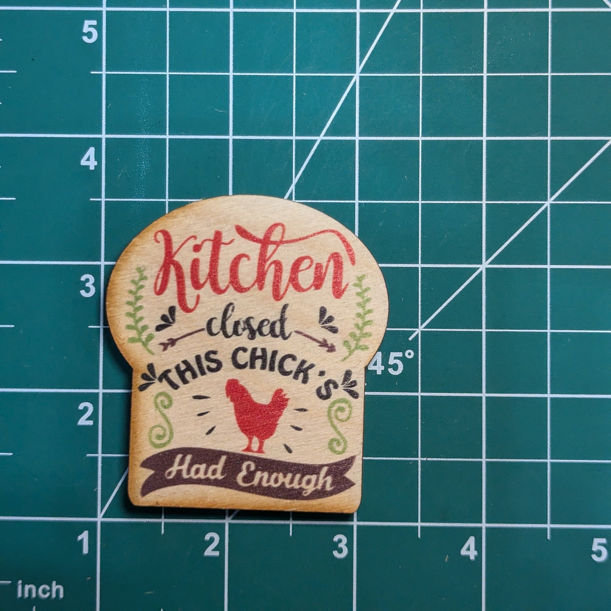 Super Cute Apron Shape Gift Keychain Colorful Birchwood Fun Friend Magnet Key Refrigerator Bar USA Made Kitchen Closed This Chick's Had Enough