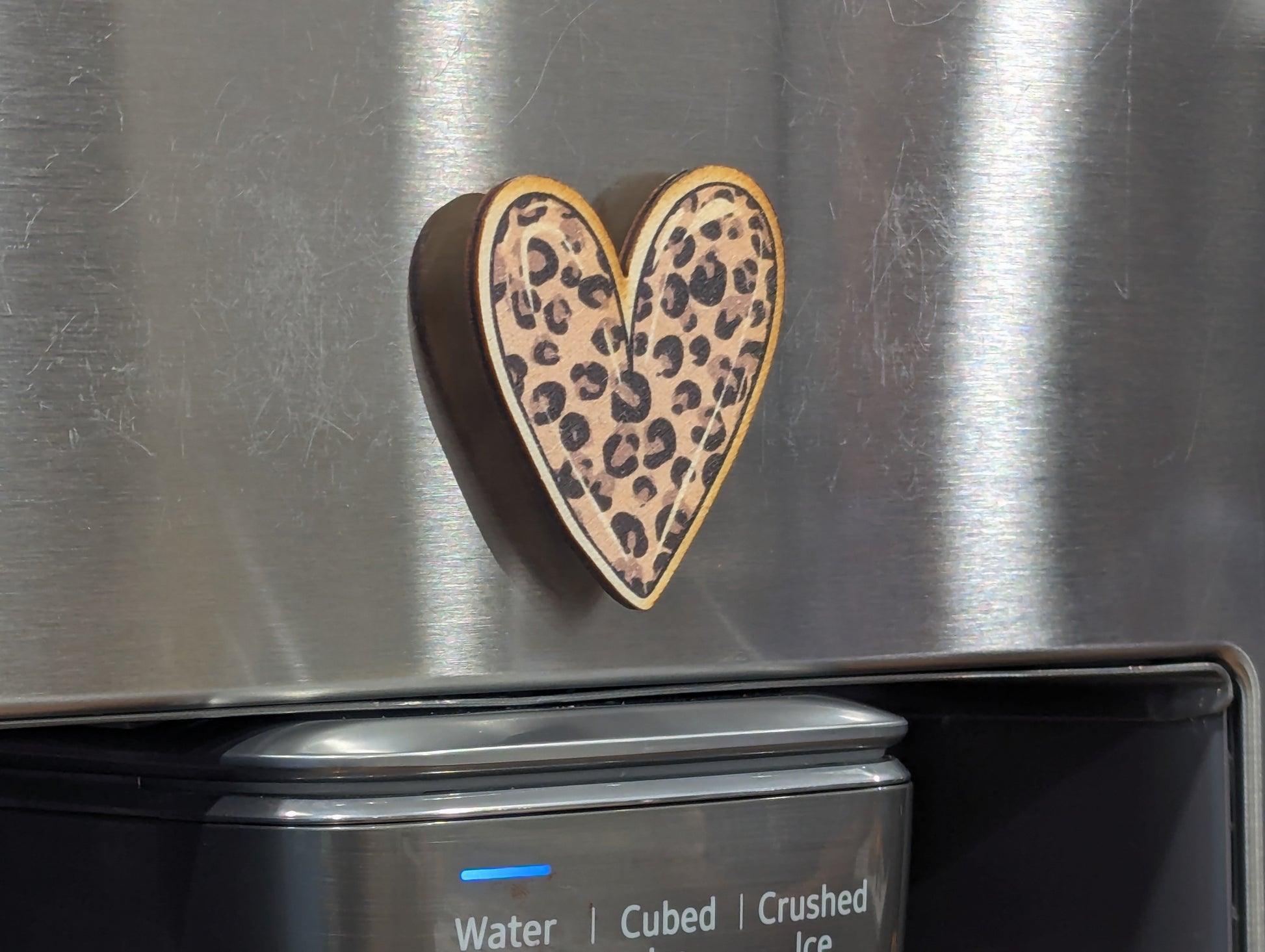 Adorable Colorful Printed Birchwood Keychain Backpack Gift Child Kid Kitchen Magnet Refrigerator Workspace USA Made Leopard Heart
