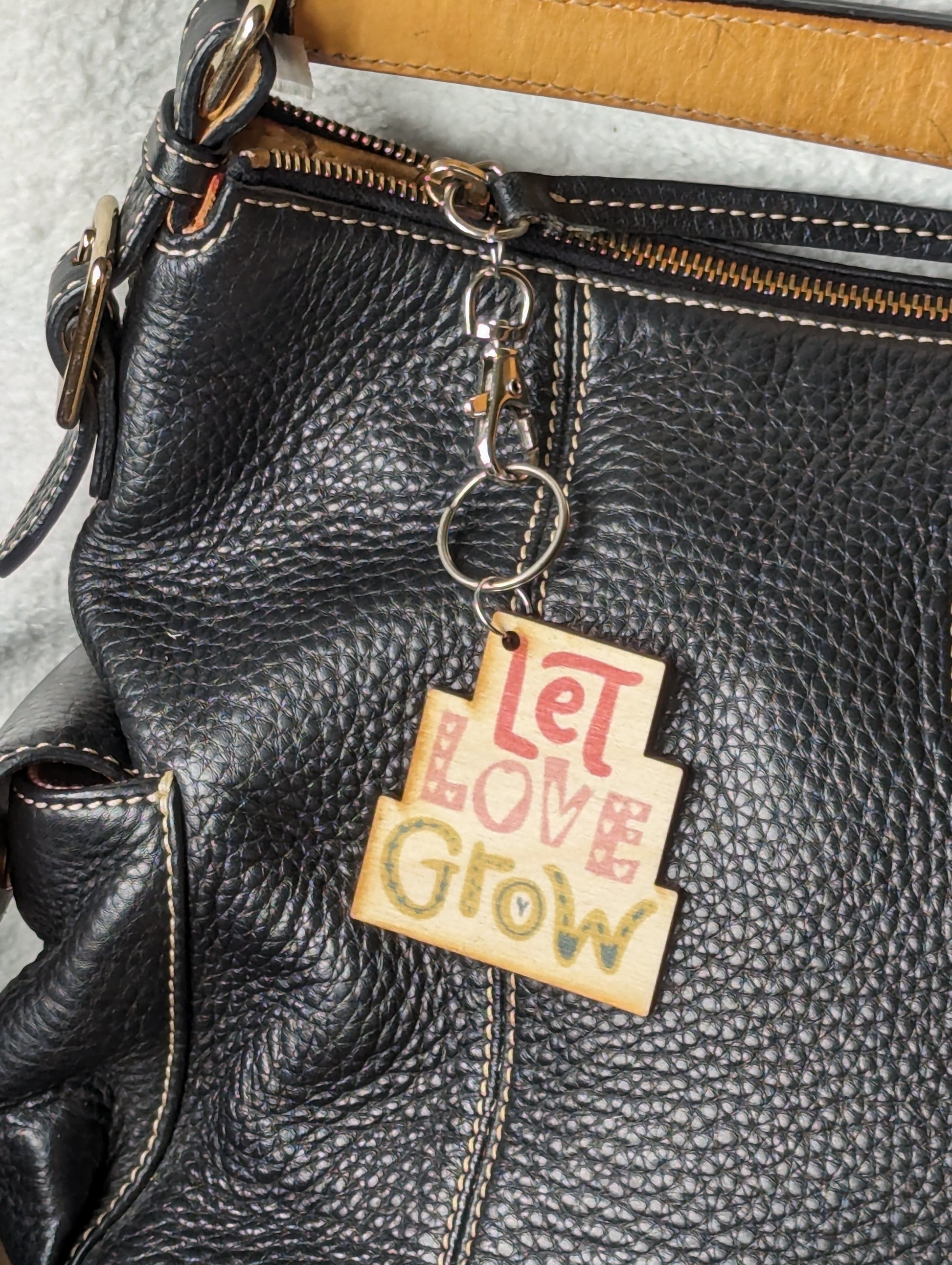 Colorful Kind Reminder Friend Gift Keychain Freeform Shape Birchwood Magnet Key Church Refrigerator Filing Cabinet USA Made Let Love Grow