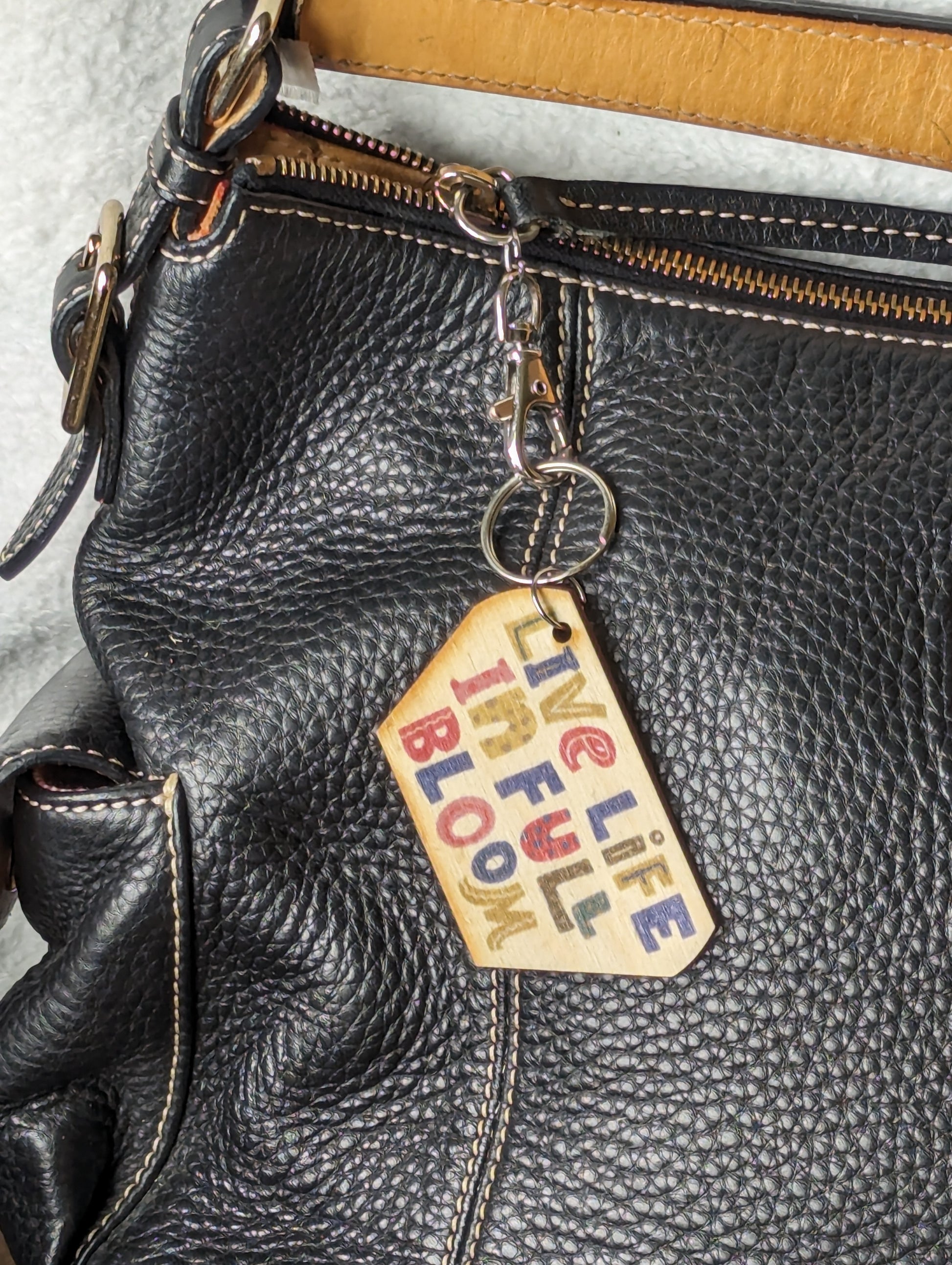 Colorful Kind Reminder Friend Gift Keychain Freeform Shape Birchwood Magnet Key Refrigerator Filing Cabinet USA Made Live Life In Full Bloom