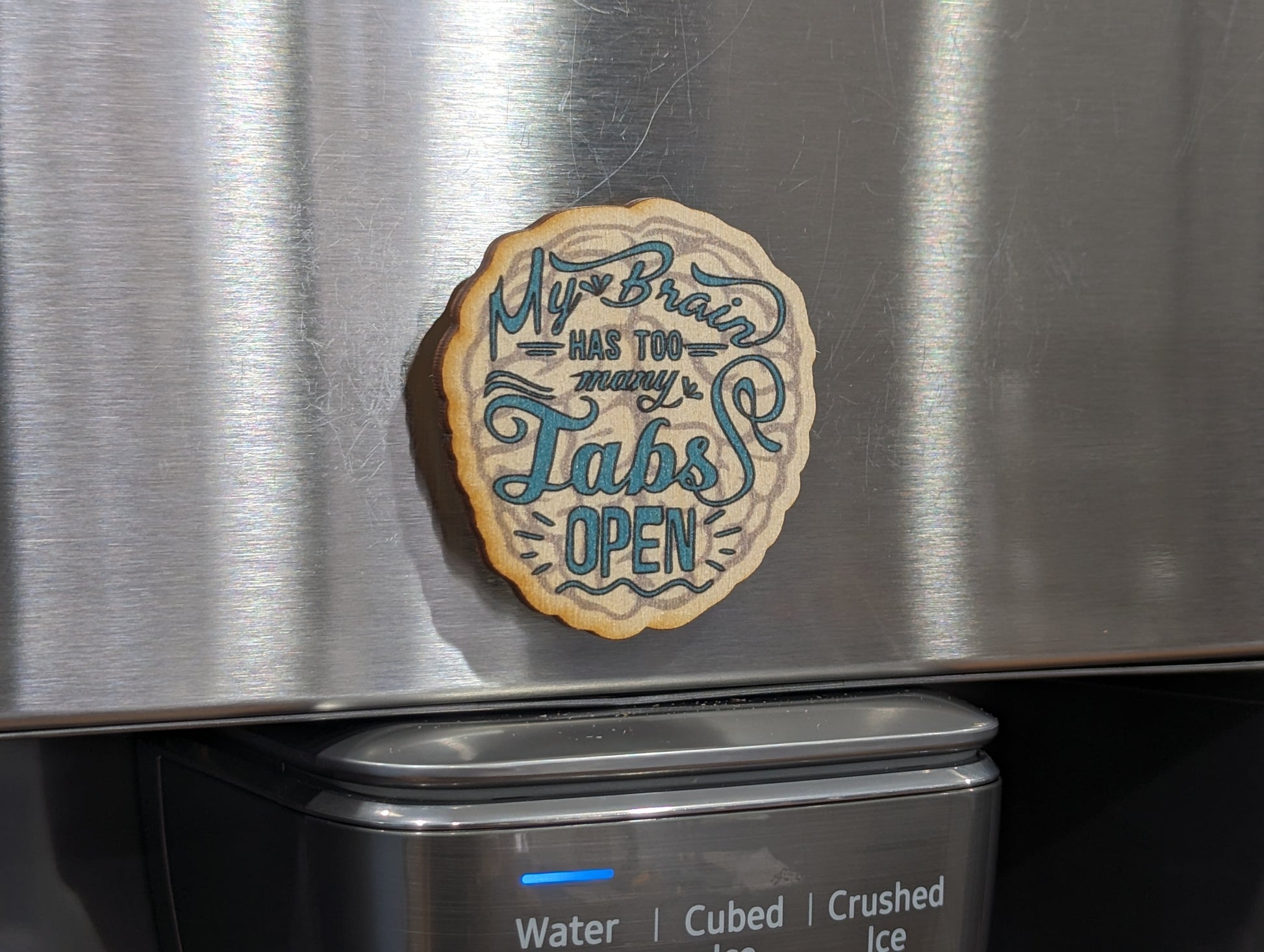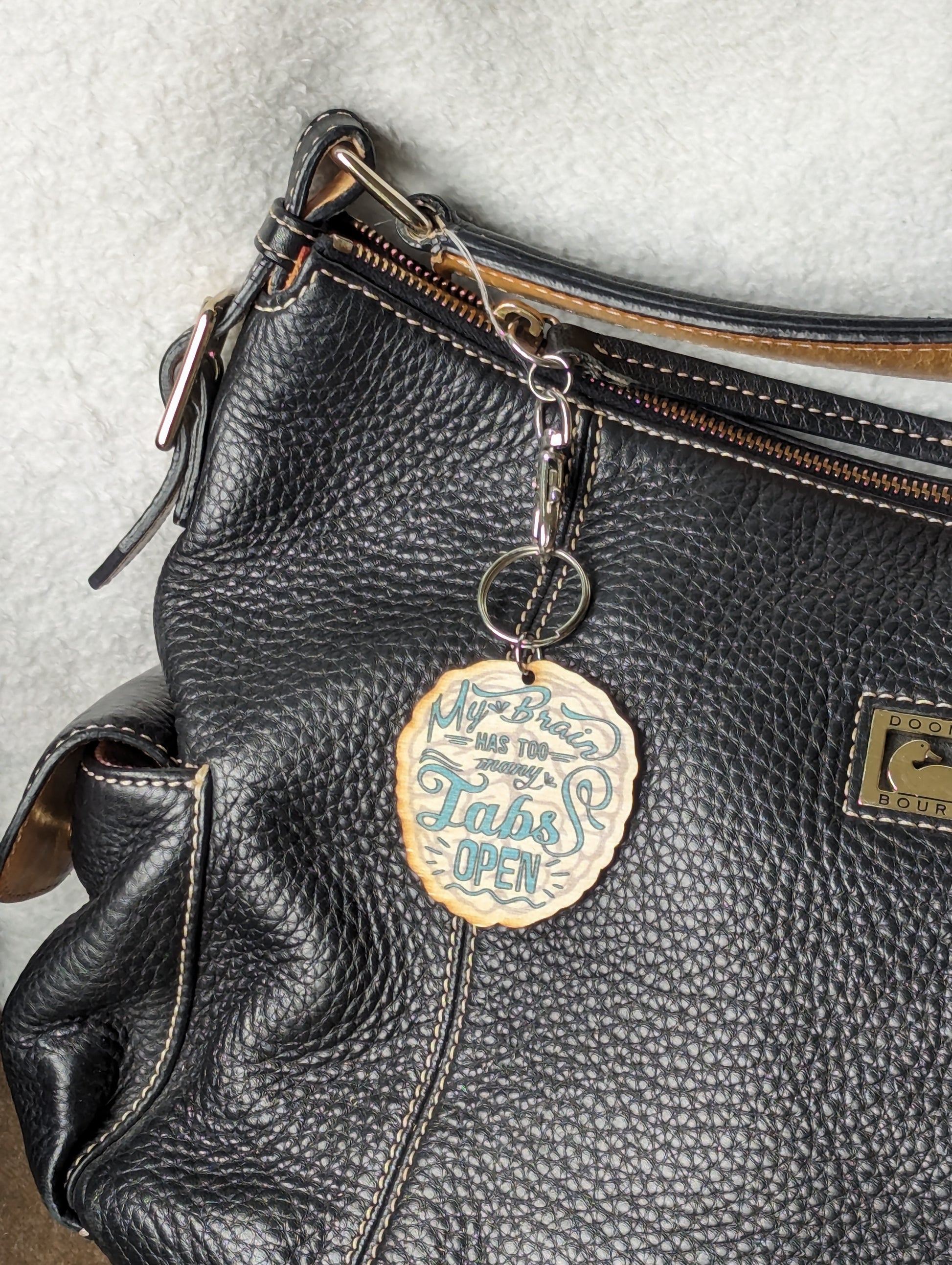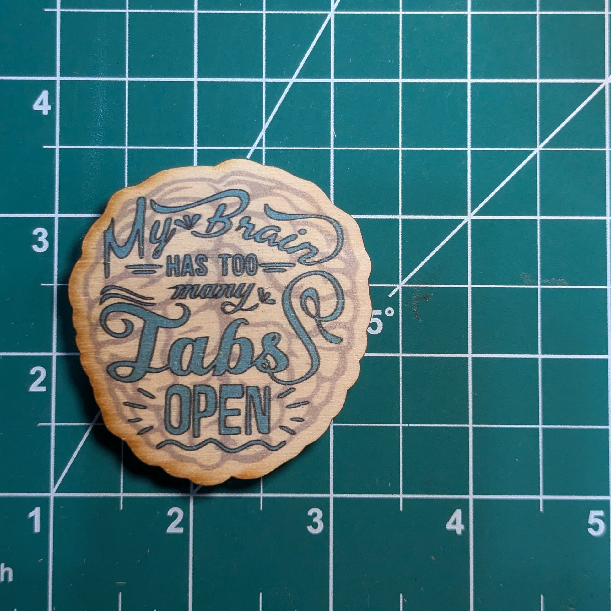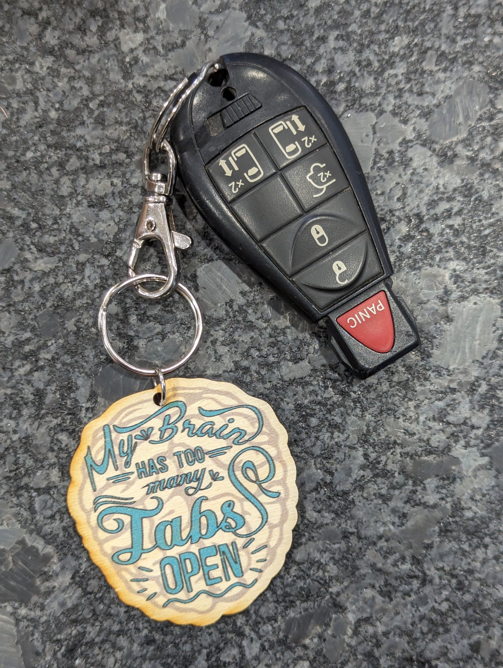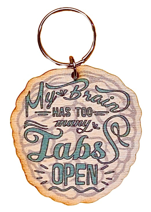 Humorous Quirky Color Printed Birchwood Keychain Dad Joke Keys Gift Kitchen Magnet Refrigerator Friend Backpack Fun USA Made My Brain Has Too Many Tabs Open