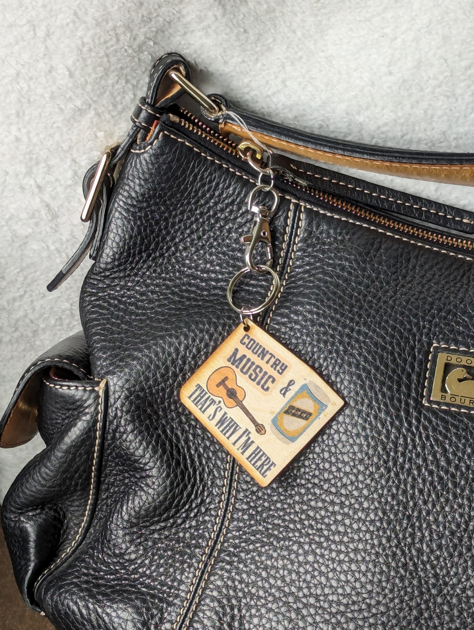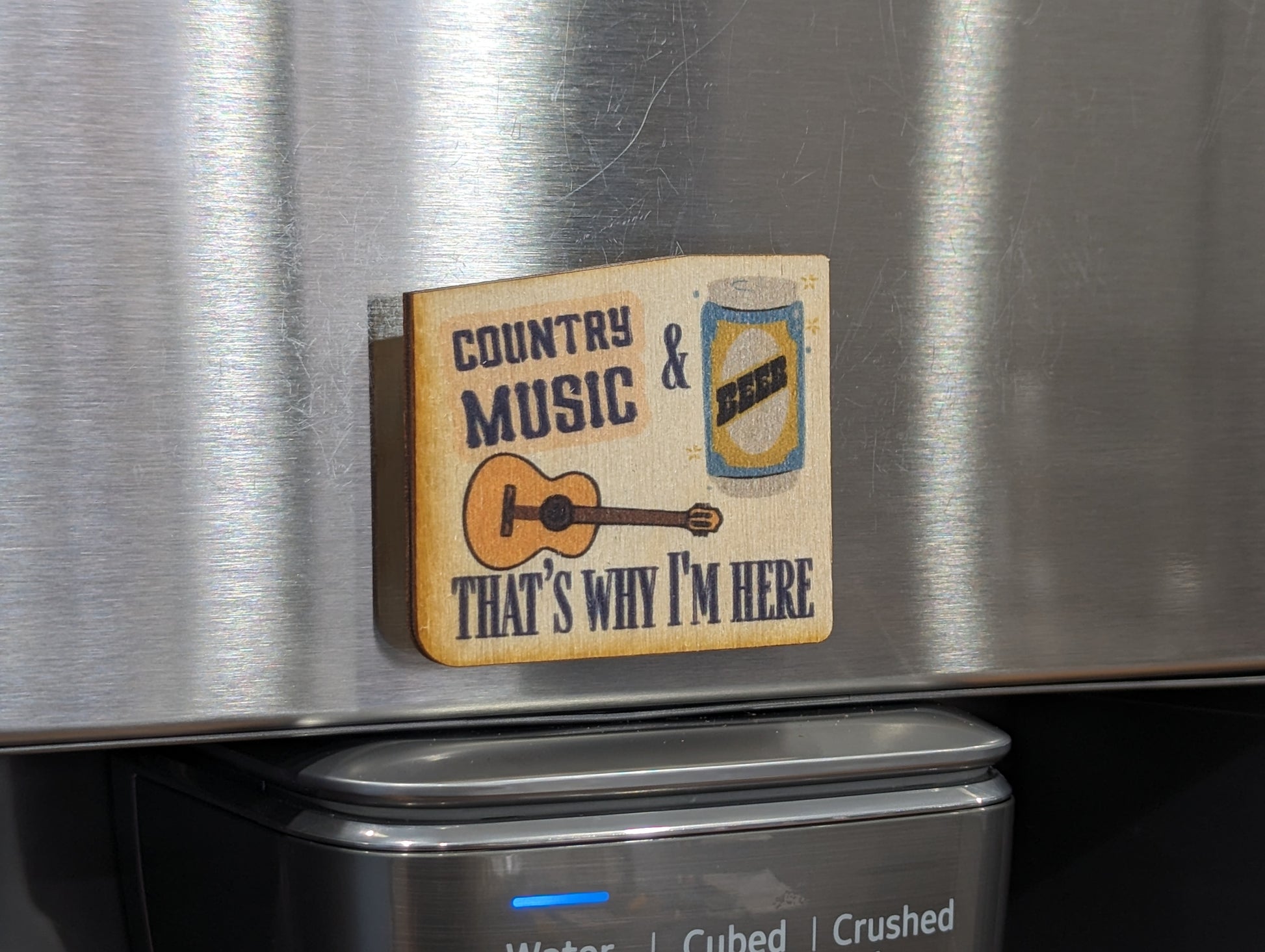 Humorous Dad Joke Gift Keychain Colorful Birchwood Fun Friend Magnet Key Refrigerator Kitchen Filing Cabinet USA Made Country Music And Beer That's Why I'm Here