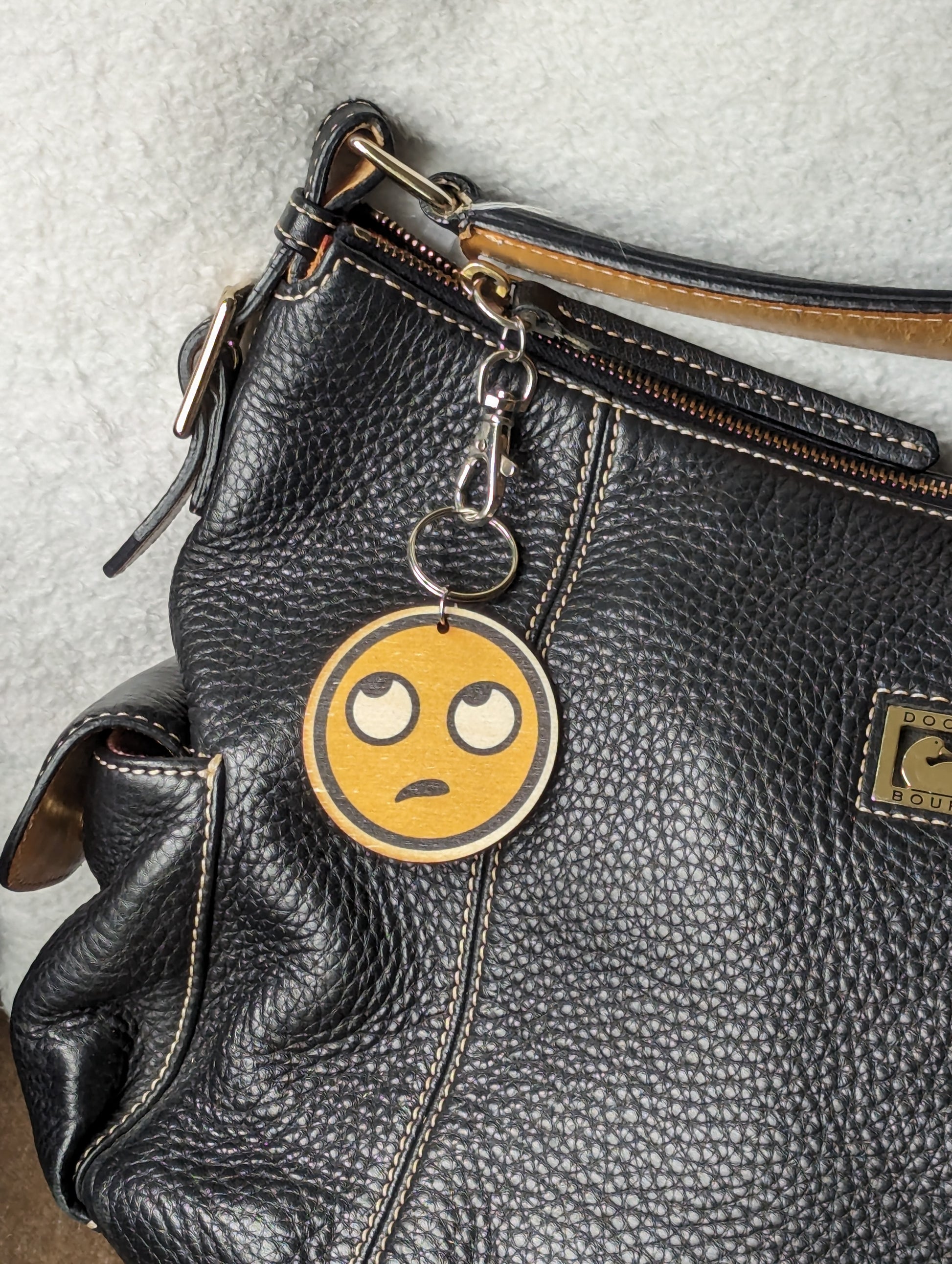 Super Cute Yellow Backpack Gift Keychain Colorful Birchwood Fun Friend Magnet Key Refrigerator Workspace USA Made Rolling Eyes Smiley Face Emoji