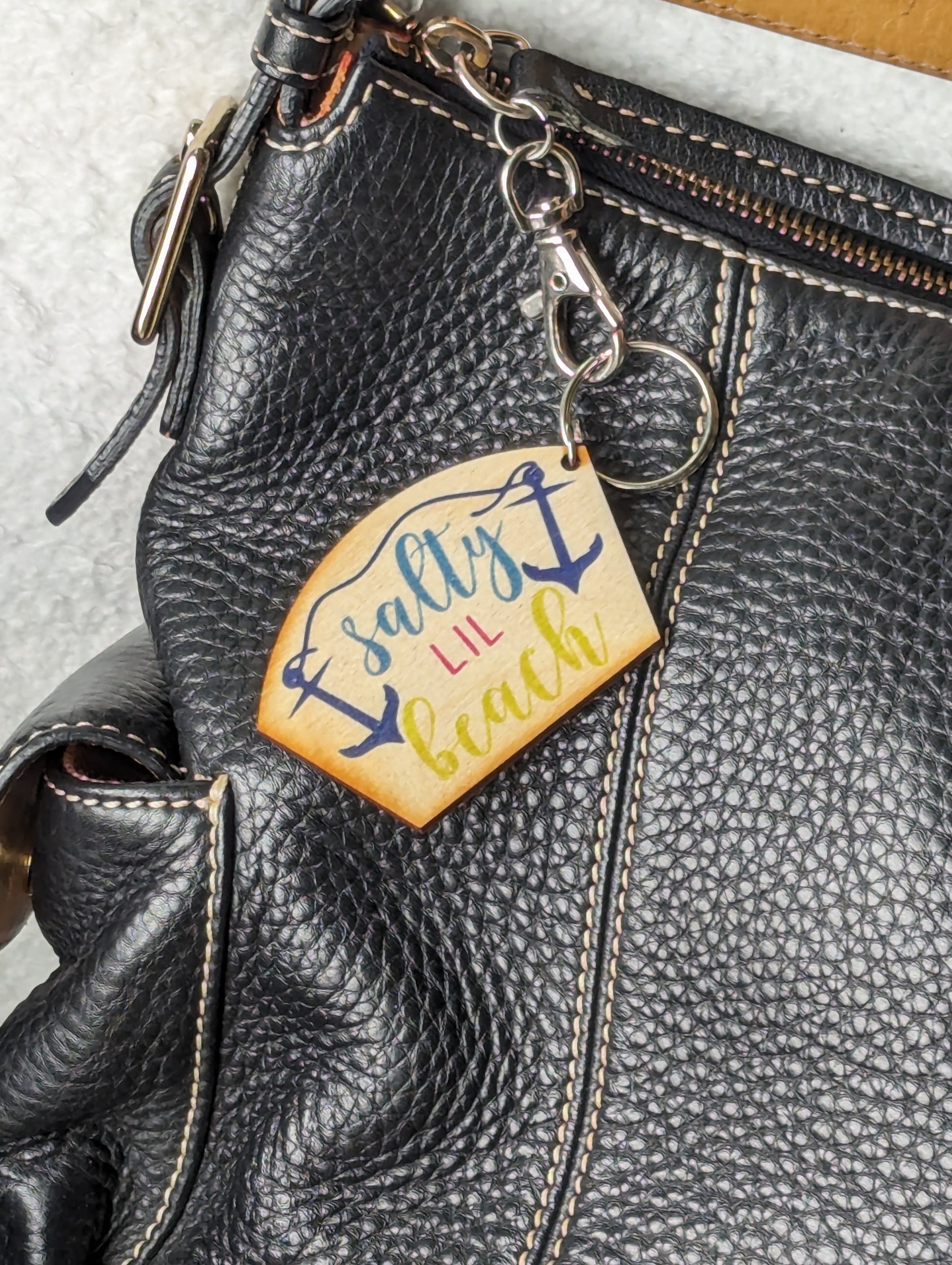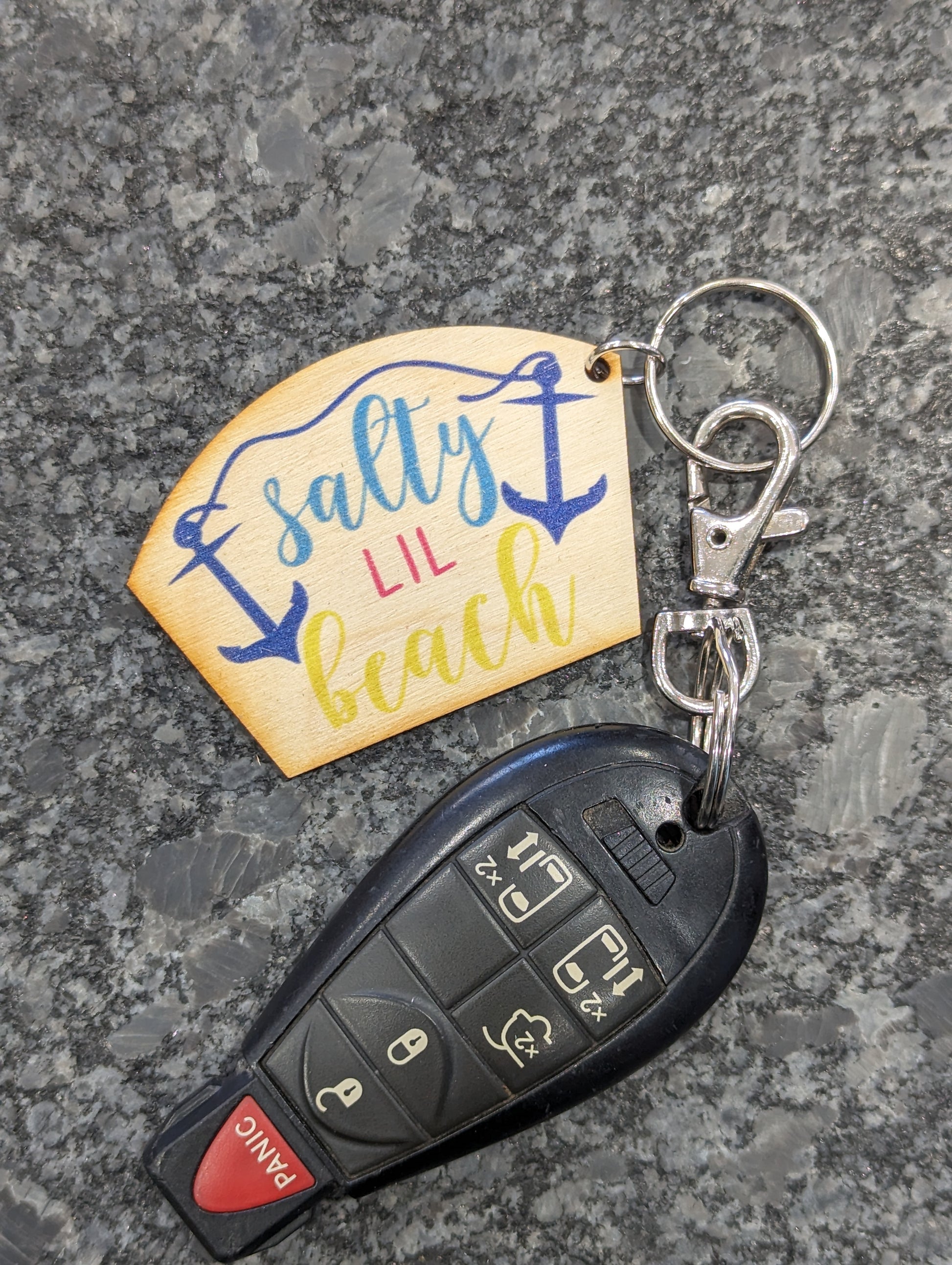 Great Vacation Friend Gift Keychain Color Printed Birchwood Gift Magnet Key Refrigerator Sun Sand Workspace USA Made Salty Lil Beach