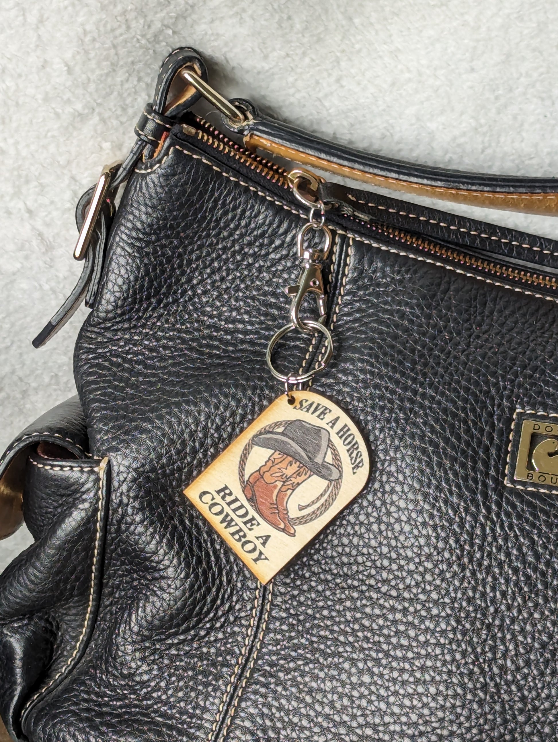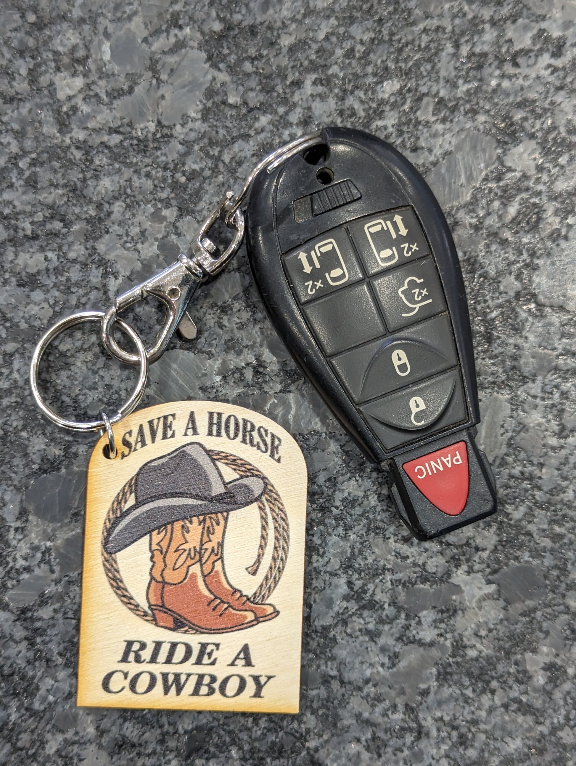 Humorous Gift Keychain Colorful Birchwood Fun Friend Magnet Key Refrigerator Kitchen Workspace USA Made Save A Horse Ride A Cowboy