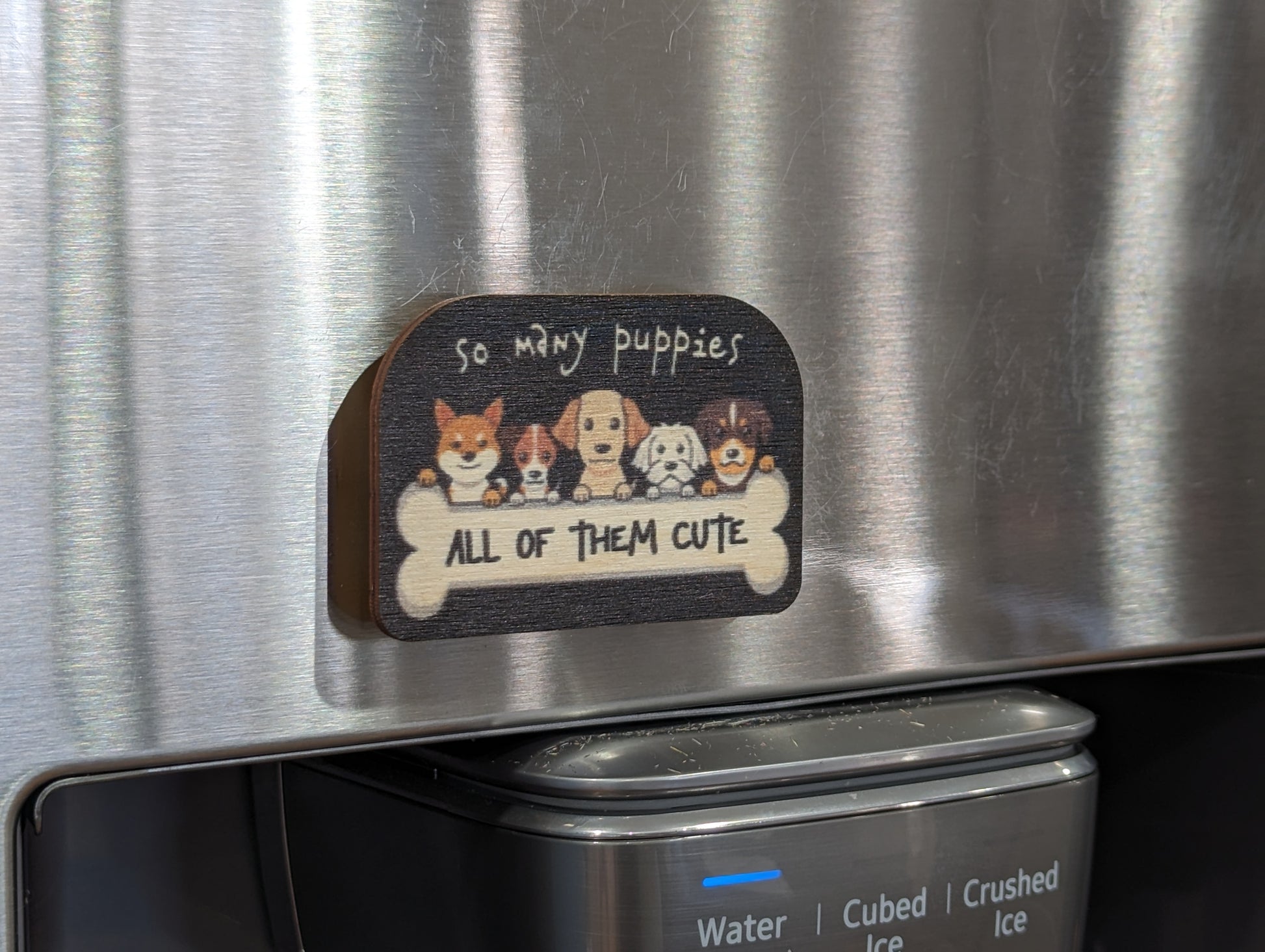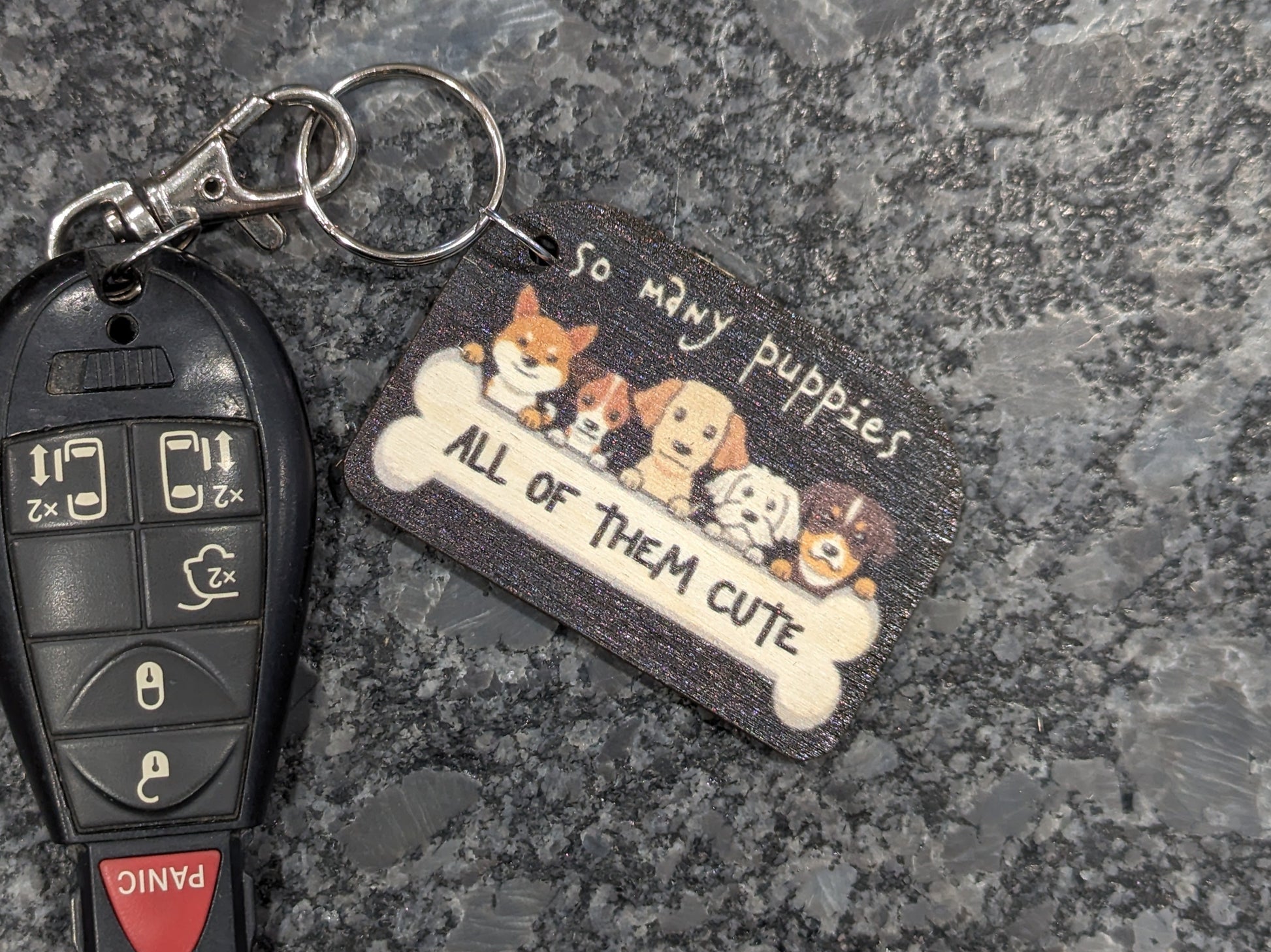 Adorable Colorful Gift Keychain Cute Printed Birchwood Magnet Office Rescue Filing Cabinet Refrigerator Key USA Made So Many Puppies All Of Them Cute