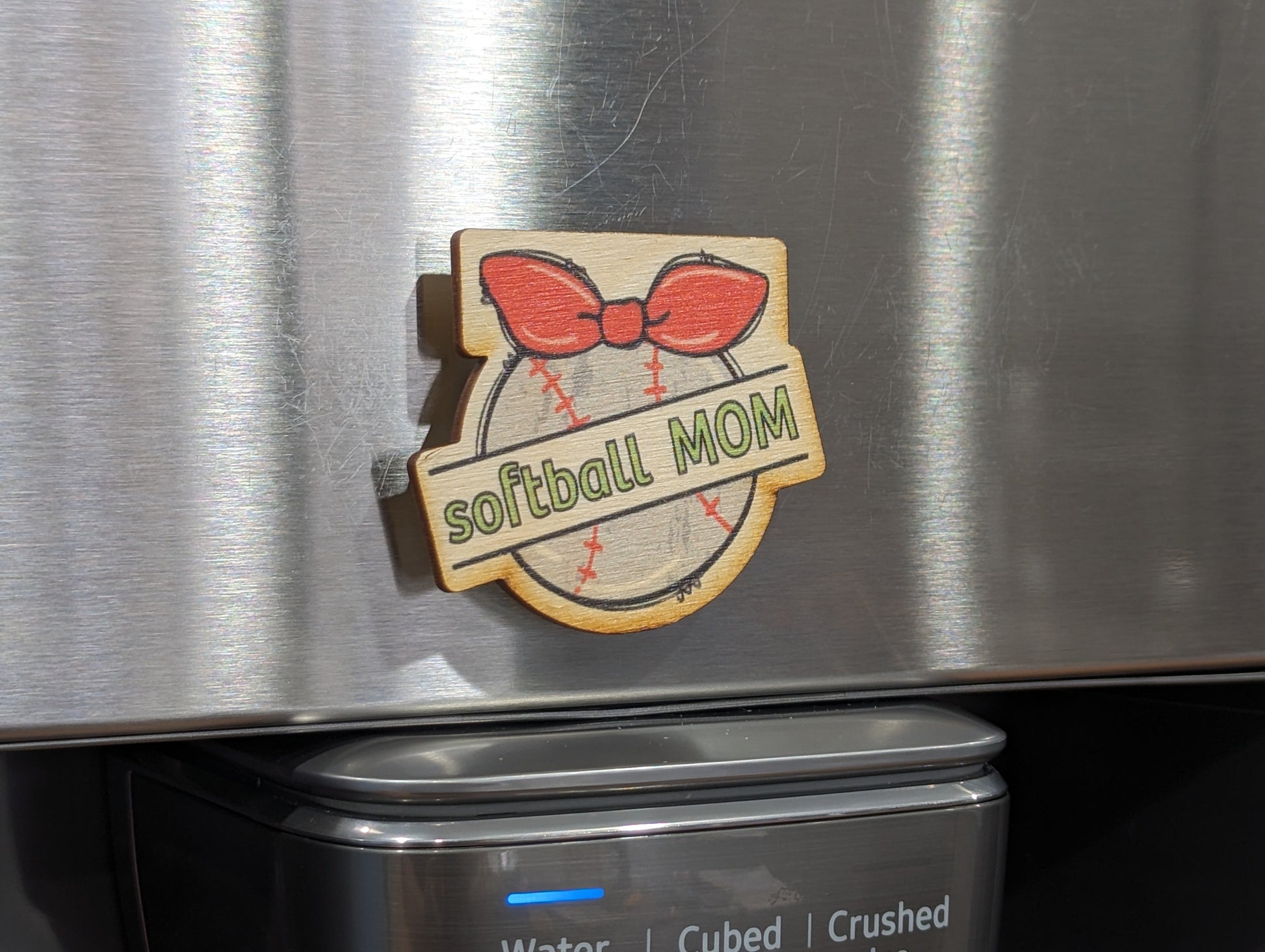 Quirky Cute Colorful Printed Birchwood Keychain Keys Gift Kitchen Magnet Refrigerator Friend Workspace Fun USA Made Mother's Day Softball Mom