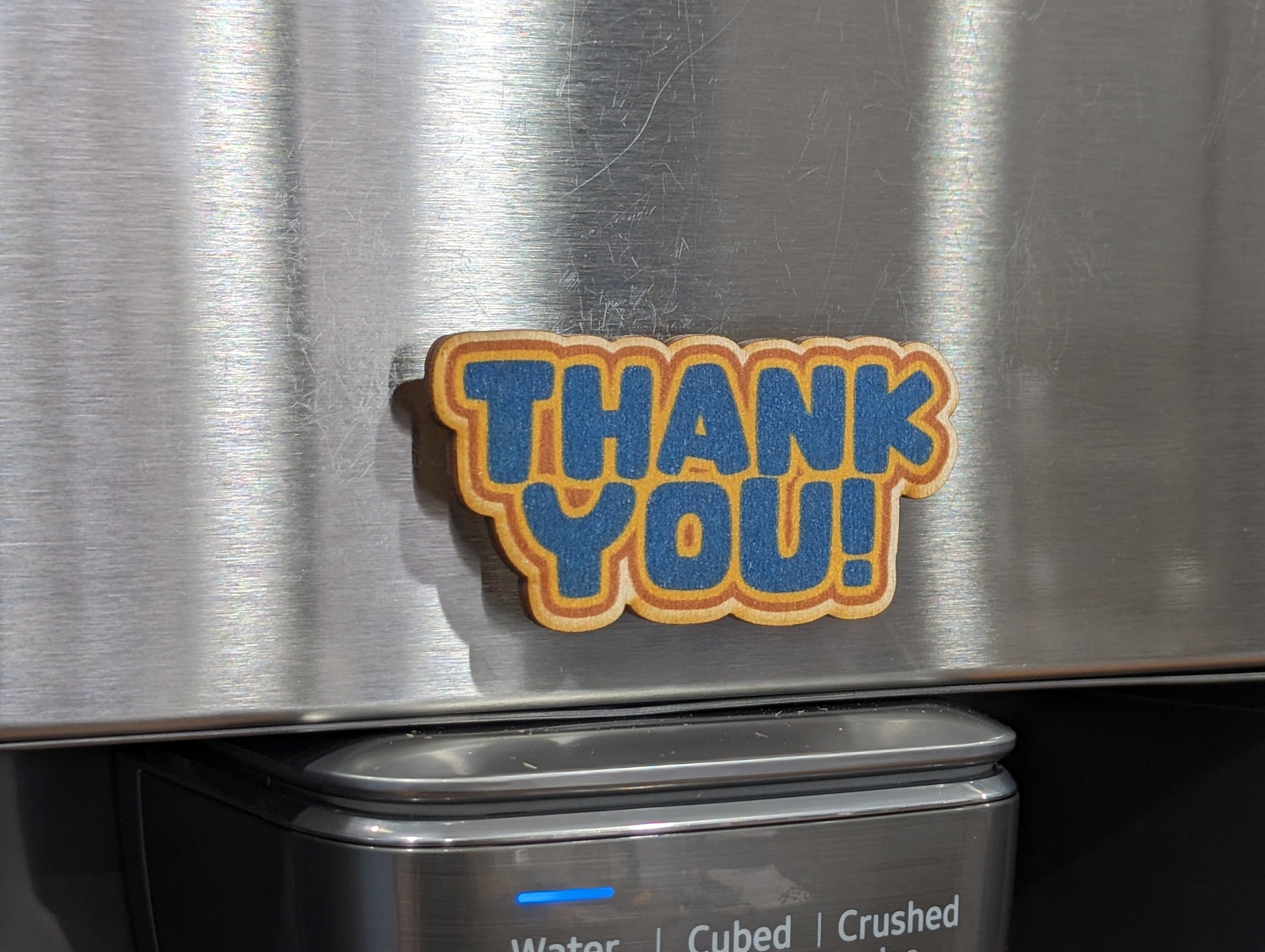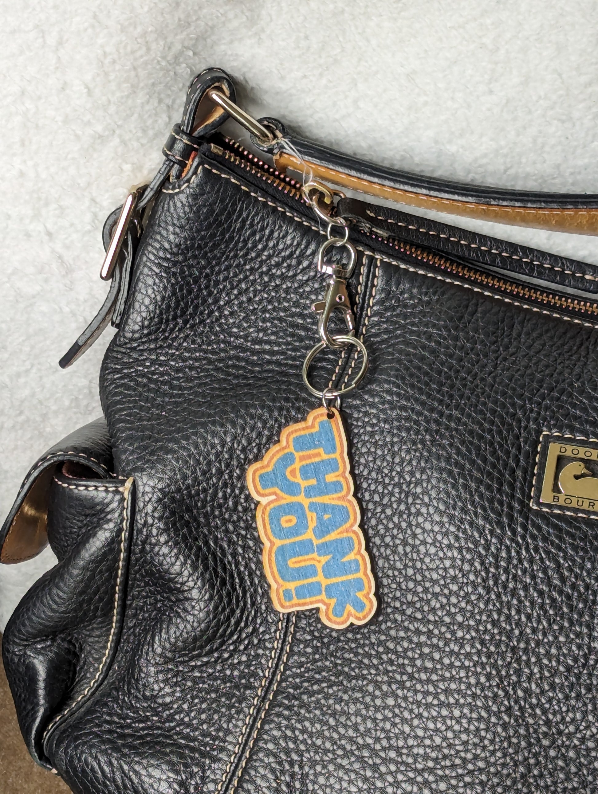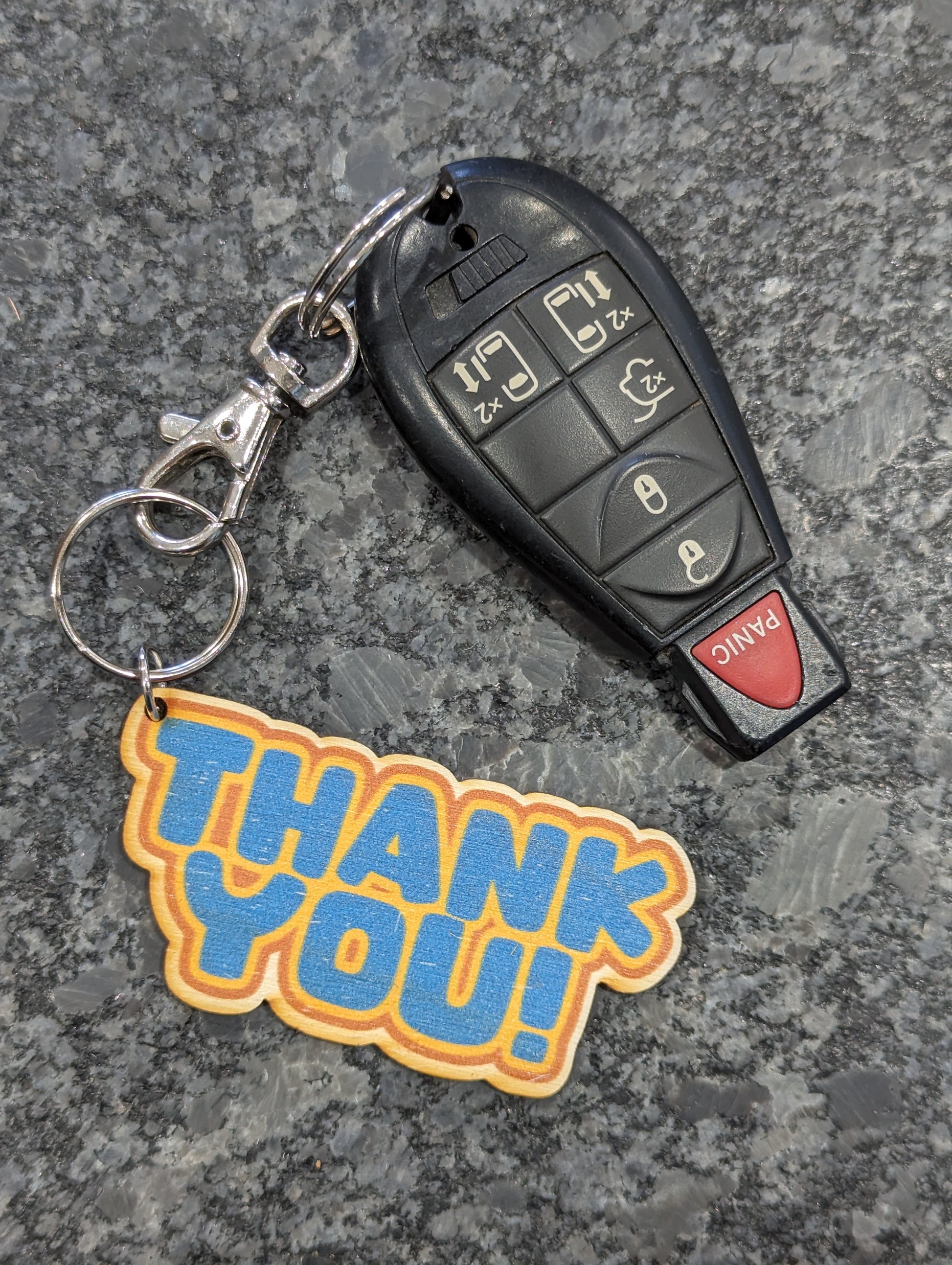 Quirky Humorous Colorful Printed Birchwood Keychain Keys Gift Kitchen Magnet Refrigerator Friend Workspace Fun USA Made Thank You Blue Orange