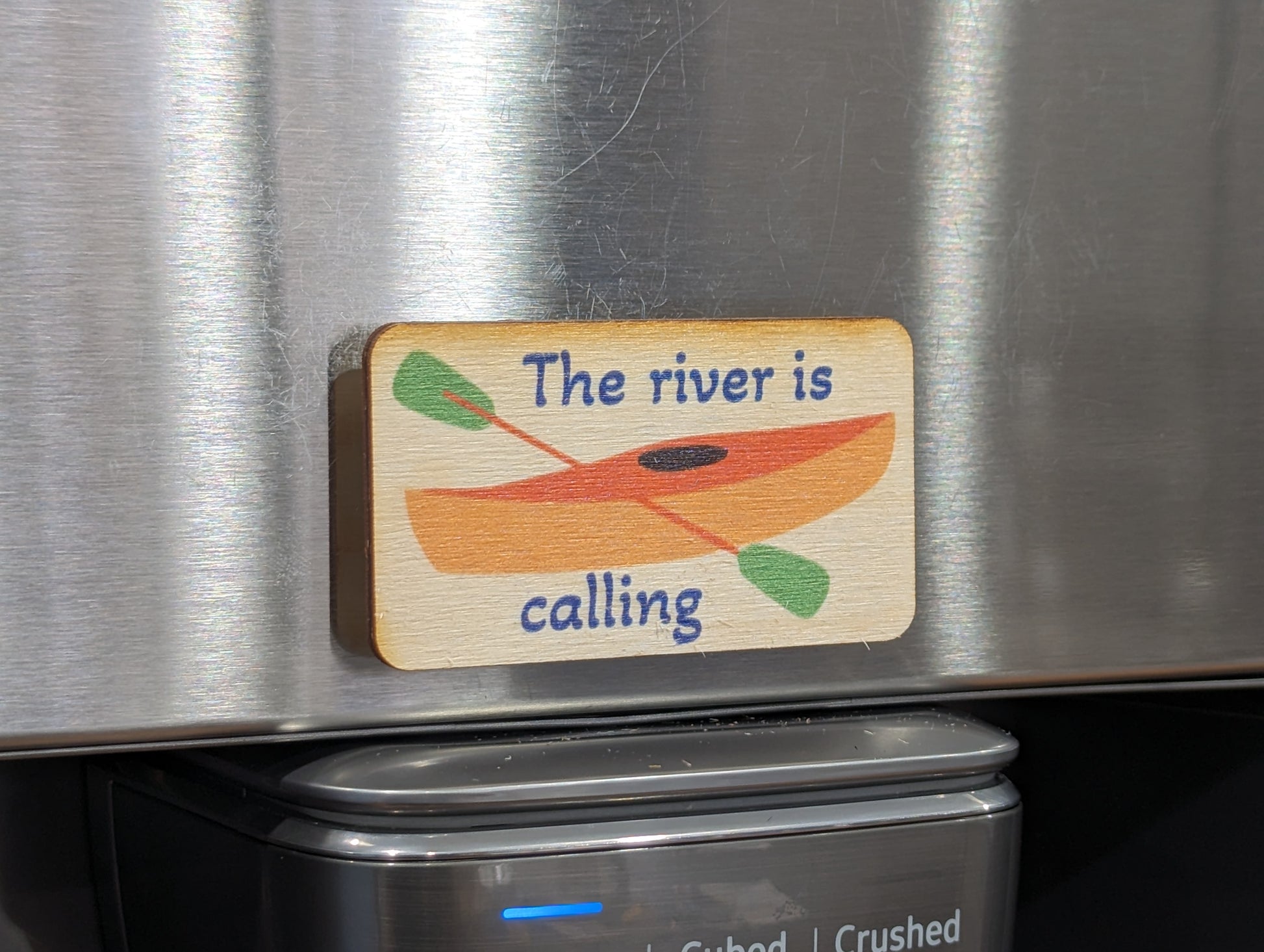 Colorful Quirky Printed Birchwood Keychain Kayak Keys Gift Kitchen Magnet Refrigerator Friend Workspace Fun USA Made Camp Outdoors River Is Calling