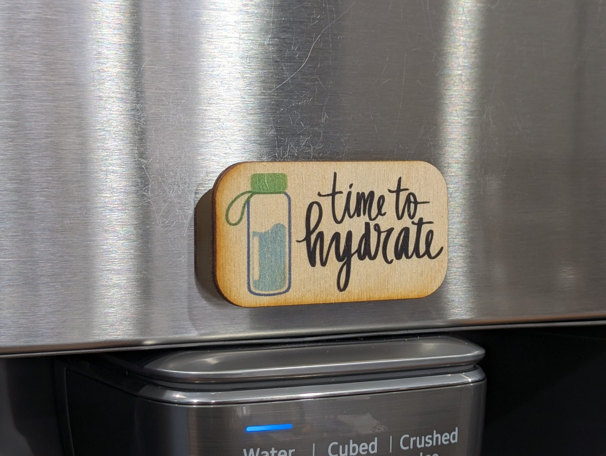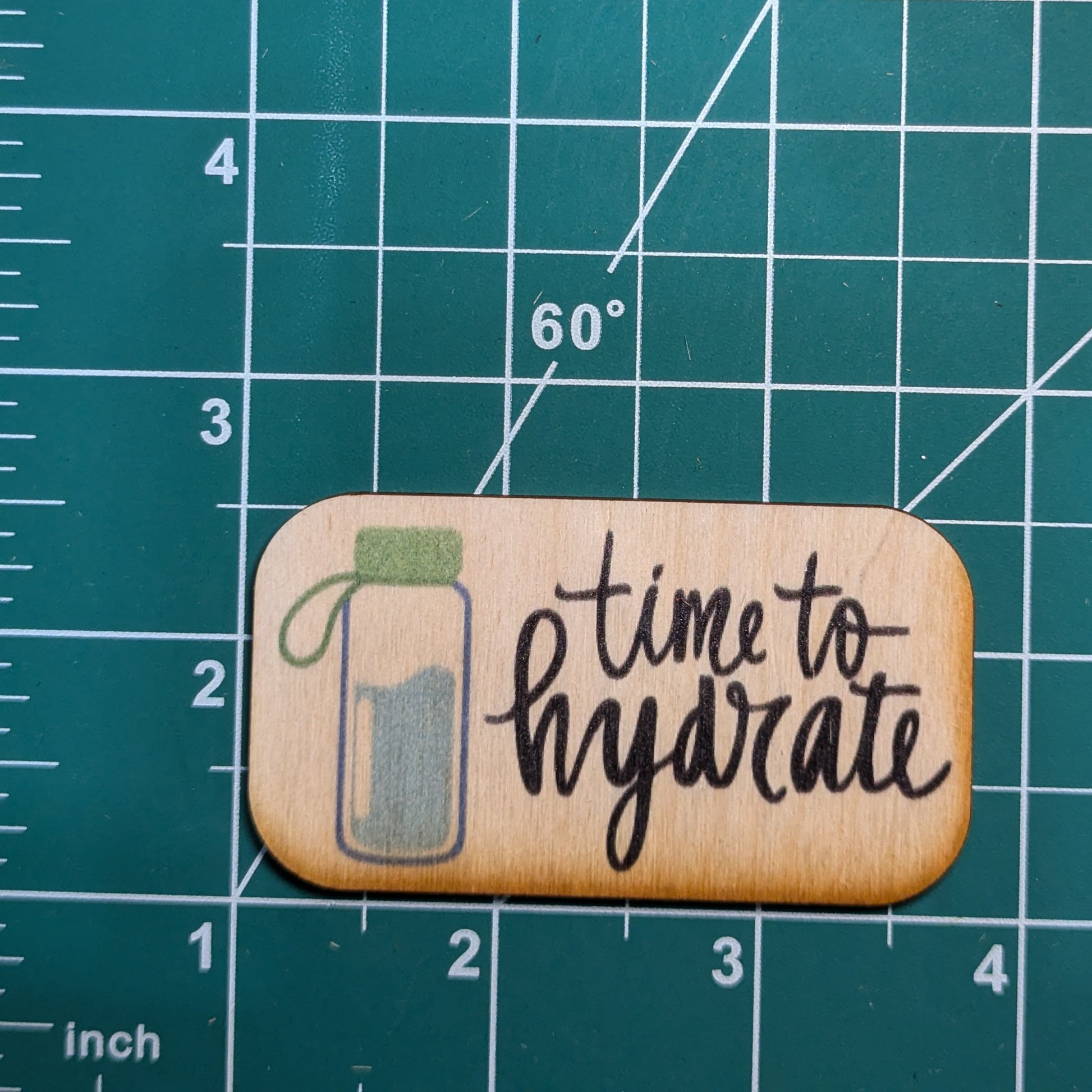 Cute Water Bottle Shape Reminder Birchwood Keychain Colorful Magnet Friend Gift Refrigerator Office Filing Cabinet USA Made Time To Hydrate