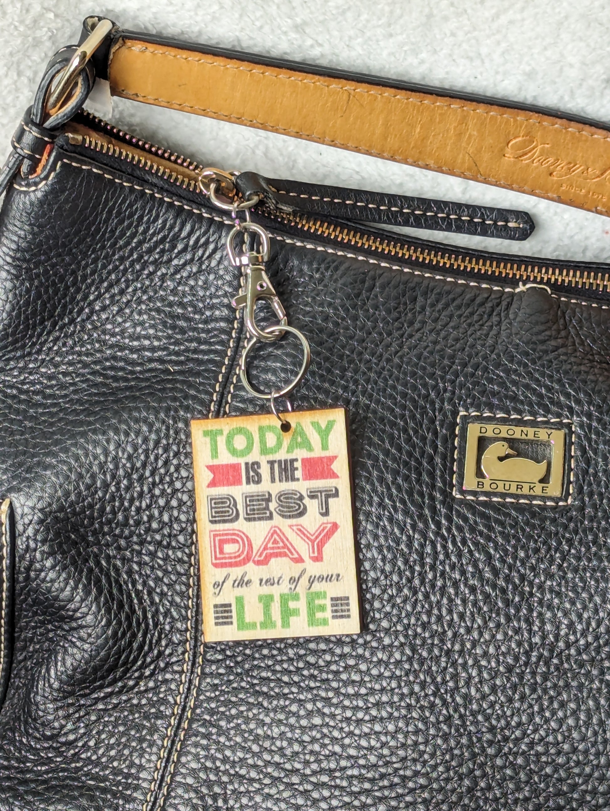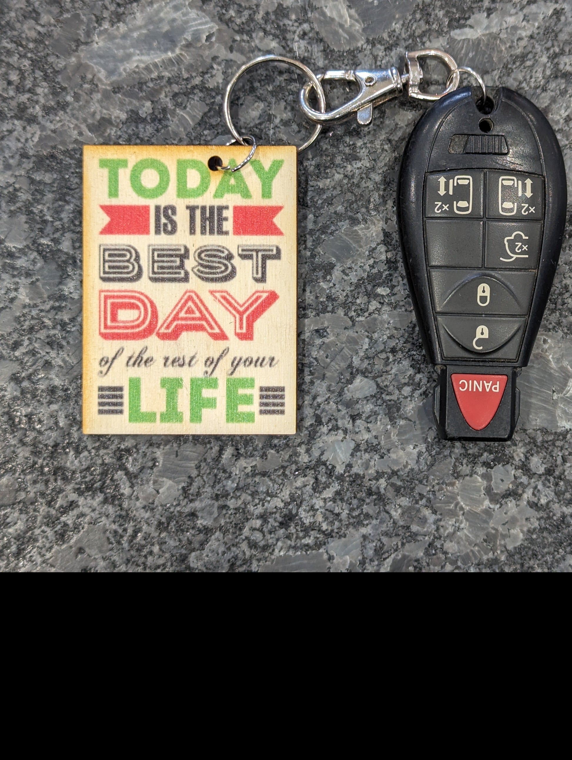 Colorful Square Shape Reminder Gift Large Keychain Printed Birchwood Inspirational Magnet Friend Refrigerator Office Filing Cabinet USA Made Today Is The Best Day Of The Rest Of Your Life
