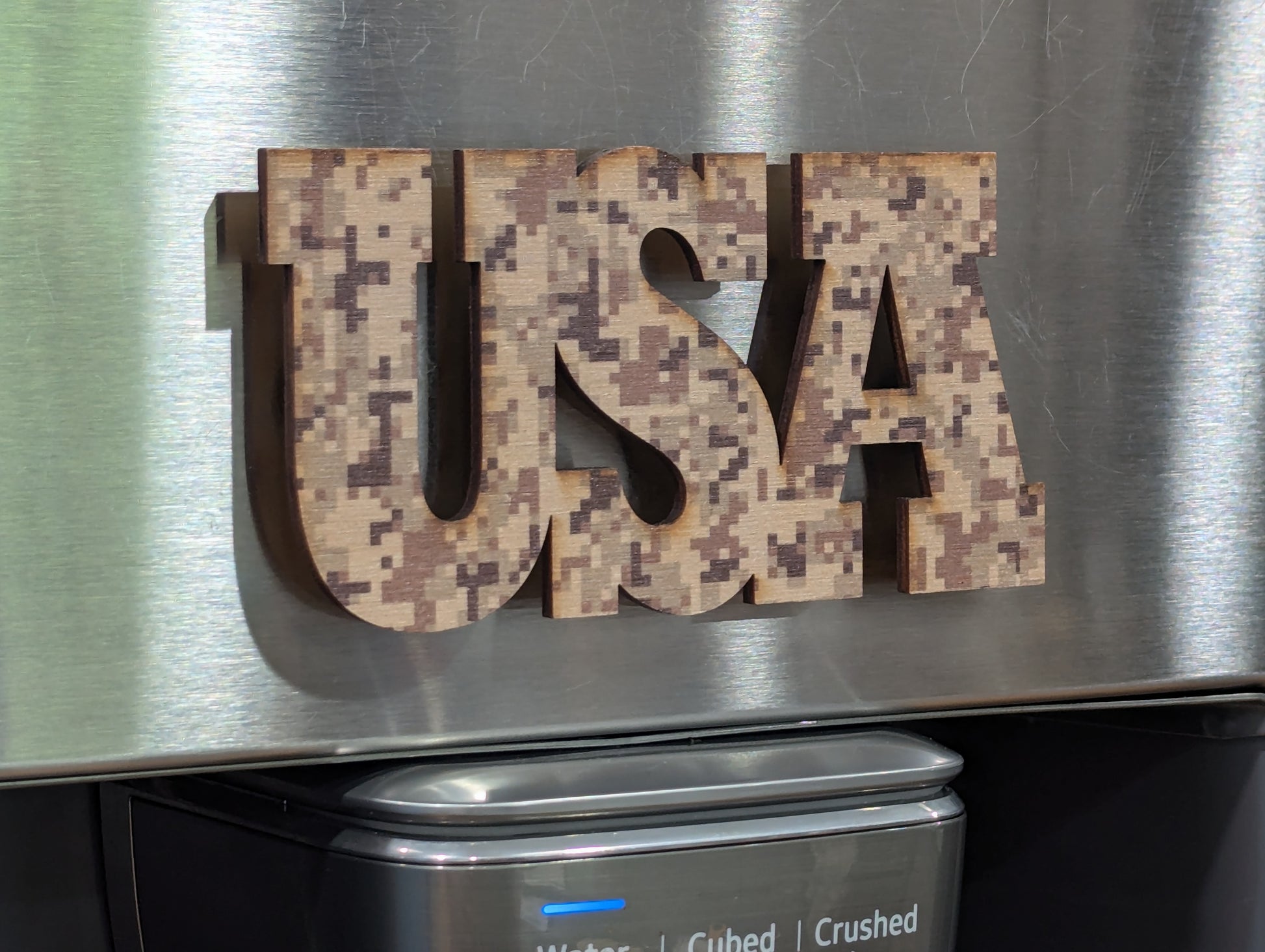 Desert Camouflage USA Shape Color Printed Gift Laser Cut Birchwood Large Magnet Filing Cabinet Tool Box Refrigerator USA Made Desert Camo USA Letters