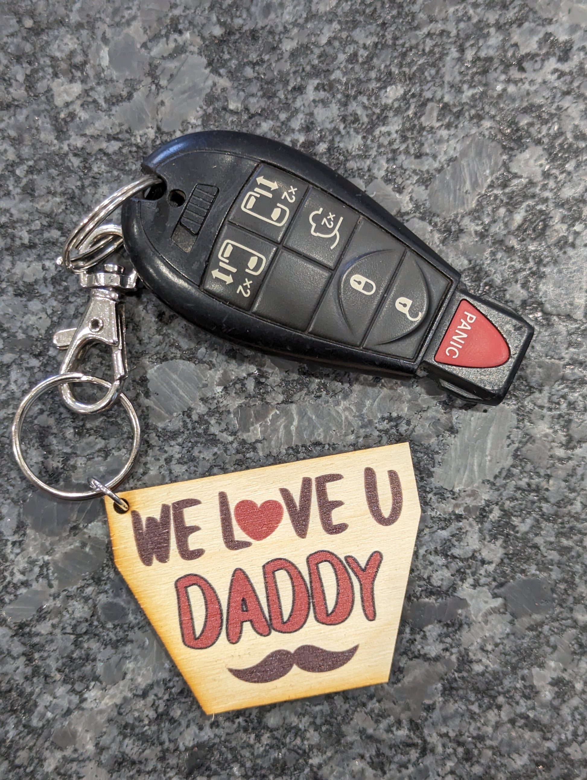 Cute Colorful Printed Birchwood Keychain Keys Gift Father's Day Kitchen Magnet Refrigerator Workspace Dad Thank You USA We Love You Daddy