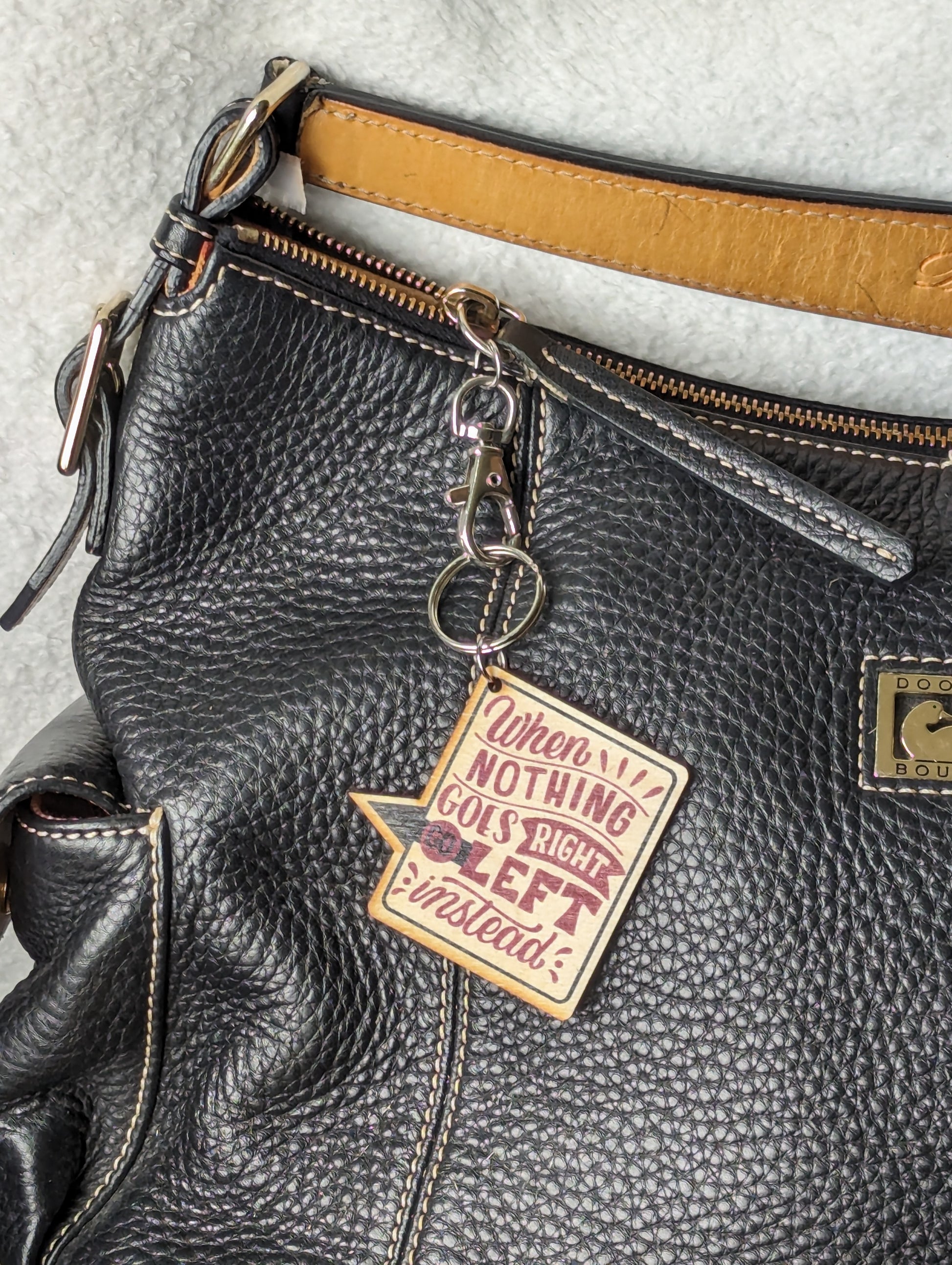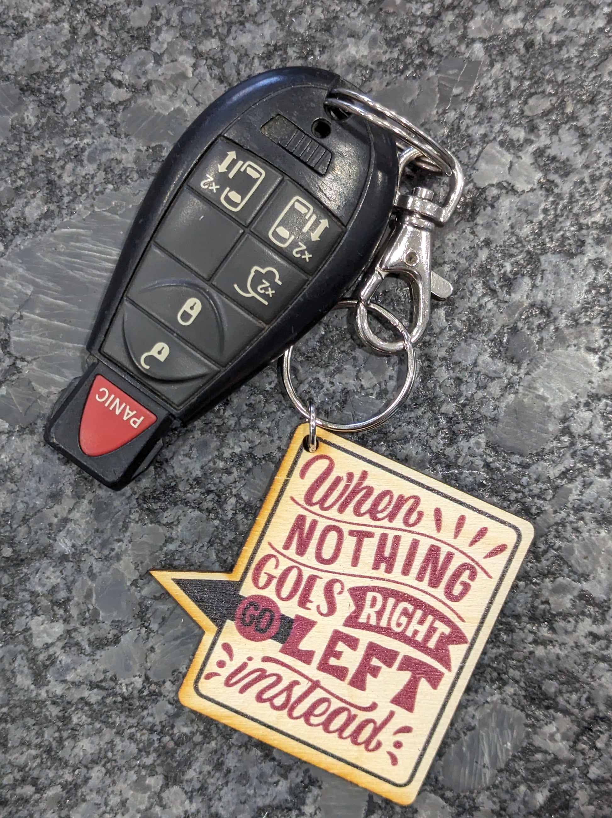 Humorous Dad Joke Colorful Printed Birchwood Keychain Keys Gift Kitchen Magnet Refrigerator Office Filing Cabinet USA Made Go Left Instead