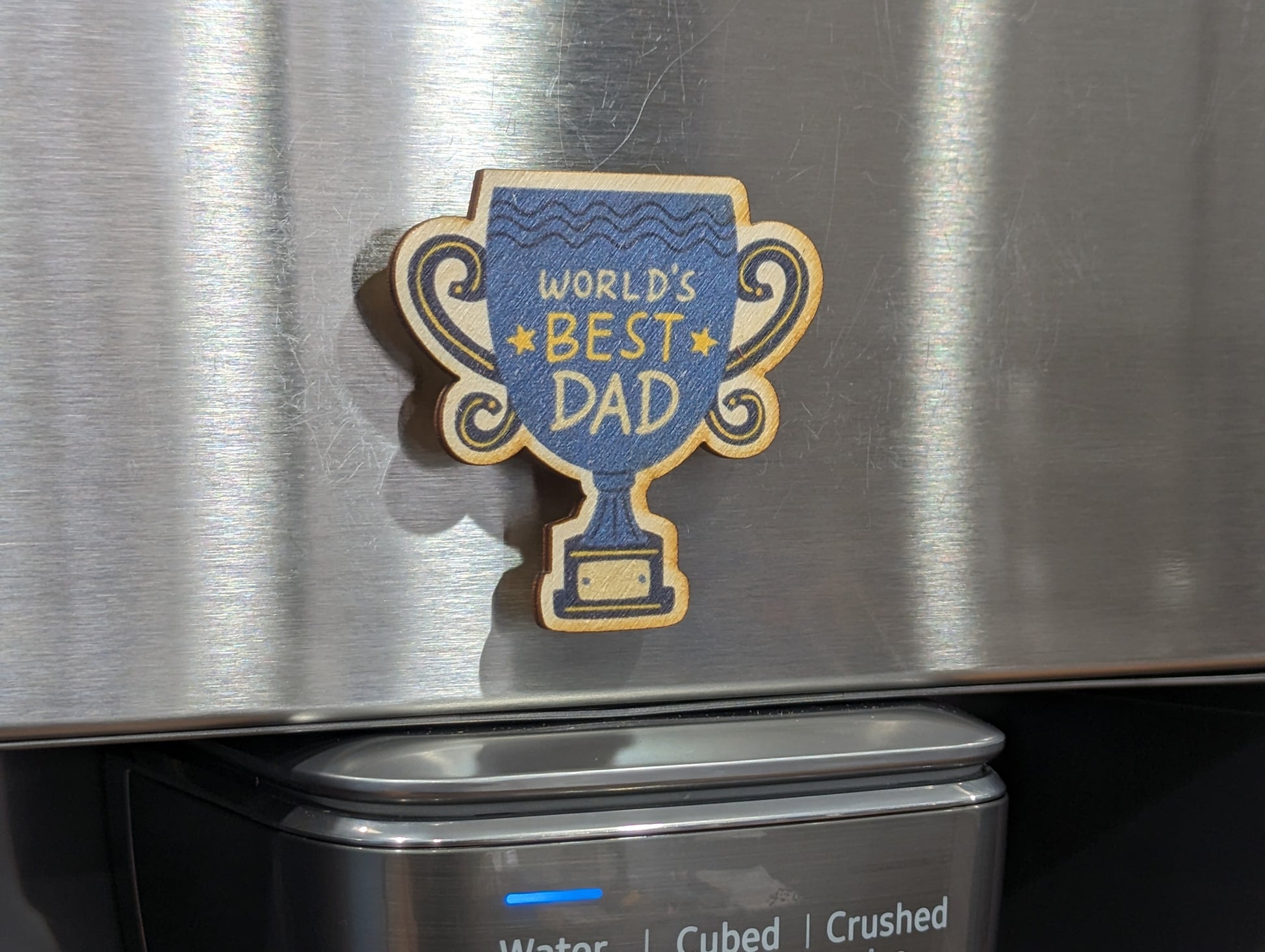 Adorable Colorful Birchwood Dad Keychain Keys Gift Kitchen Magnet Refrigerator Office Filing Cabinet Thank You USA Made World's Best Dad Trophy