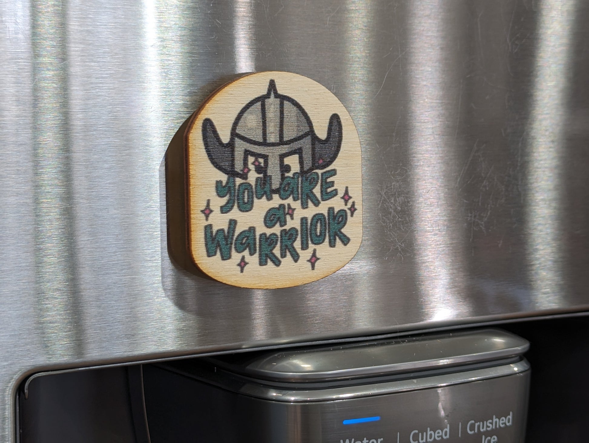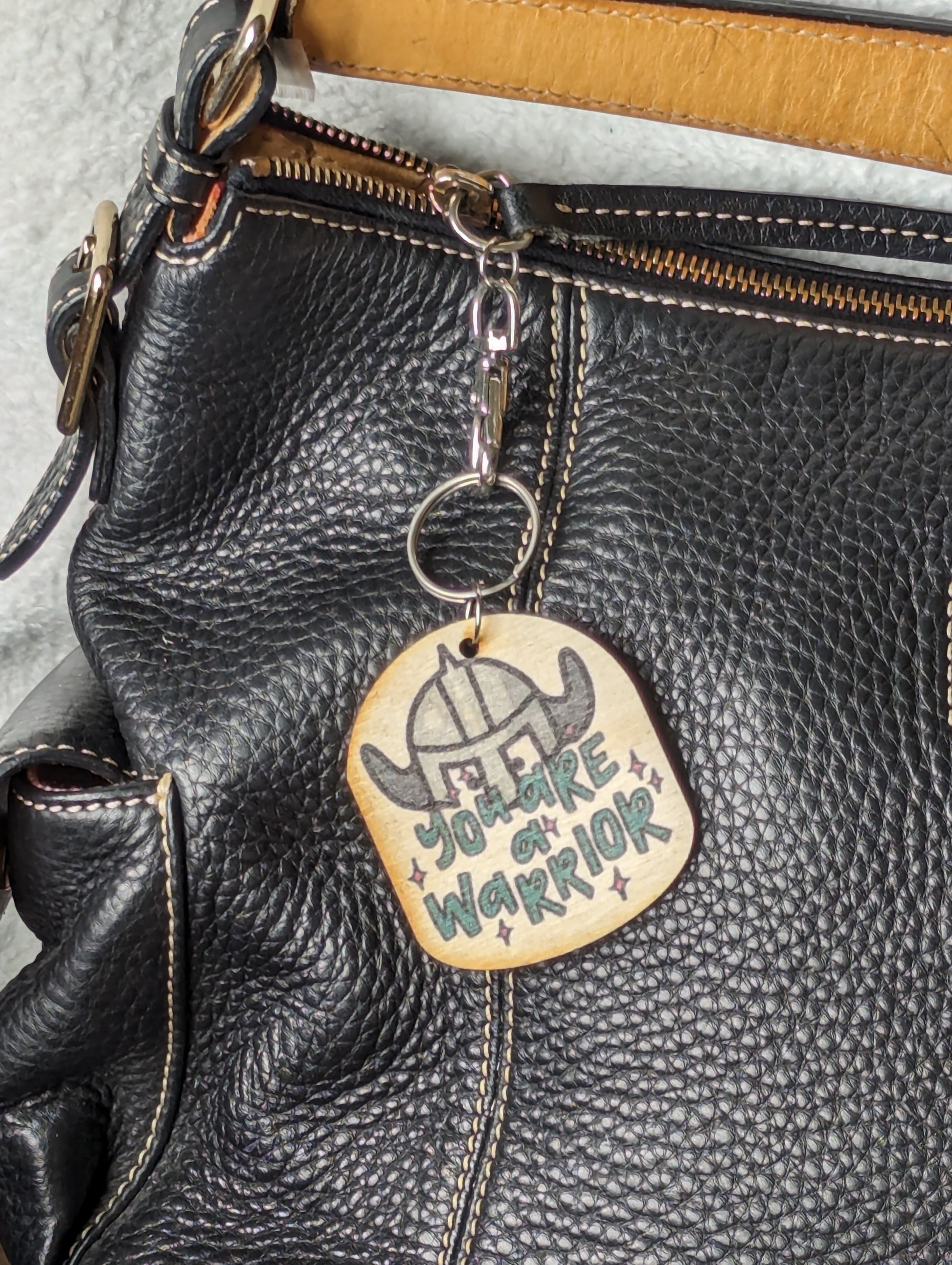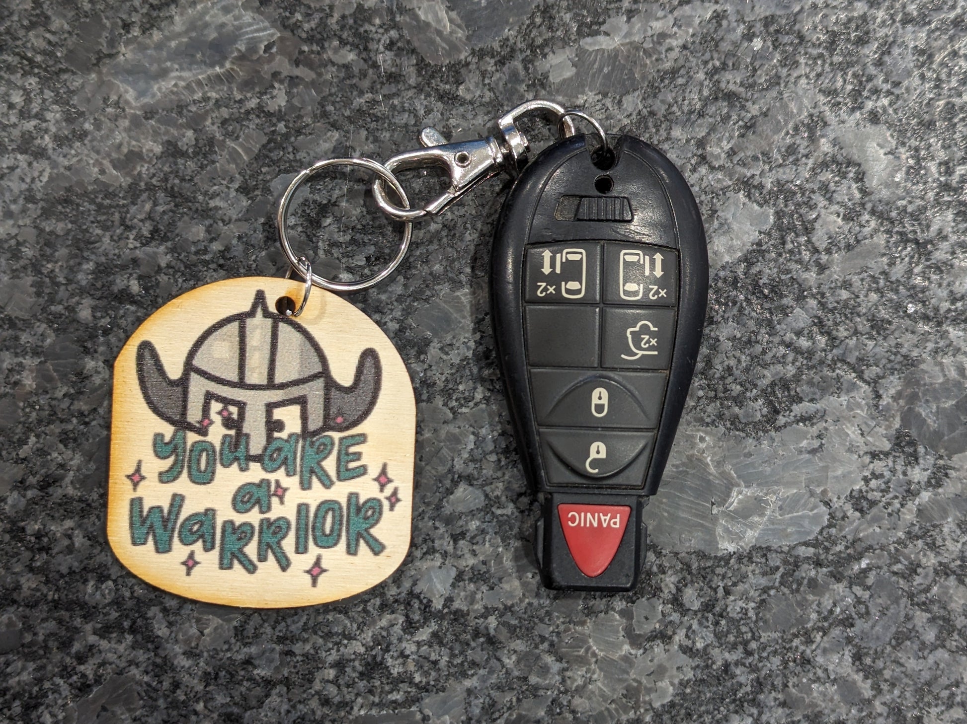 Unique Inspirational Printed Gift Keychain Birchwood Colorful Friend Magnet Kind Reminder Helmet Strong Filing Cabinet Refrigerator USA Made You Are A Warrior