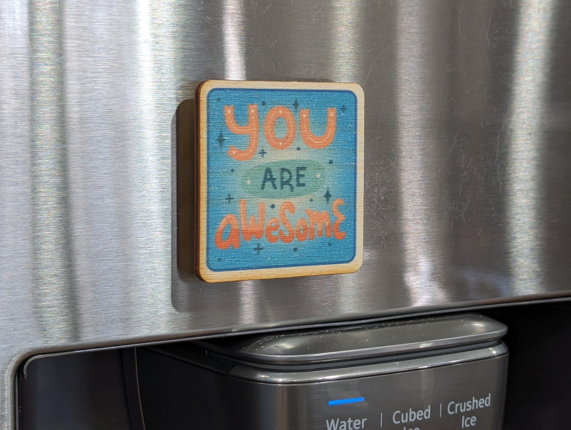 Quirky Unique Gift Keychain Thank You Colorful Birchwood Magnet Refrigerator Office Filing Cabinet Thank You USA Made Employee You Are Awesome
